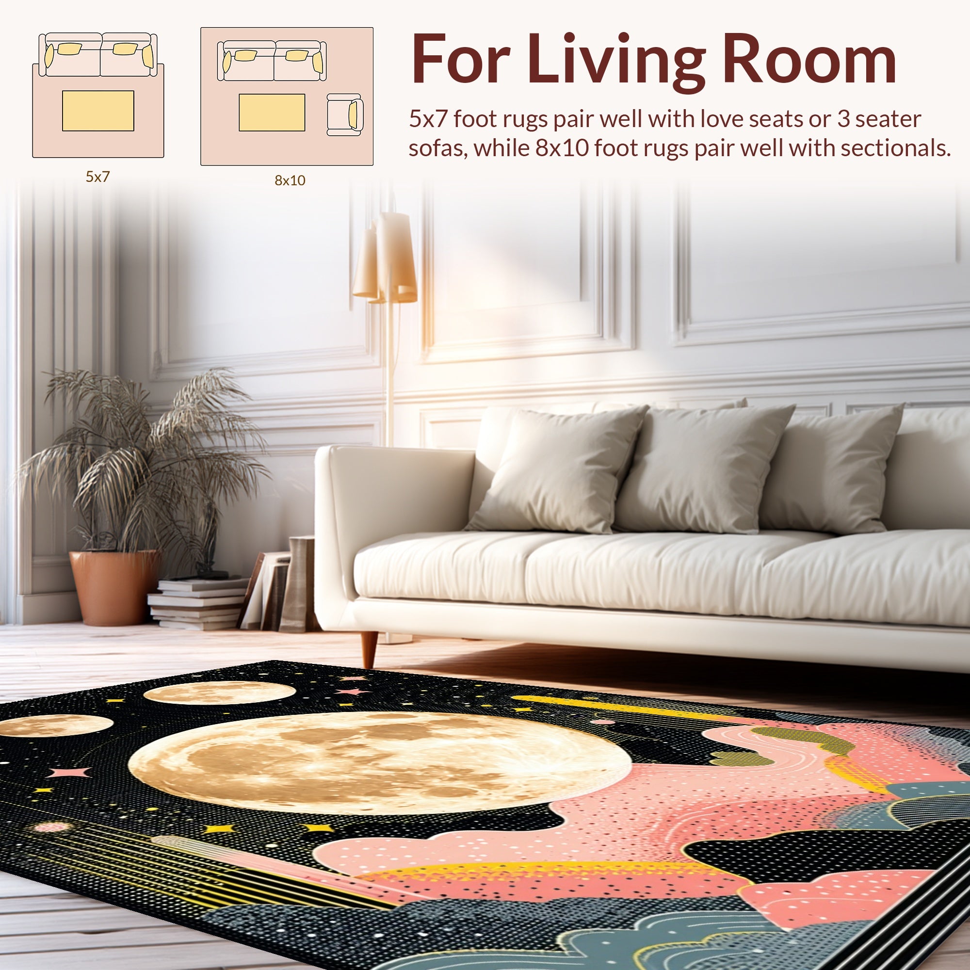 Flatwoven High Traffic Area Rug, Lush Celestial, Non Slip, Stain Resistant, Washable Area Rugs for Living Room, Bedroom (Beige) Overview: