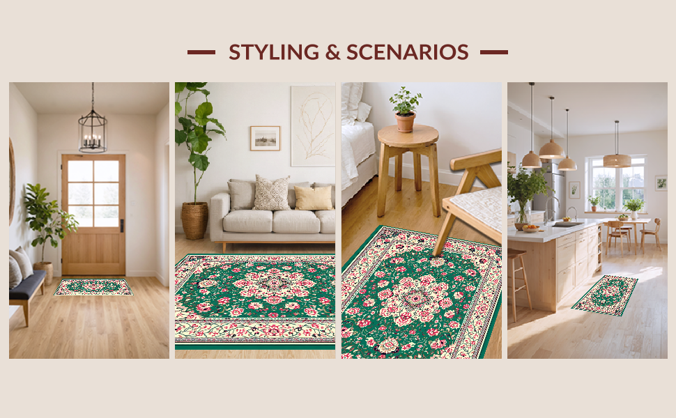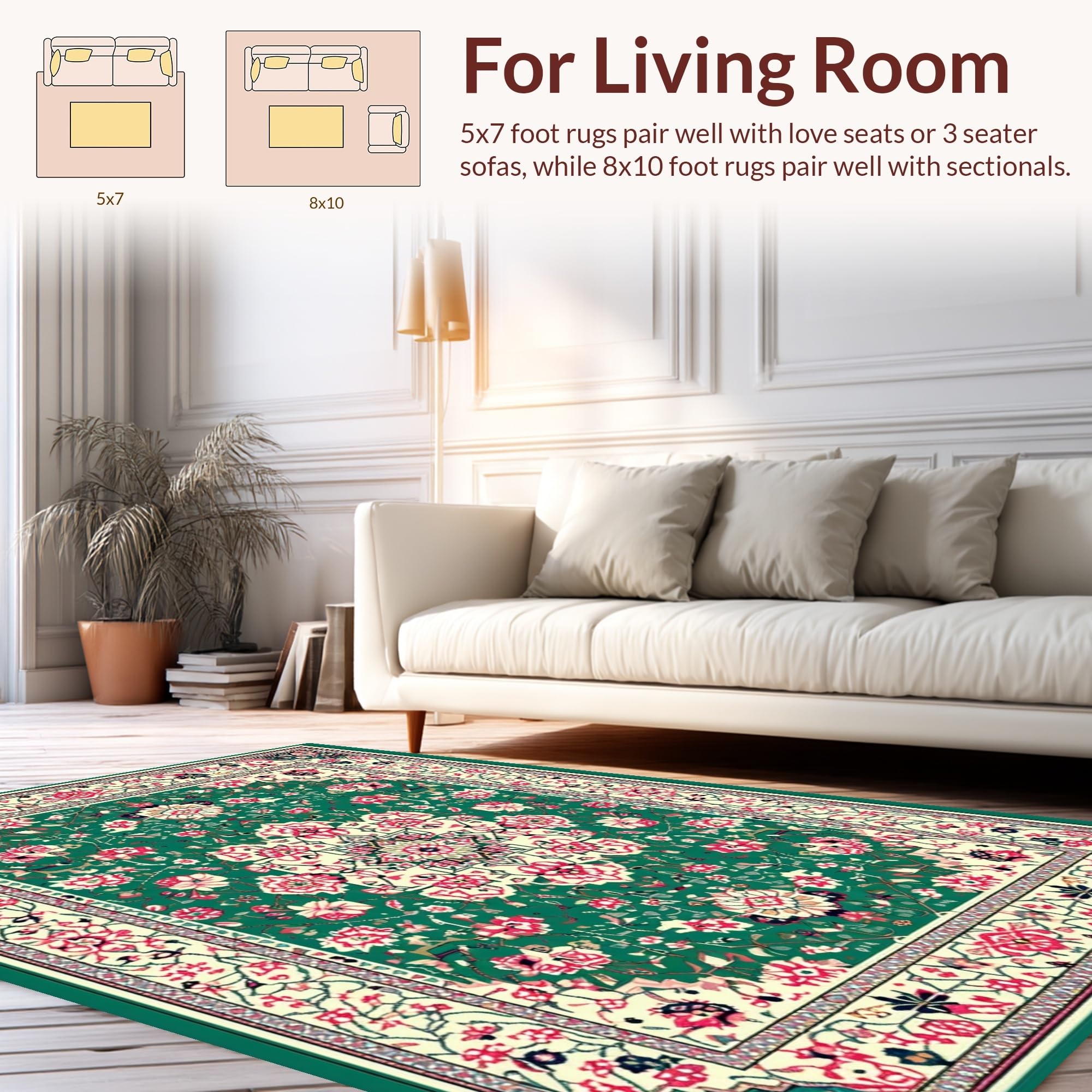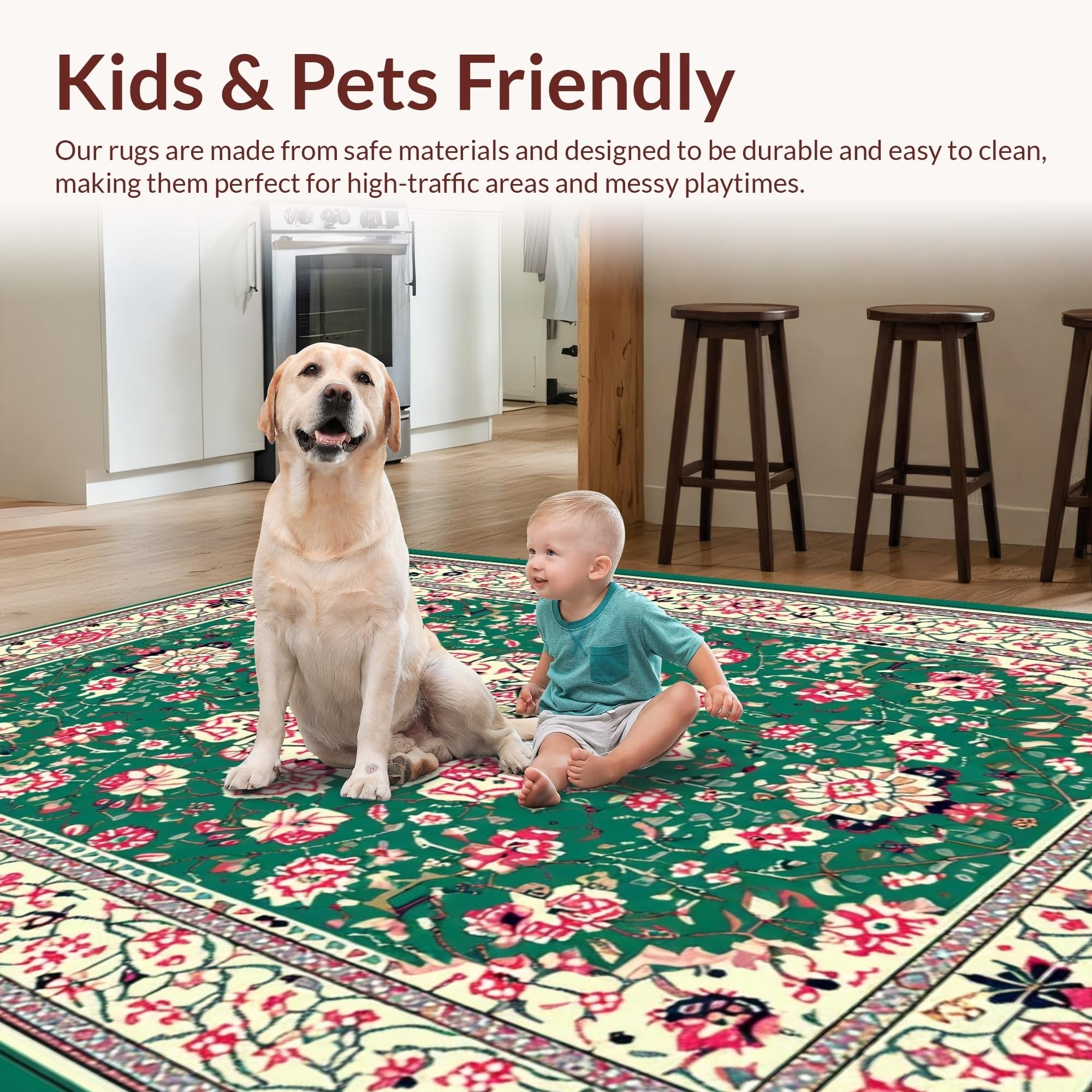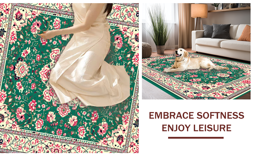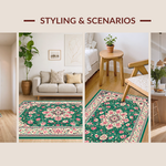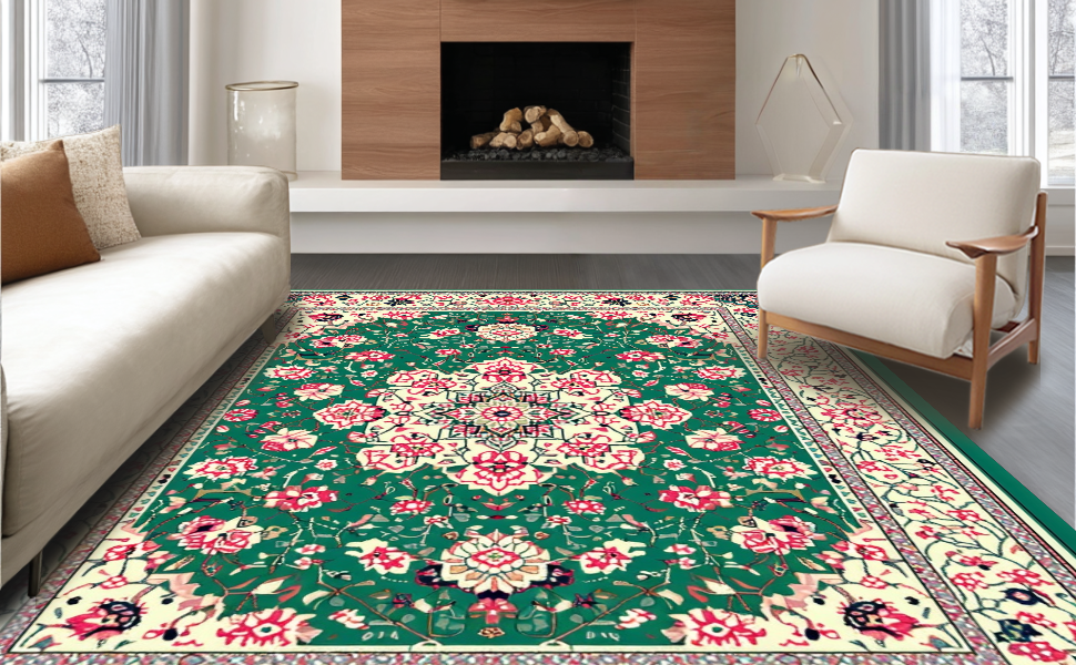 Ultra Soft Area Rug, Non Slip, Stain Resistant, Washable Area Rugs for Living Room, Bedroom, Lush Colorful Ogee Pattern(Green) Overview: