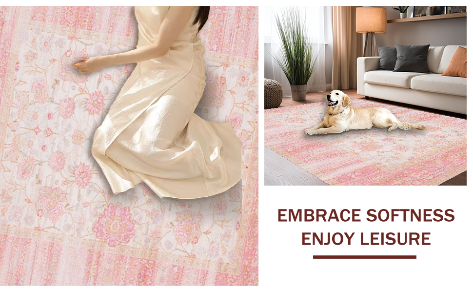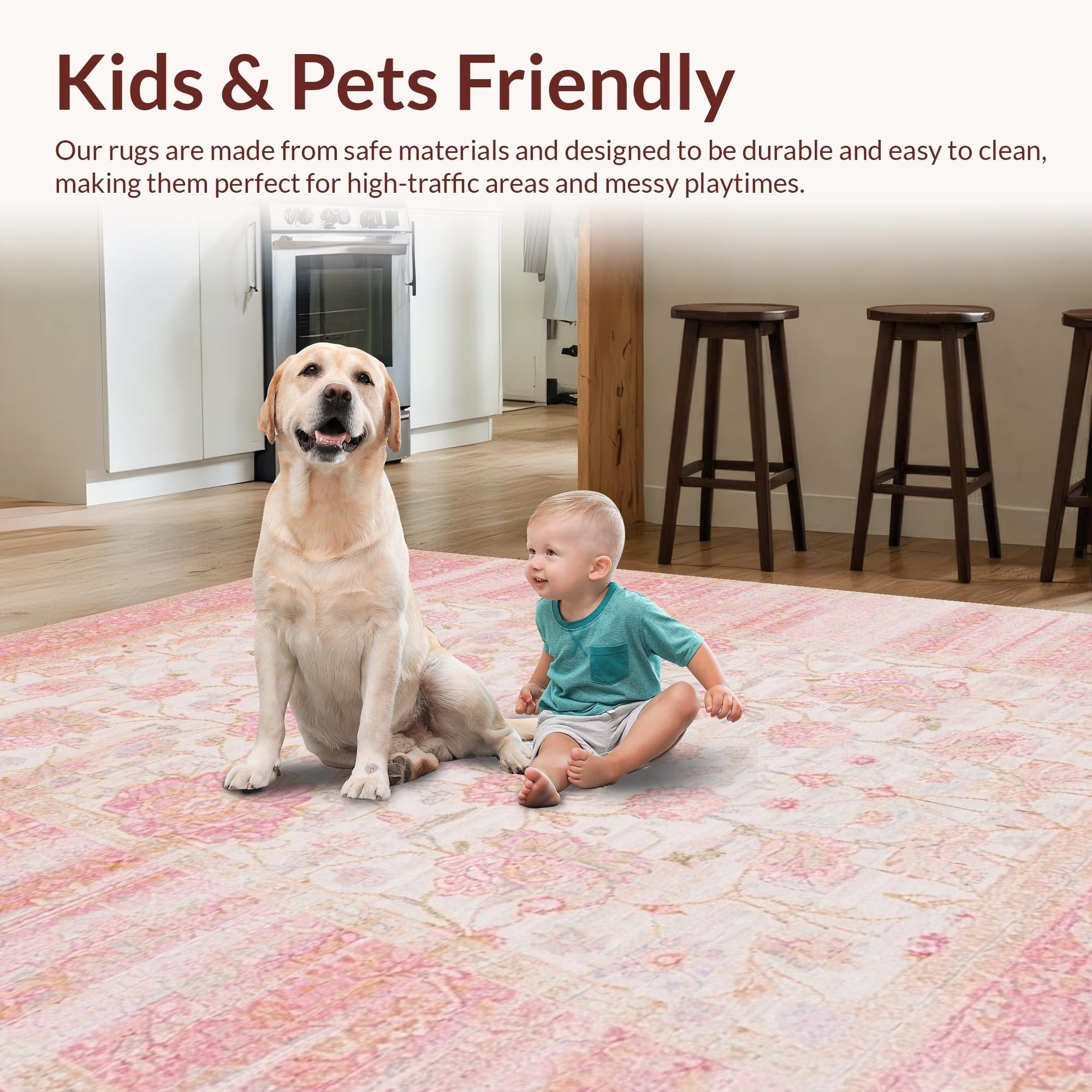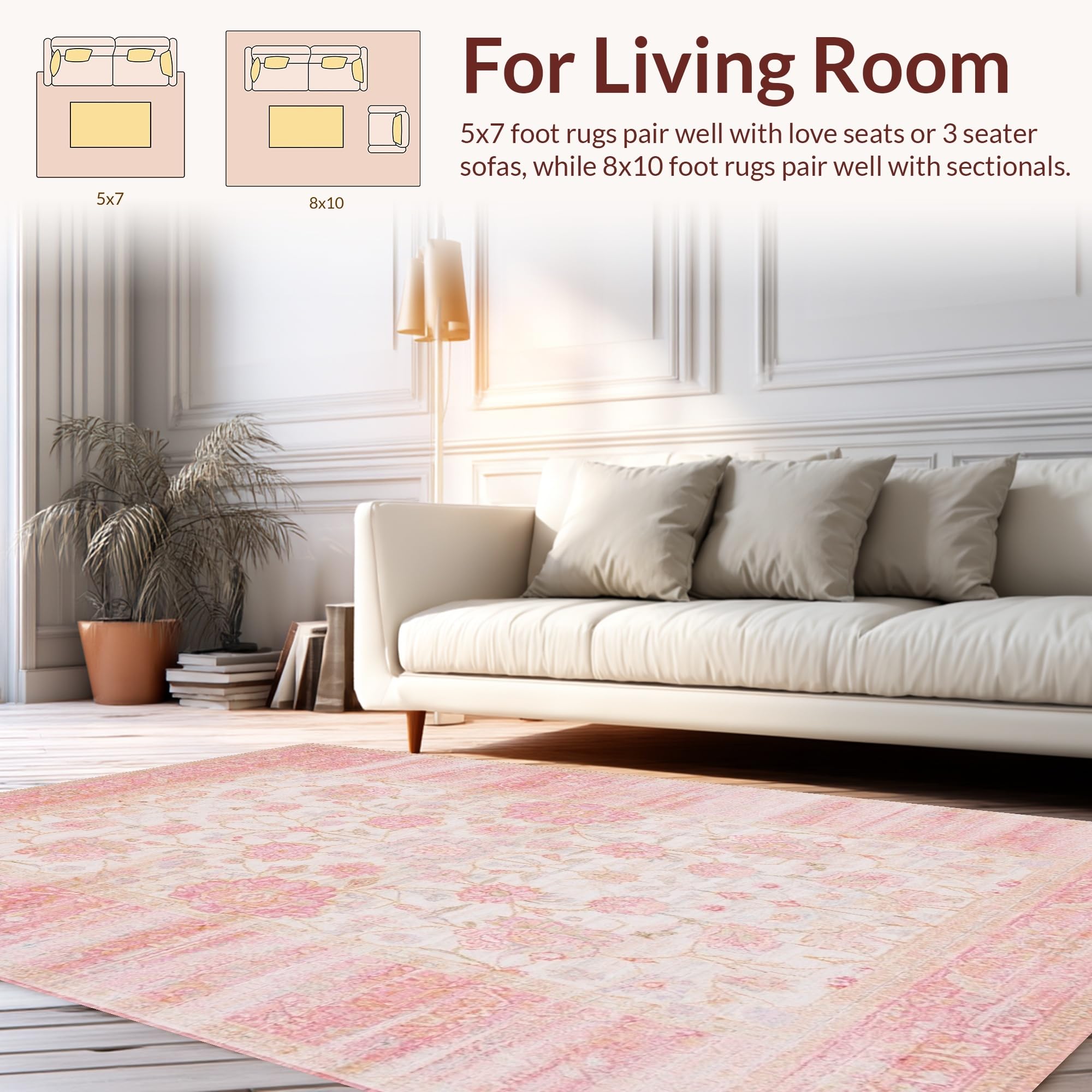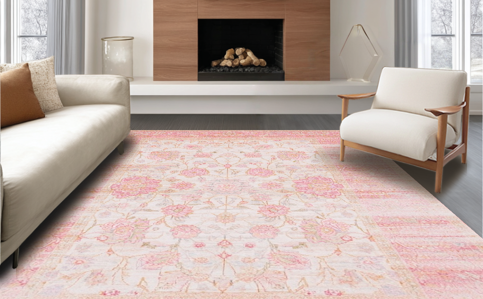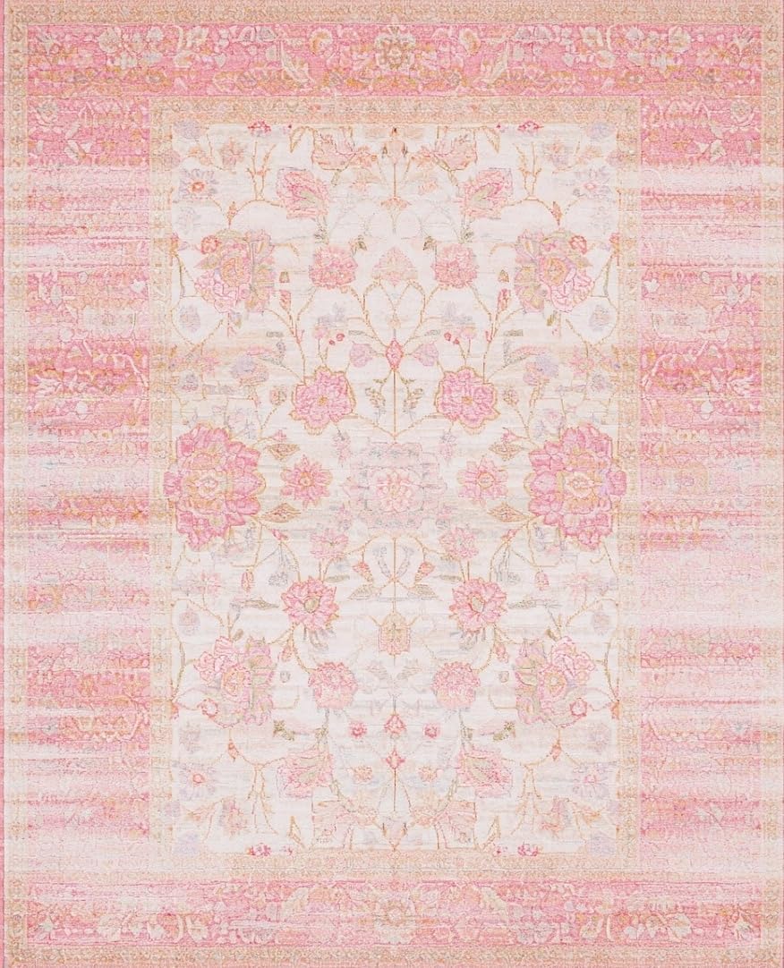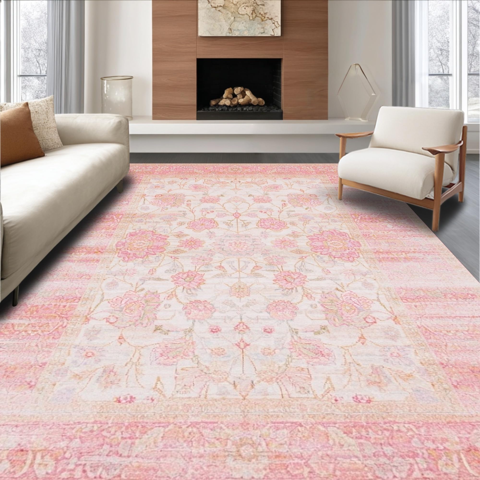 Ultra Soft Area Rug, Non Slip, Stain Resistant, Washable Area Rugs for Living Room, Bedroom, Lush Colorful Spring Blossom Theme(Pink) Overview:
