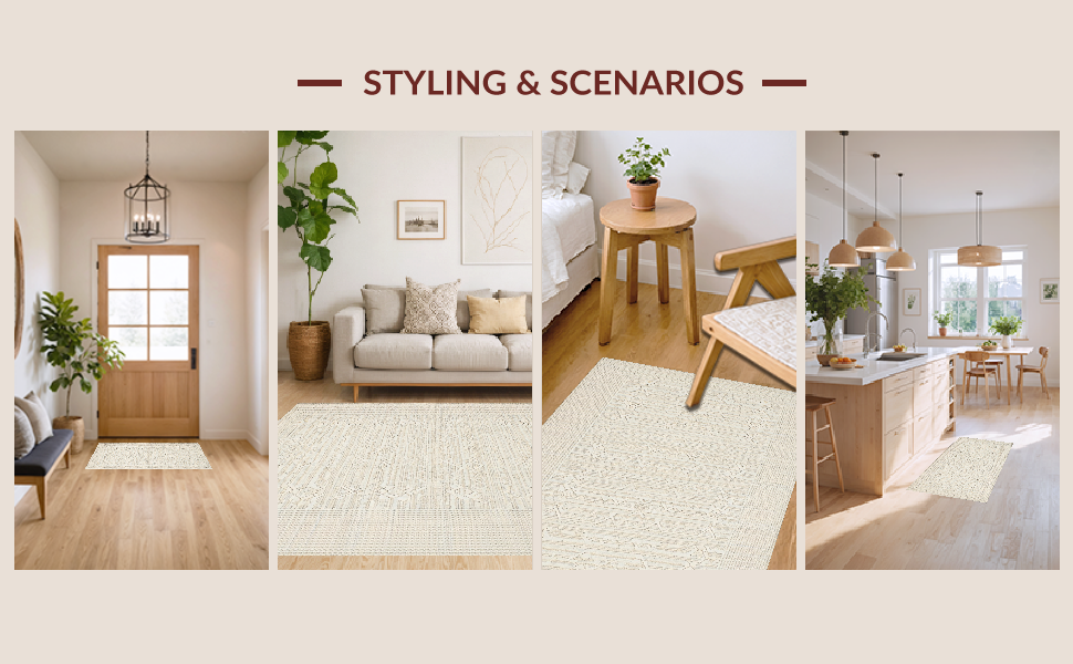 Ultra Soft Area Rug, Non Slip, Stain Resistant, Washable Area Rugs for Living Room, Bedroom, Lush Creamy Braided Style(Beige) Overview: