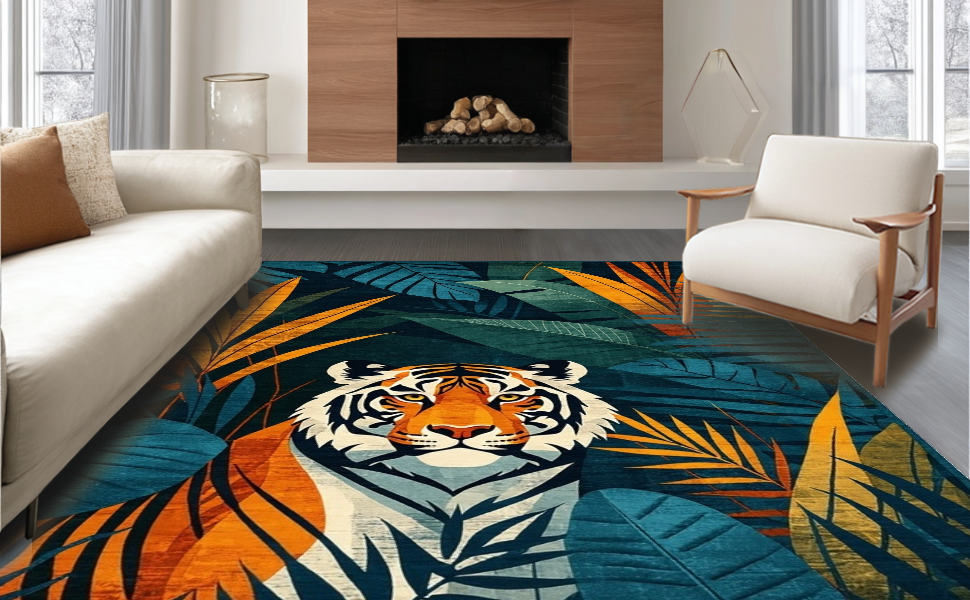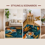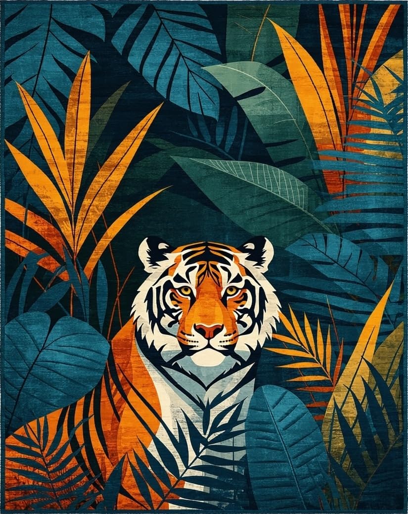 Ultra Soft Area Rug, Non Slip, Stain Resistant, Washable Area Rugs for Living Room, Bedroom, Lush Deep Blue Garden Elements(Blue) Overview: