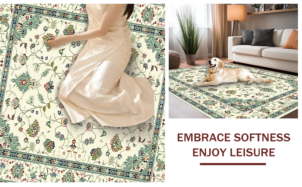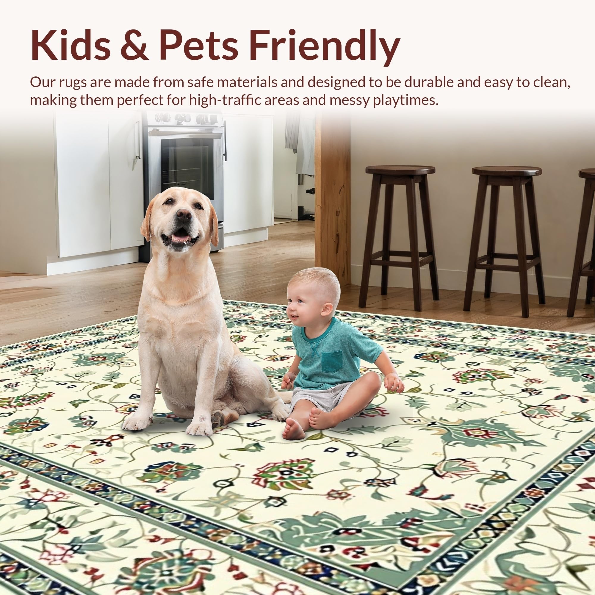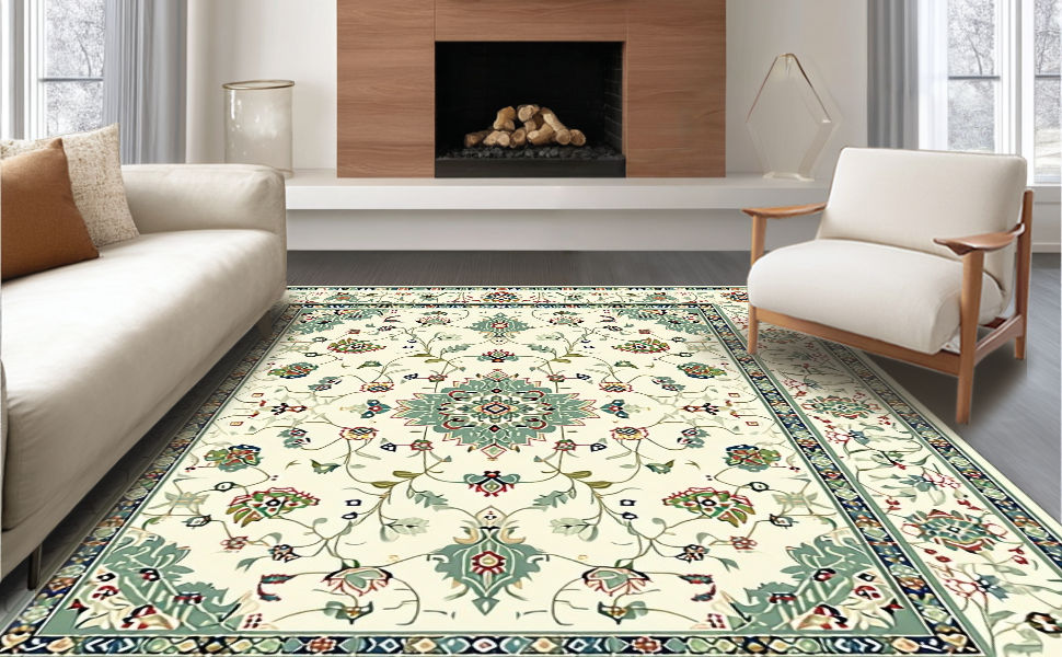 Ultra Soft Area Rug, Non Slip, Stain Resistant, Washable Area Rugs for Living Room, Bedroom, Lush Earthy Diamond Design(Ivory) Overview: