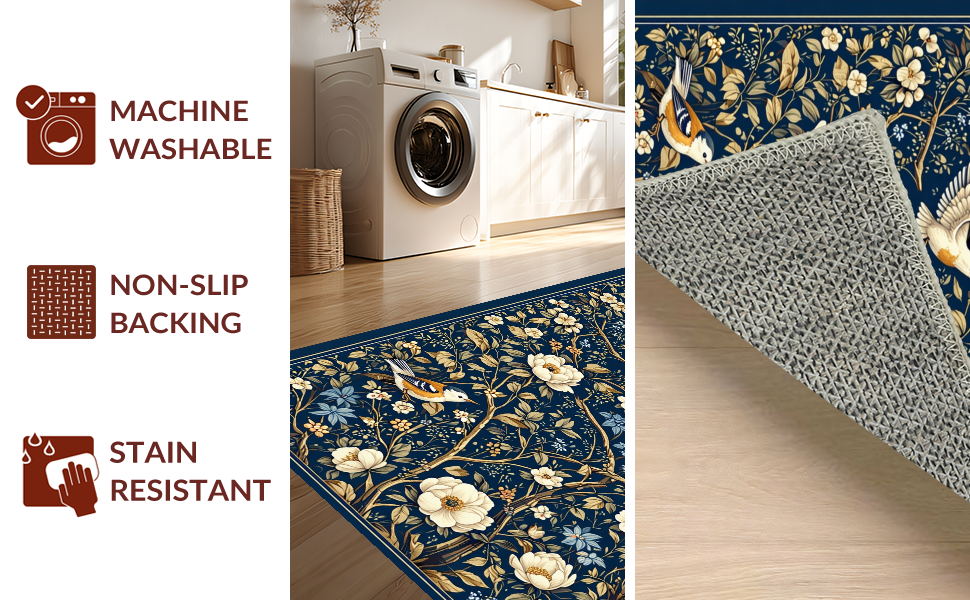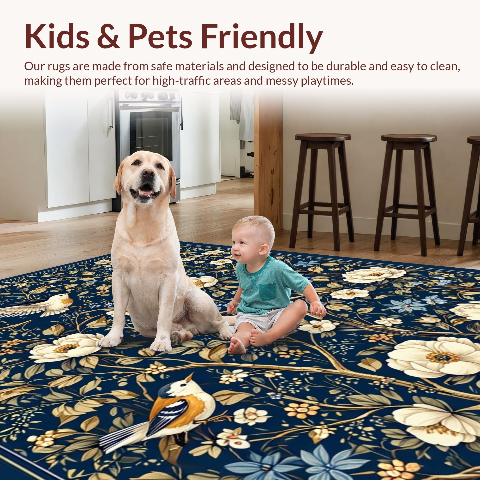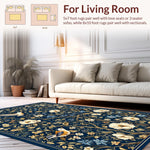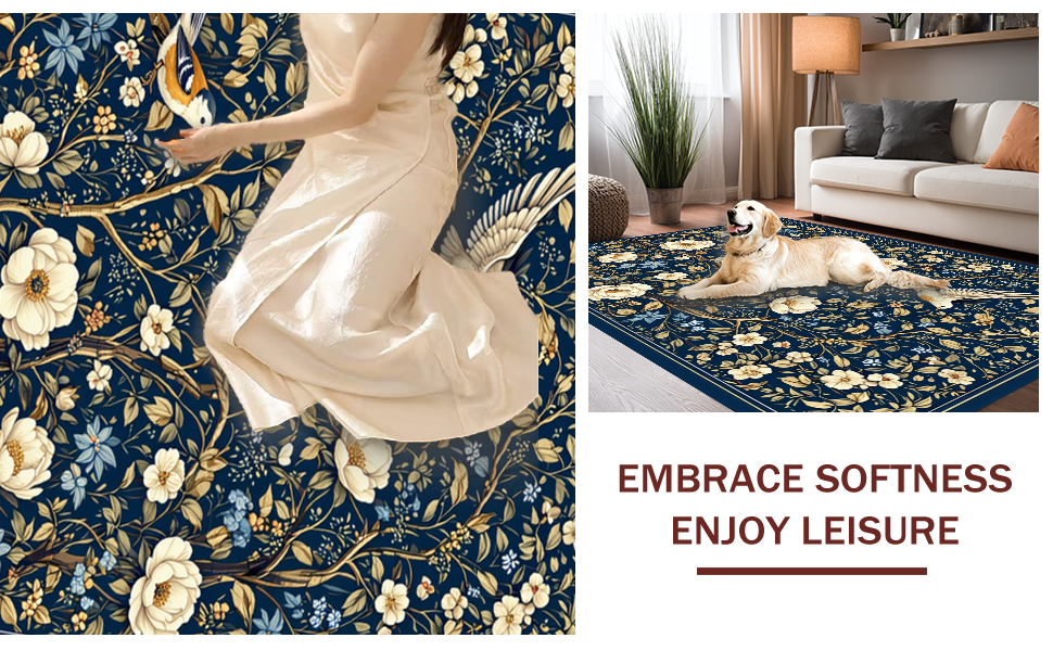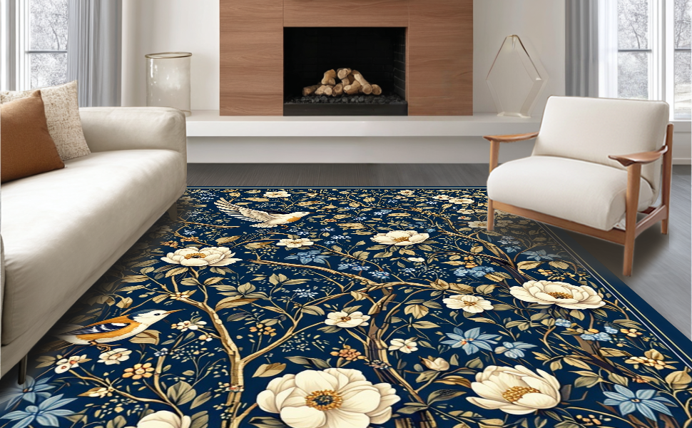 Ultra Soft Area Rug, Non Slip, Stain Resistant, Washable Area Rugs for Living Room, Bedroom, Lush Garden-Inspired Motif(Blue) Overview: