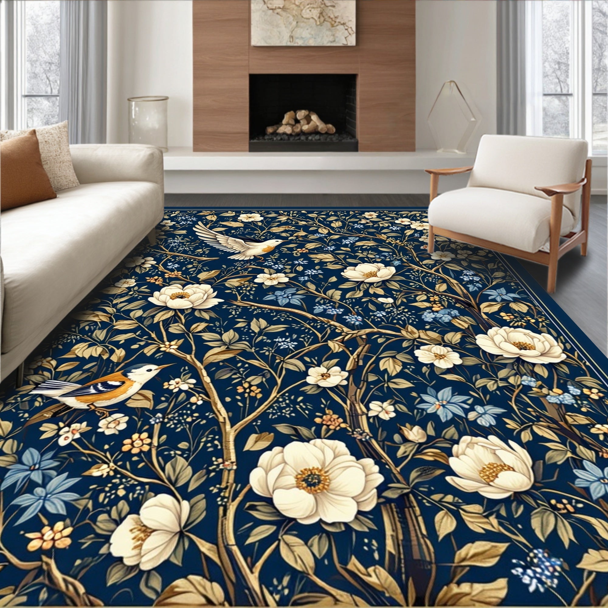 Flatwoven High Traffic Area Rug, Lush Garden Inspired Motif, Non Slip, Stain Resistant, Washable Area Rugs for Living Room, Bedroom (Blue) Overview: