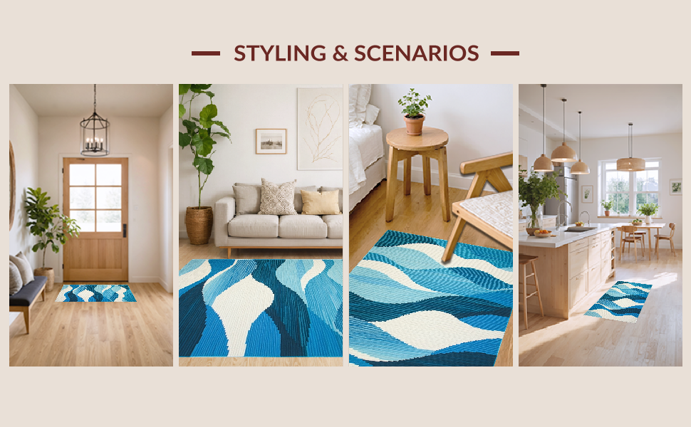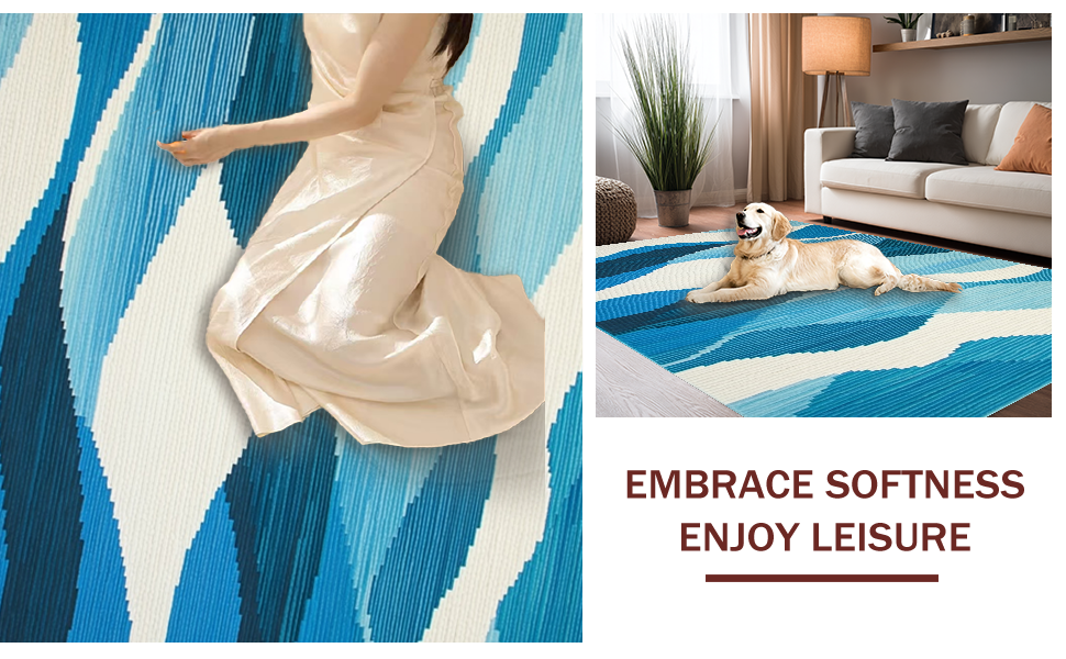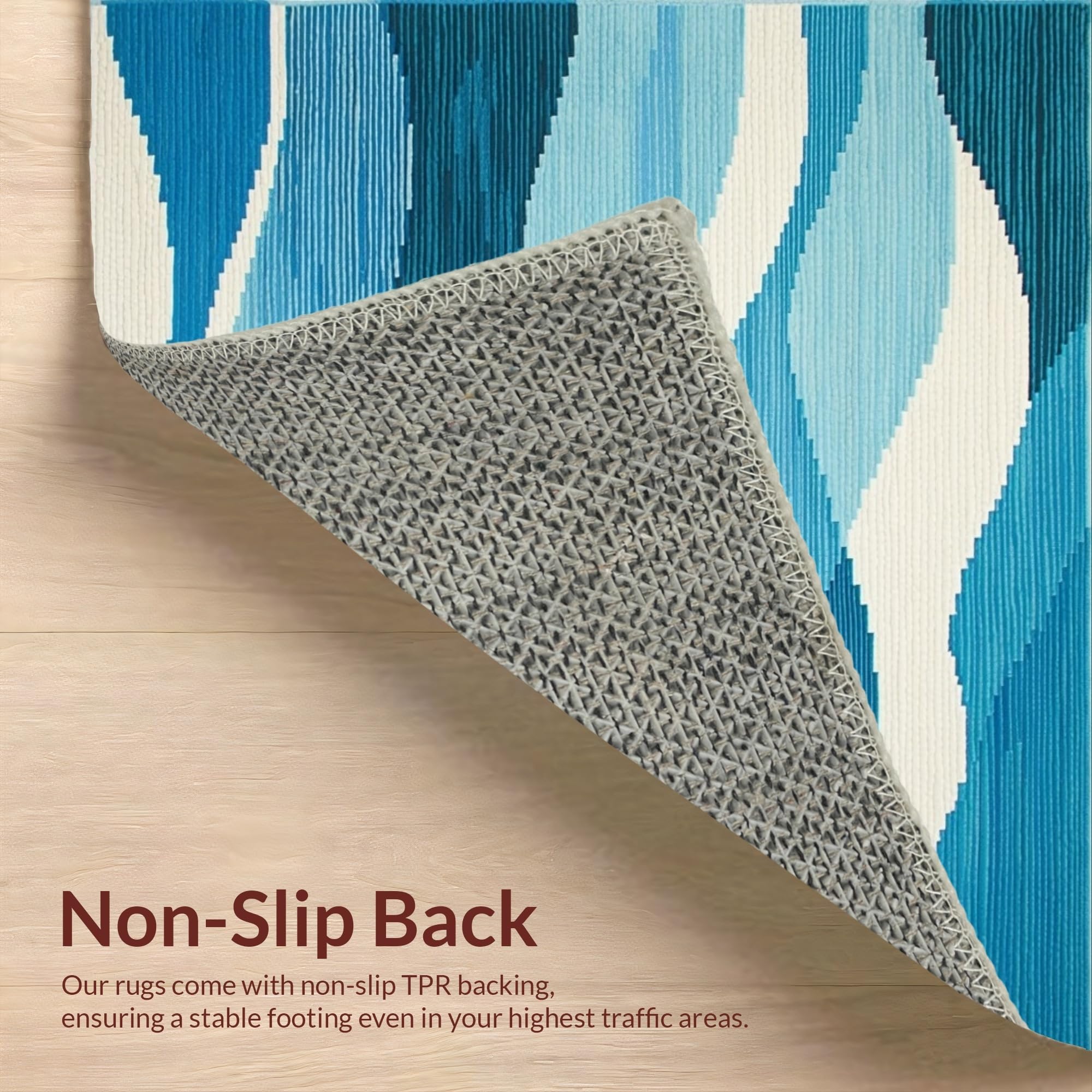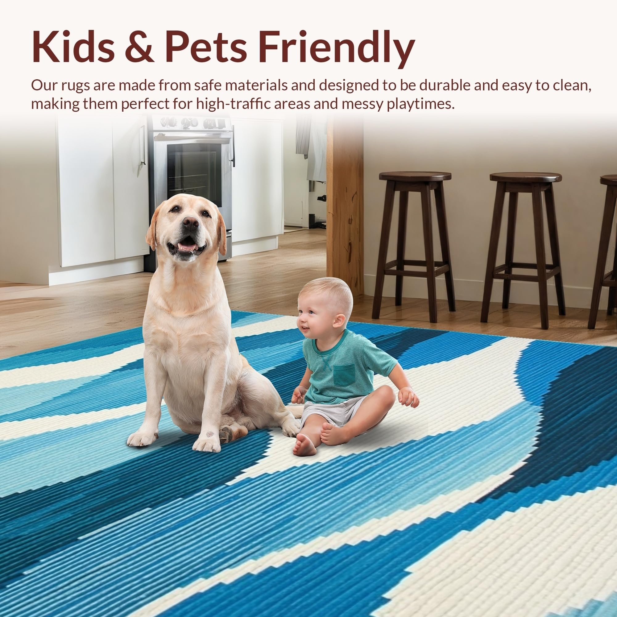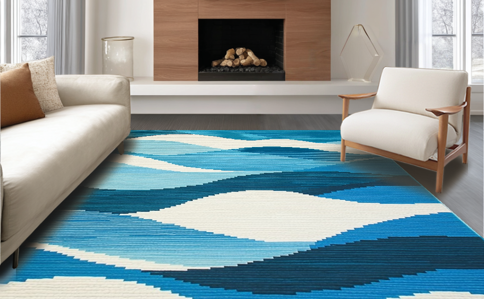 Ultra Soft Area Rug, Non Slip, Stain Resistant, Washable Area Rugs for Living Room, Bedroom, Lush Gentle Curved Lines(Blue) Overview: