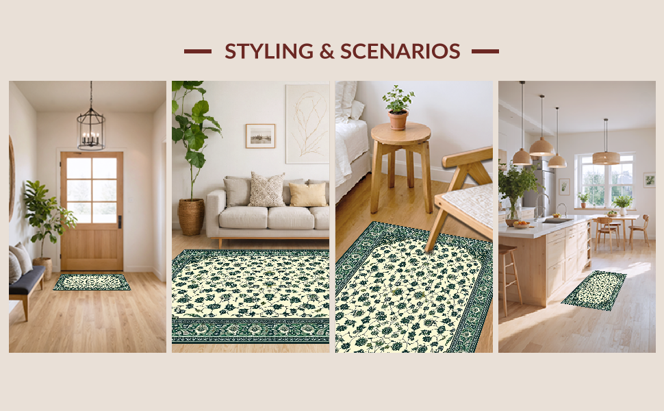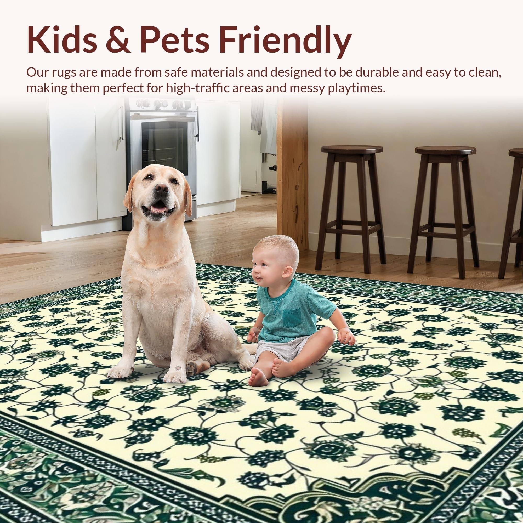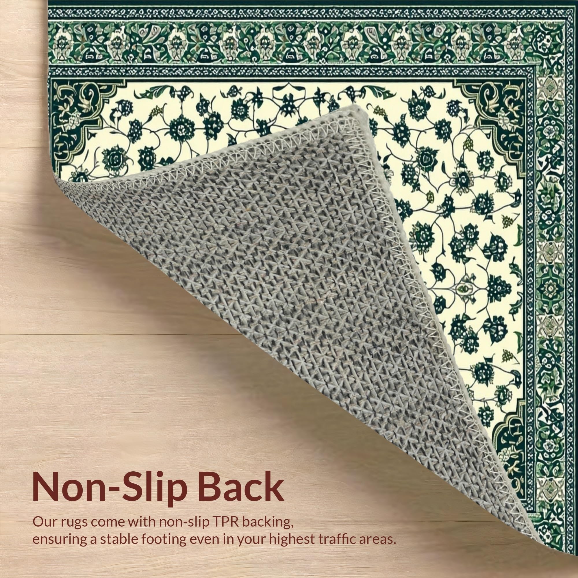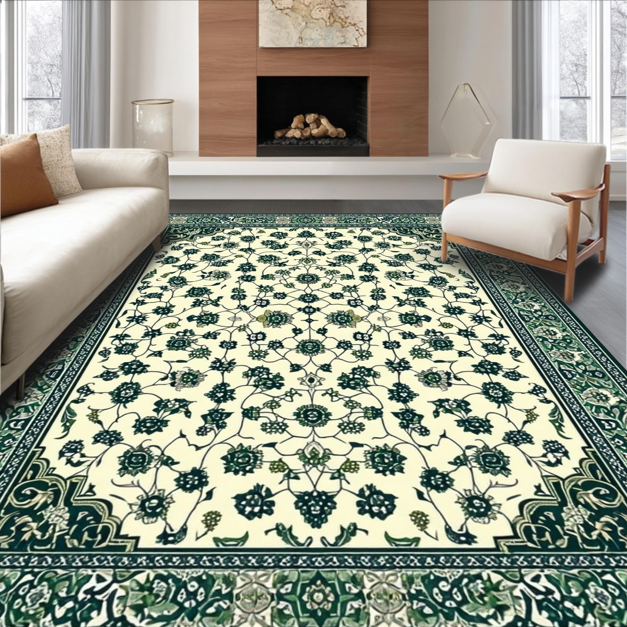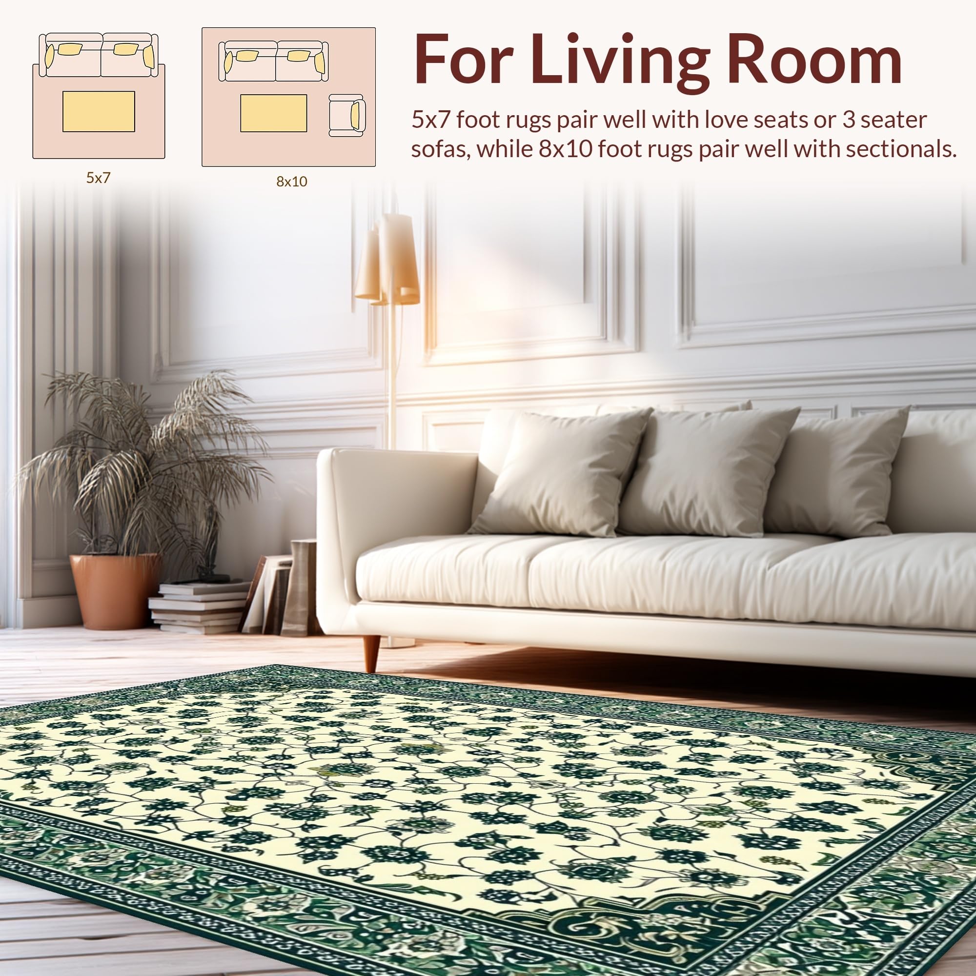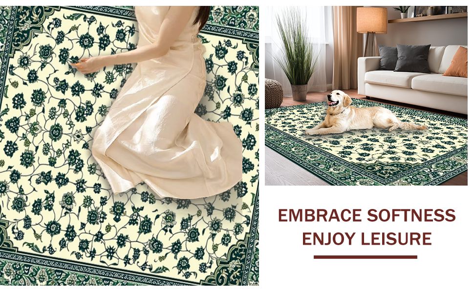 Ultra Soft Area Rug, Non Slip, Stain Resistant, Washable Area Rugs for Living Room, Bedroom, Lush Green Abstract Flourishes(Beige) Overview: