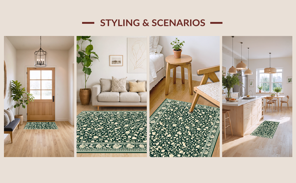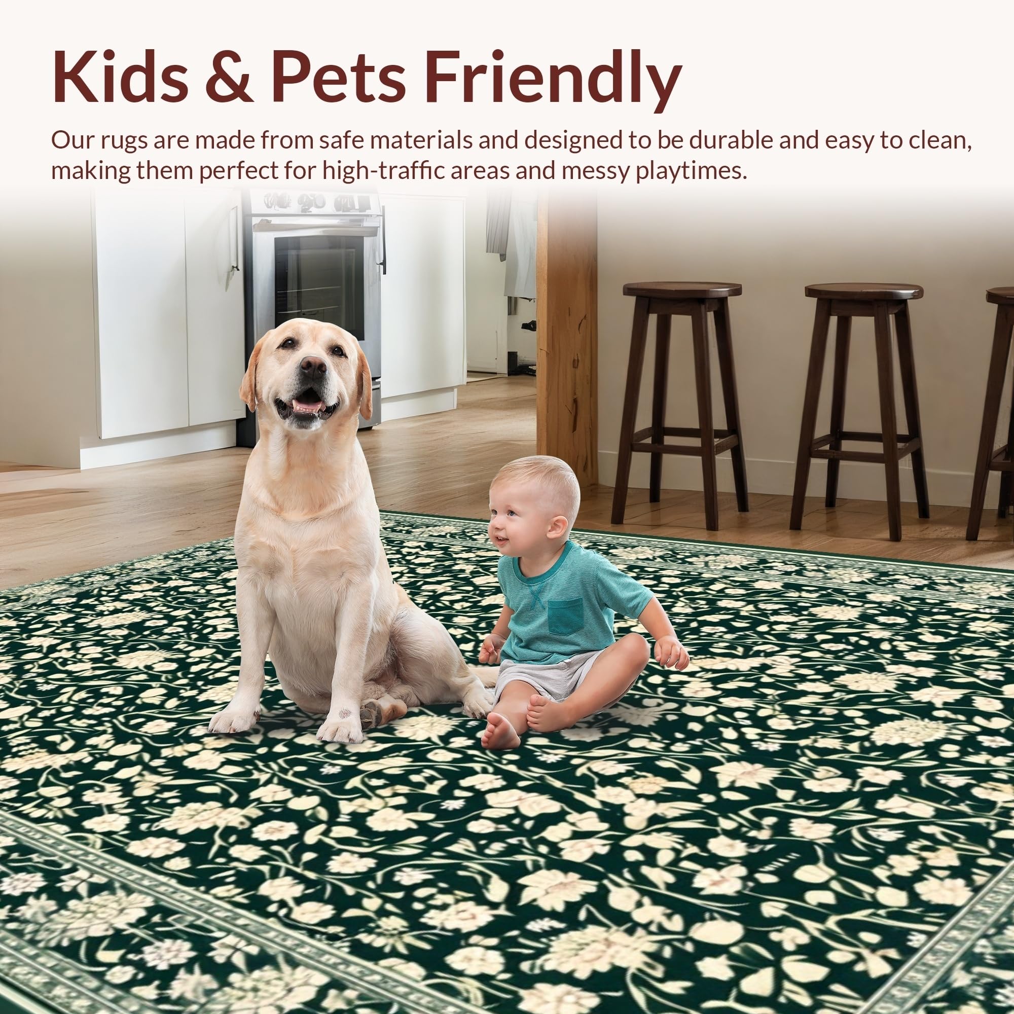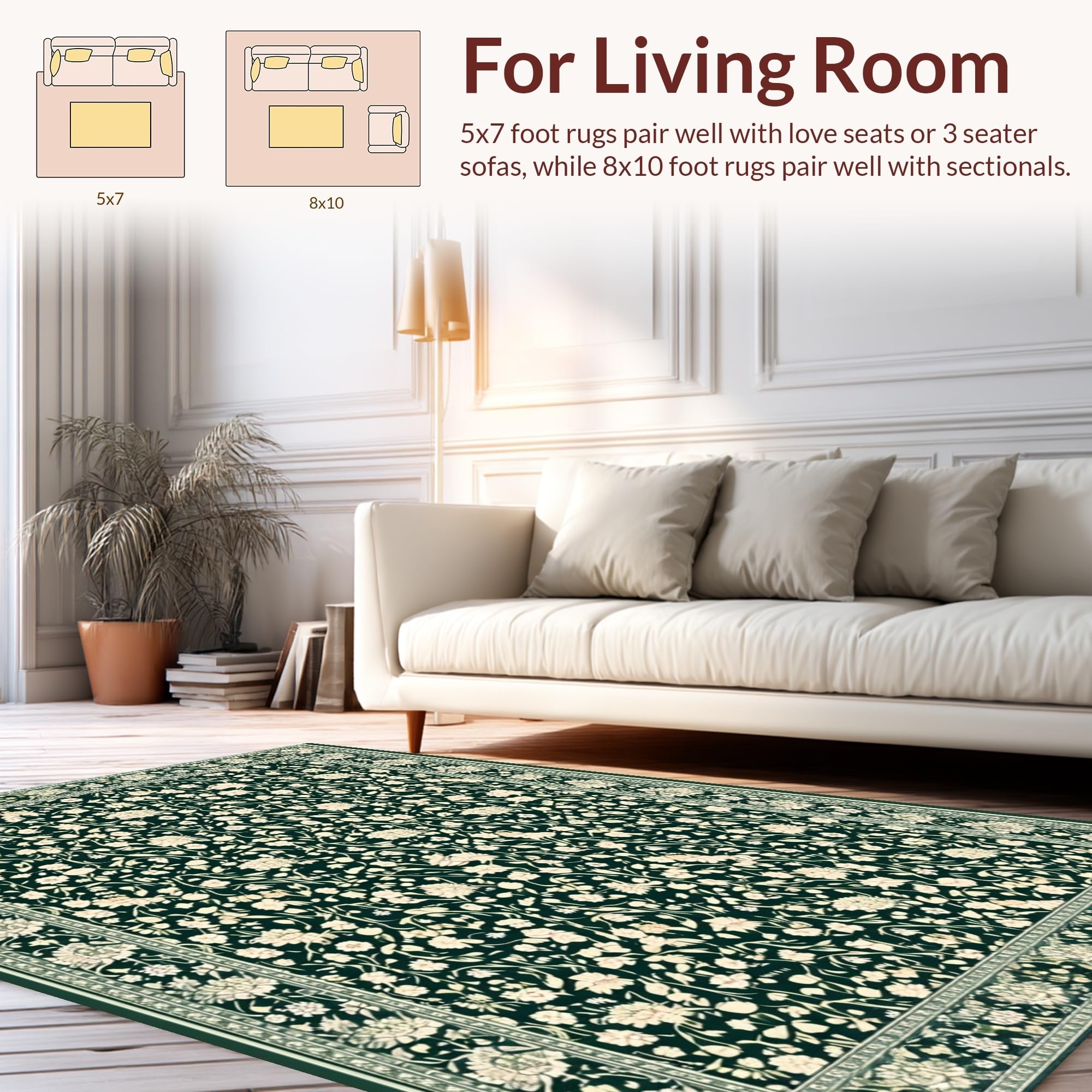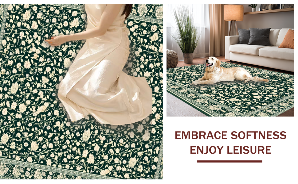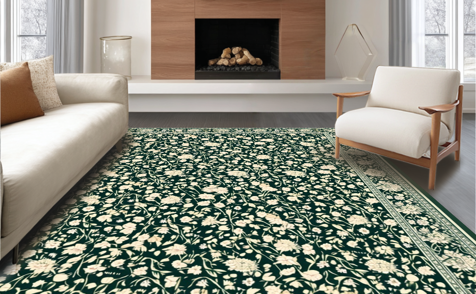 Ultra Soft Area Rug, Non Slip, Stain Resistant, Washable Area Rugs for Living Room, Bedroom, Lush Green Botanical Motif(Black) Overview: