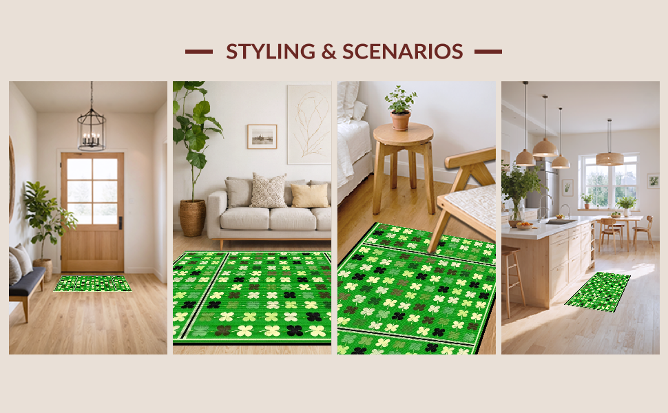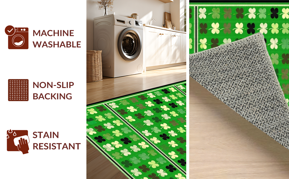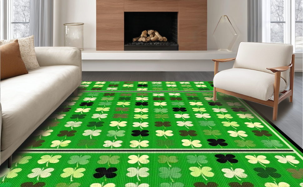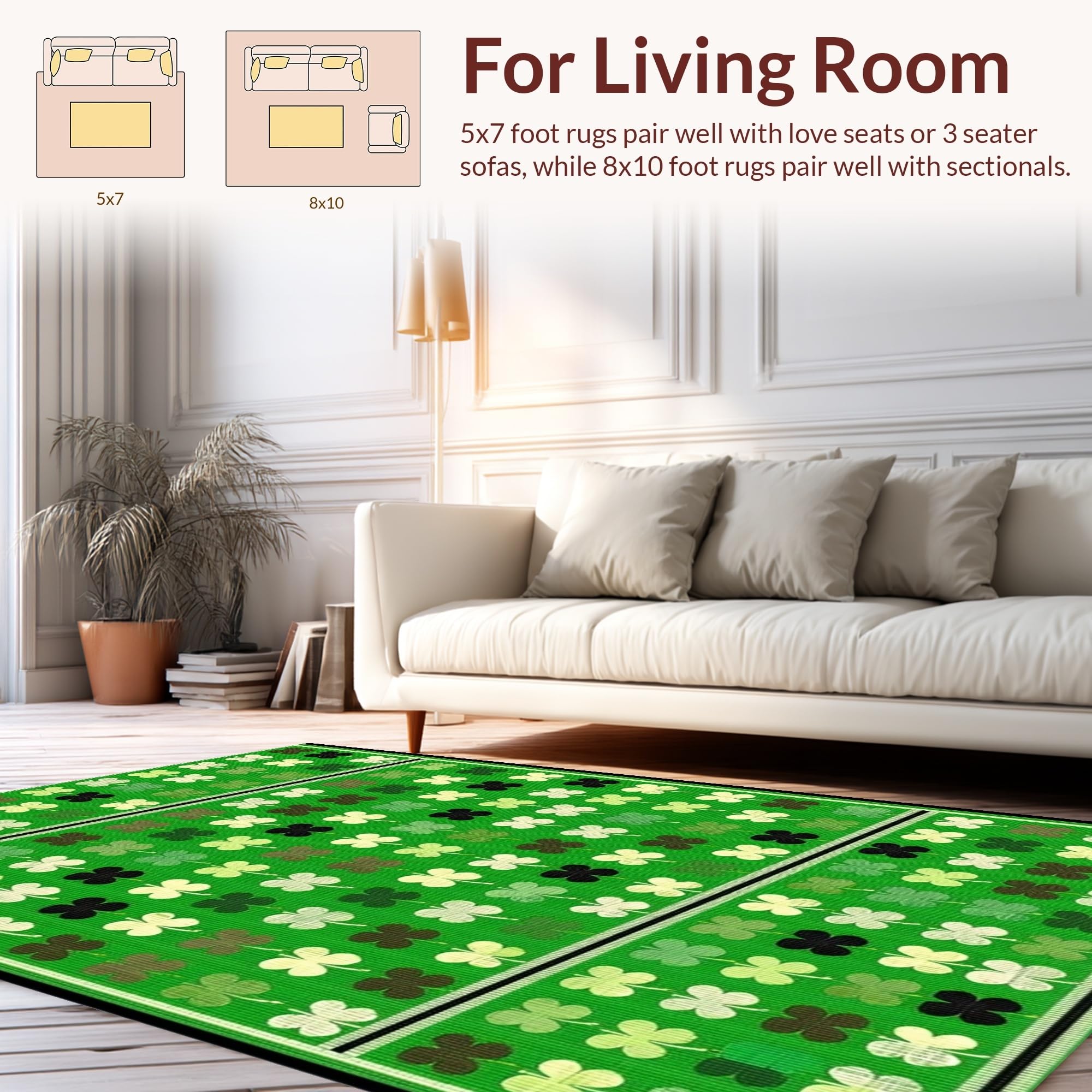 Ultra Soft Area Rug, Non Slip, Stain Resistant, Washable Area Rugs for Living Room, Bedroom, Lush Green Rustic Shamrock Aesthetic(Green) Overview: