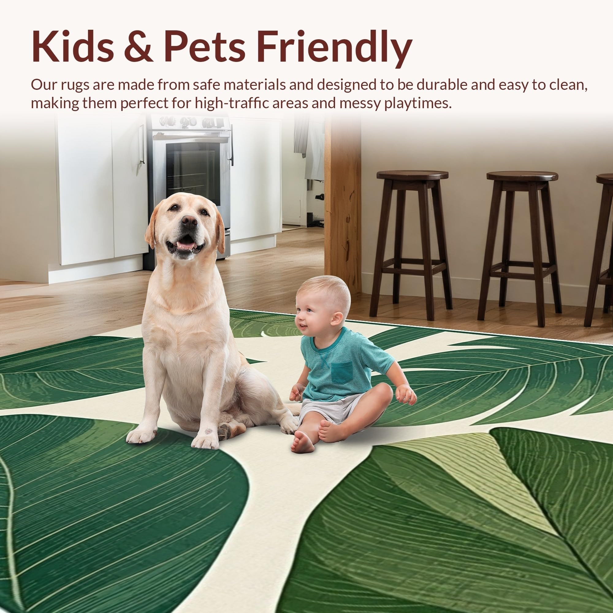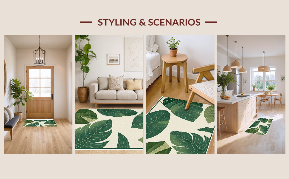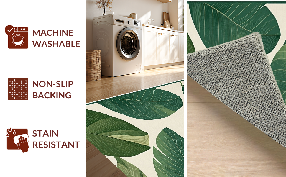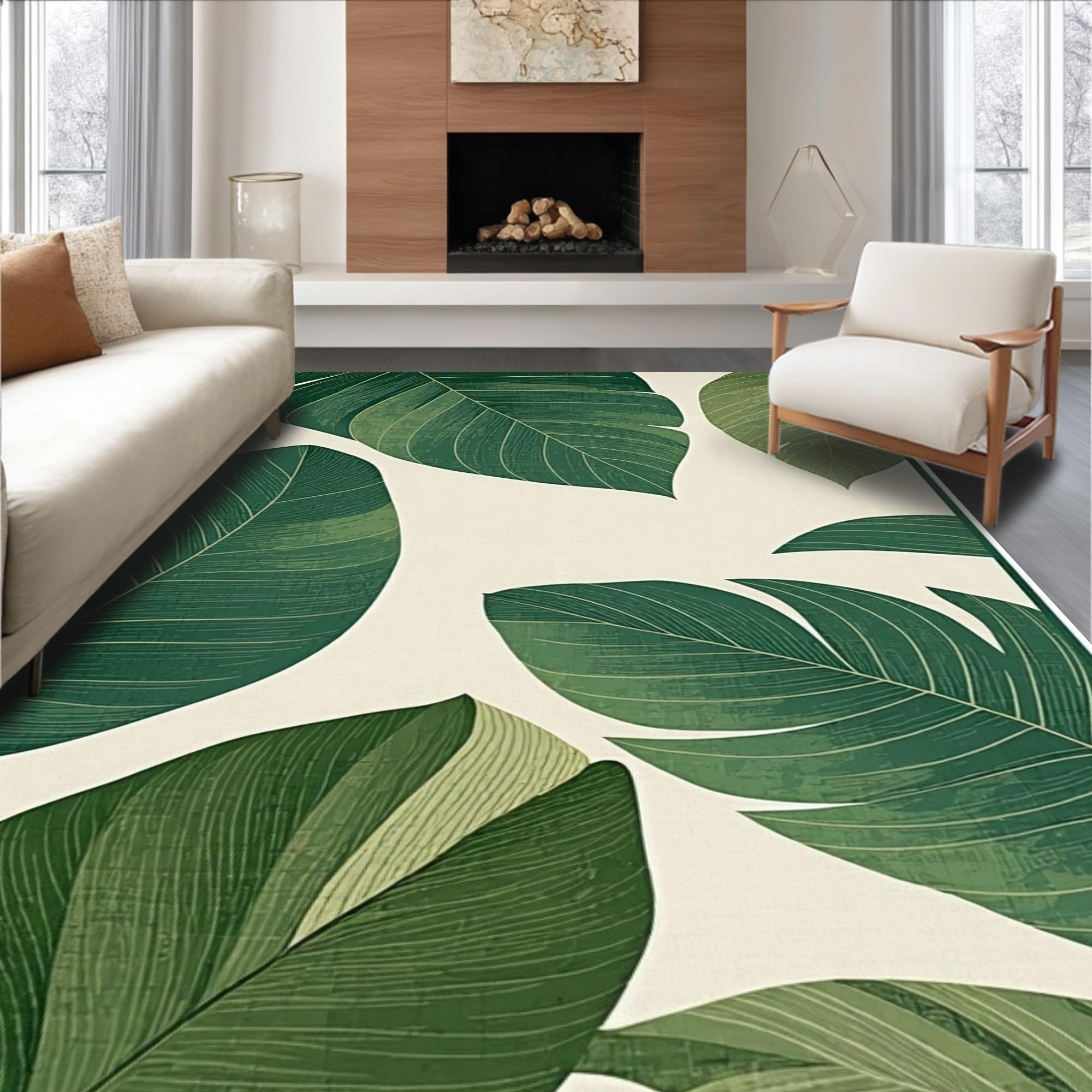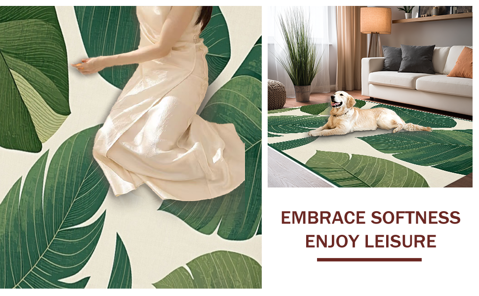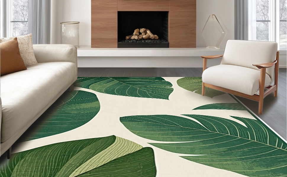 Ultra Soft Area Rug, Non Slip, Stain Resistant, Washable Area Rugs for Living Room, Bedroom, Lush Green Tropical Vibe(Green) Overview: