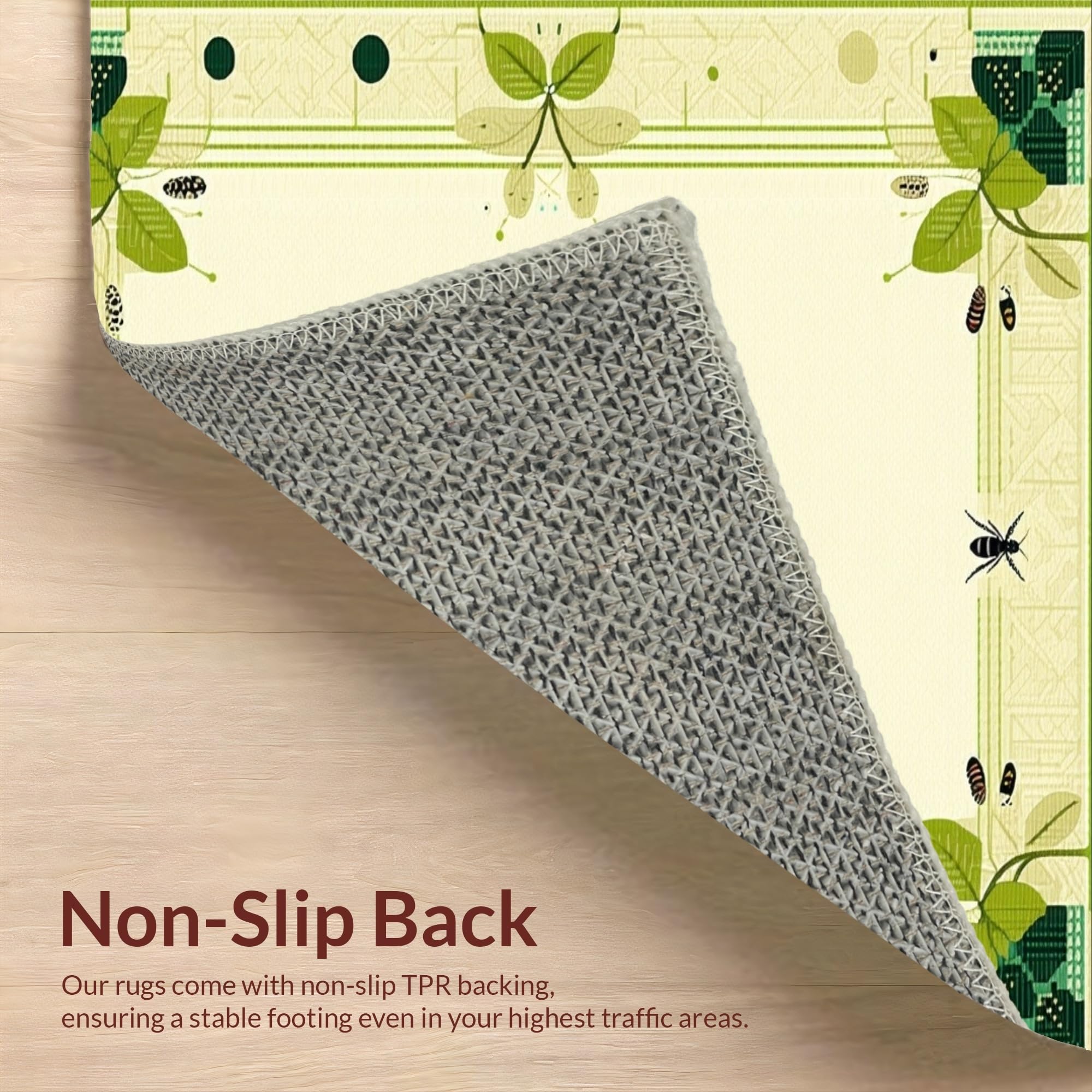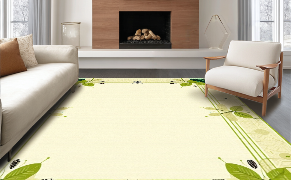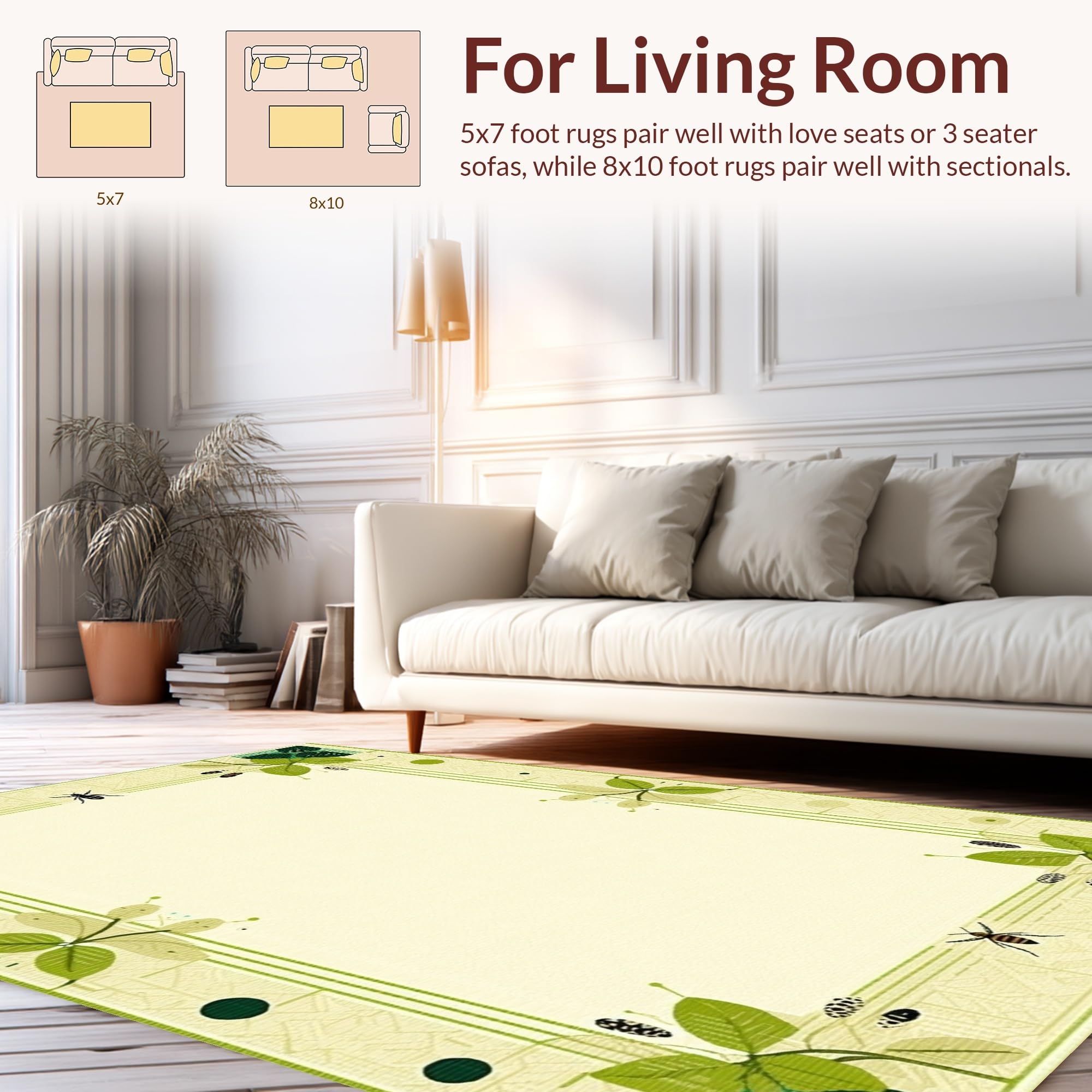 Ultra Soft Area Rug, Non Slip, Stain Resistant, Washable Area Rugs for Living Room, Bedroom, Lush Greenery Inspired Print(Beige) Overview: