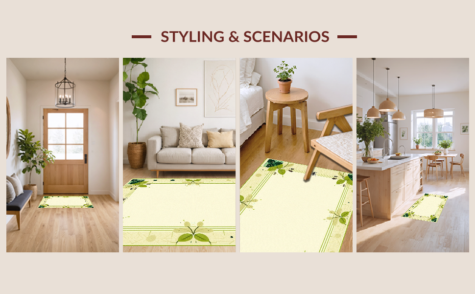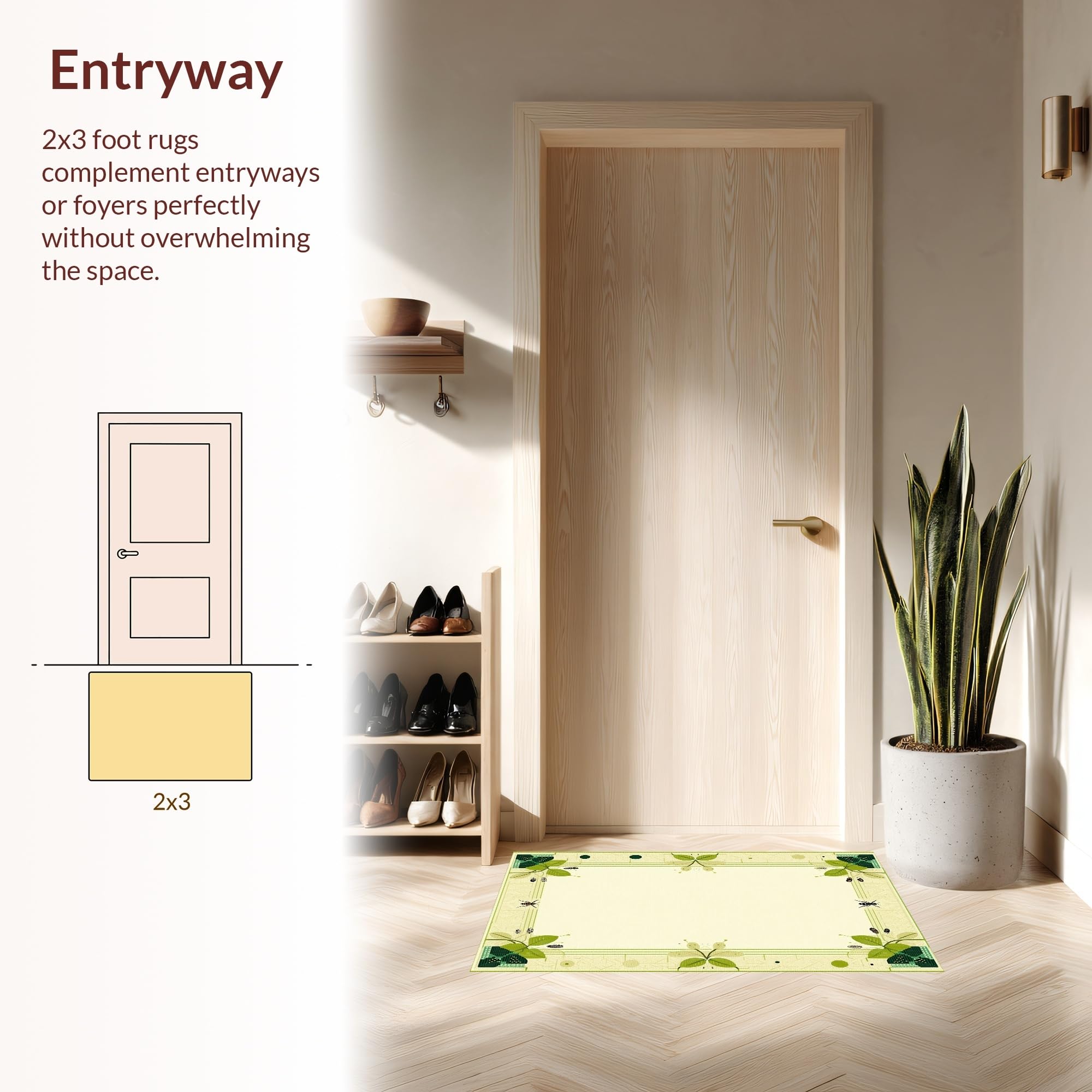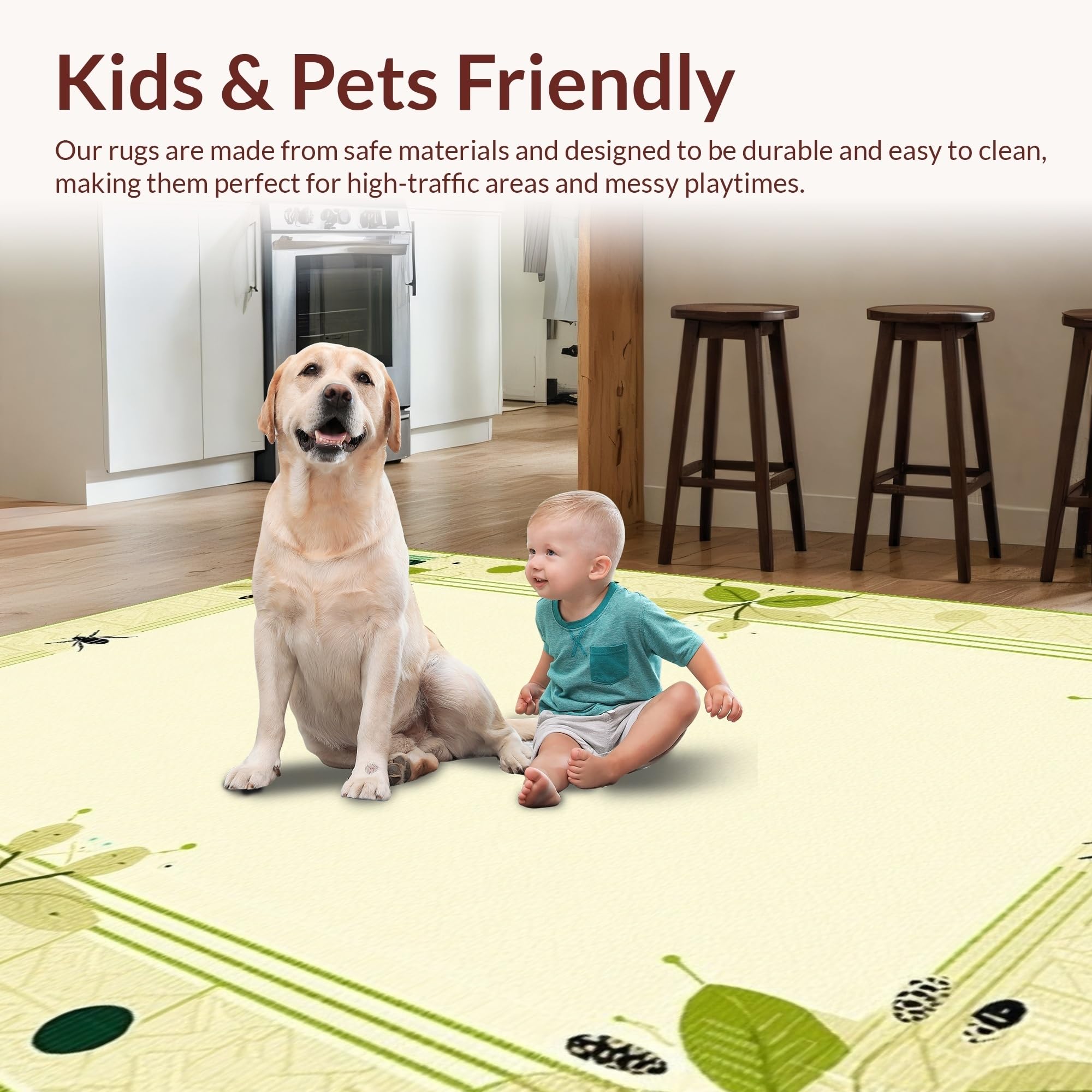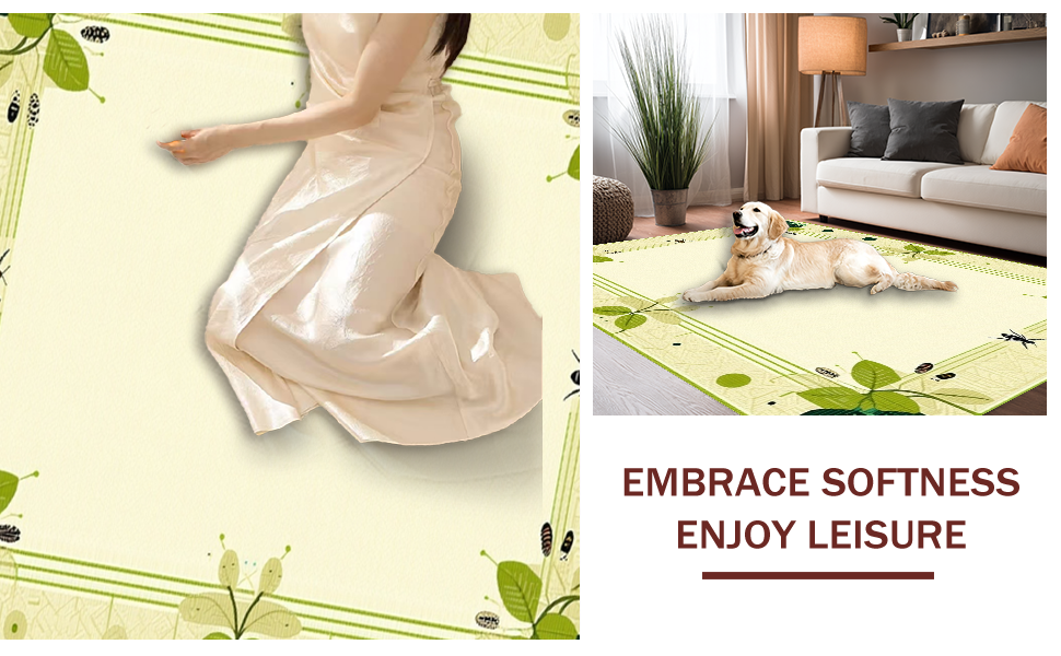 Ultra Soft Area Rug, Non Slip, Stain Resistant, Washable Area Rugs for Living Room, Bedroom, Lush Greenery Inspired Print(Beige) Overview: