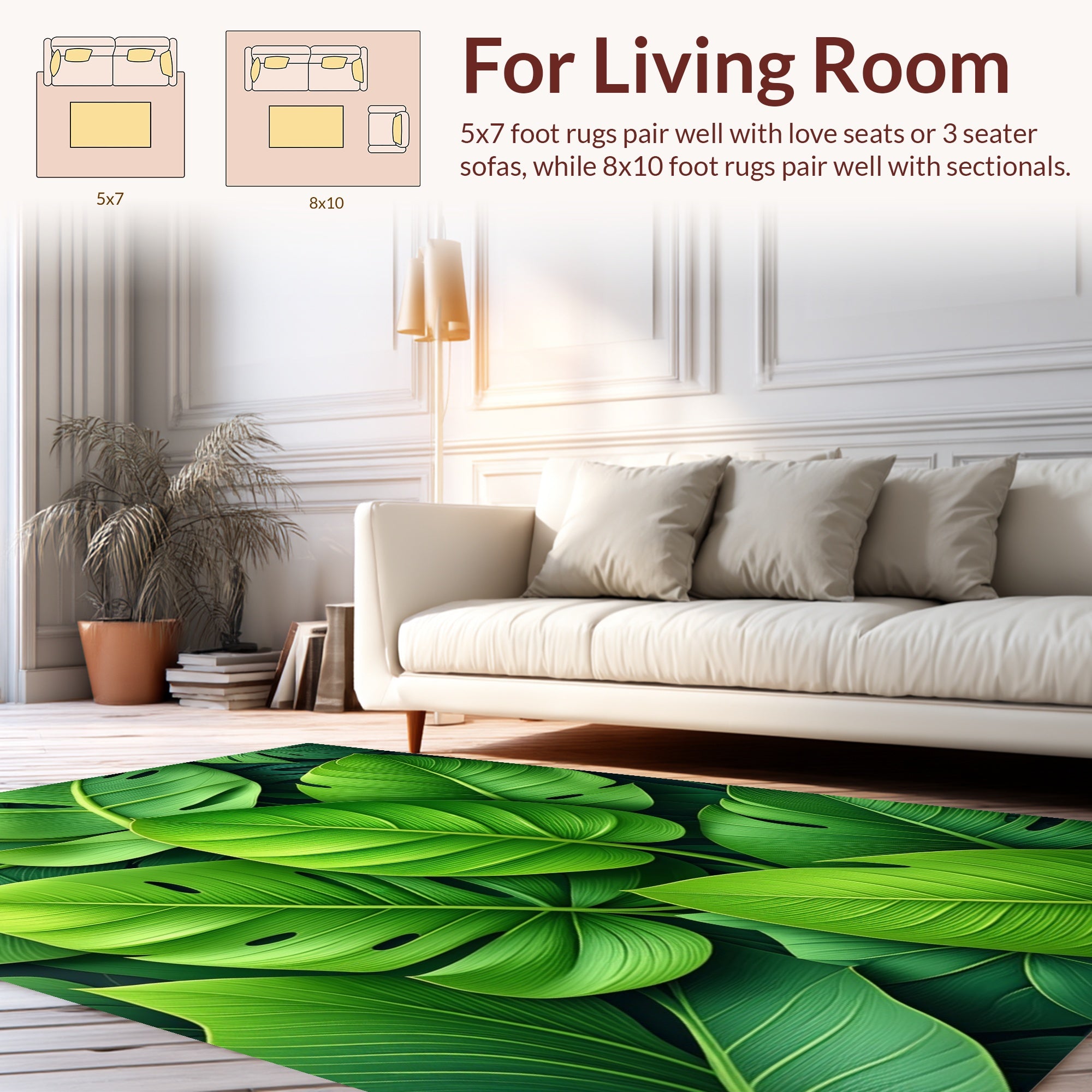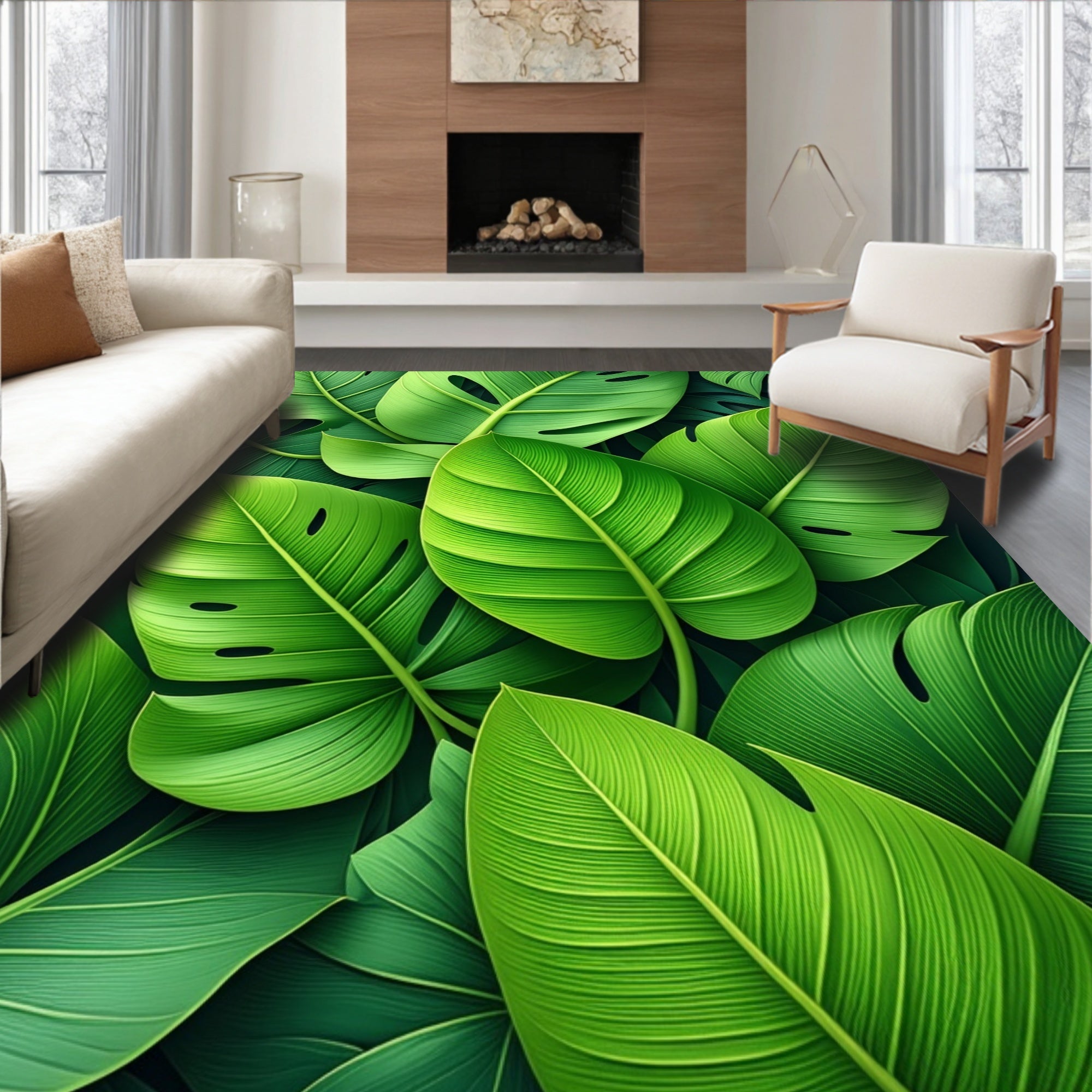 Flatwoven High Traffic Area Rug, Lush Monstera Leaf, Non Slip, Stain Resistant, Washable Area Rugs for Living Room, Bedroom (Green) Overview: