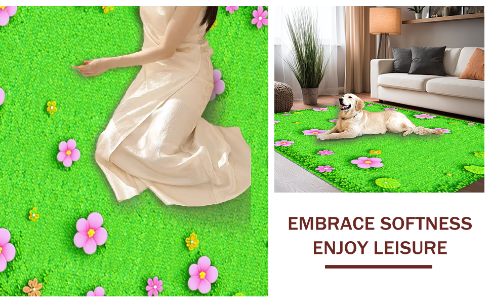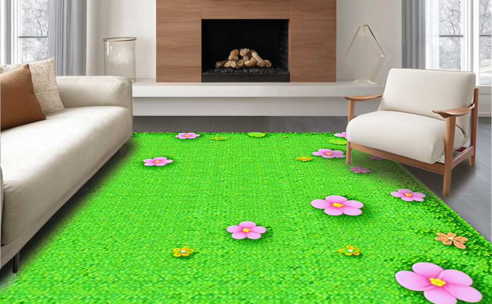 Ultra Soft Area Rug, Non Slip, Stain Resistant, Washable Area Rugs for Living Room, Bedroom, Lush Mossy Patterned Aesthetic(Green) Overview: