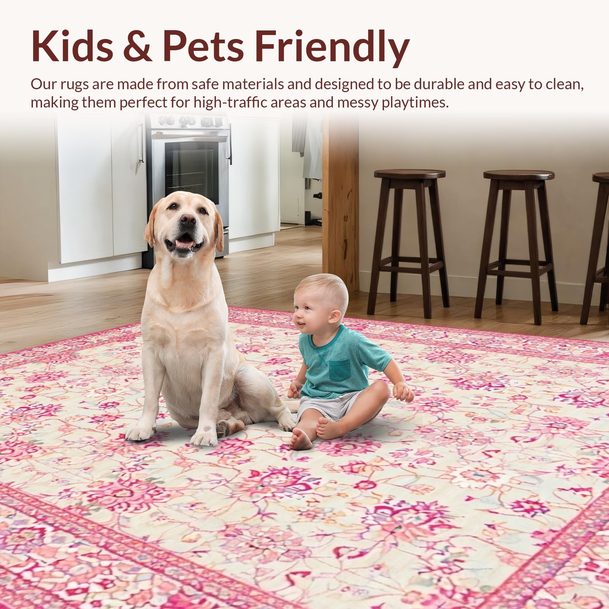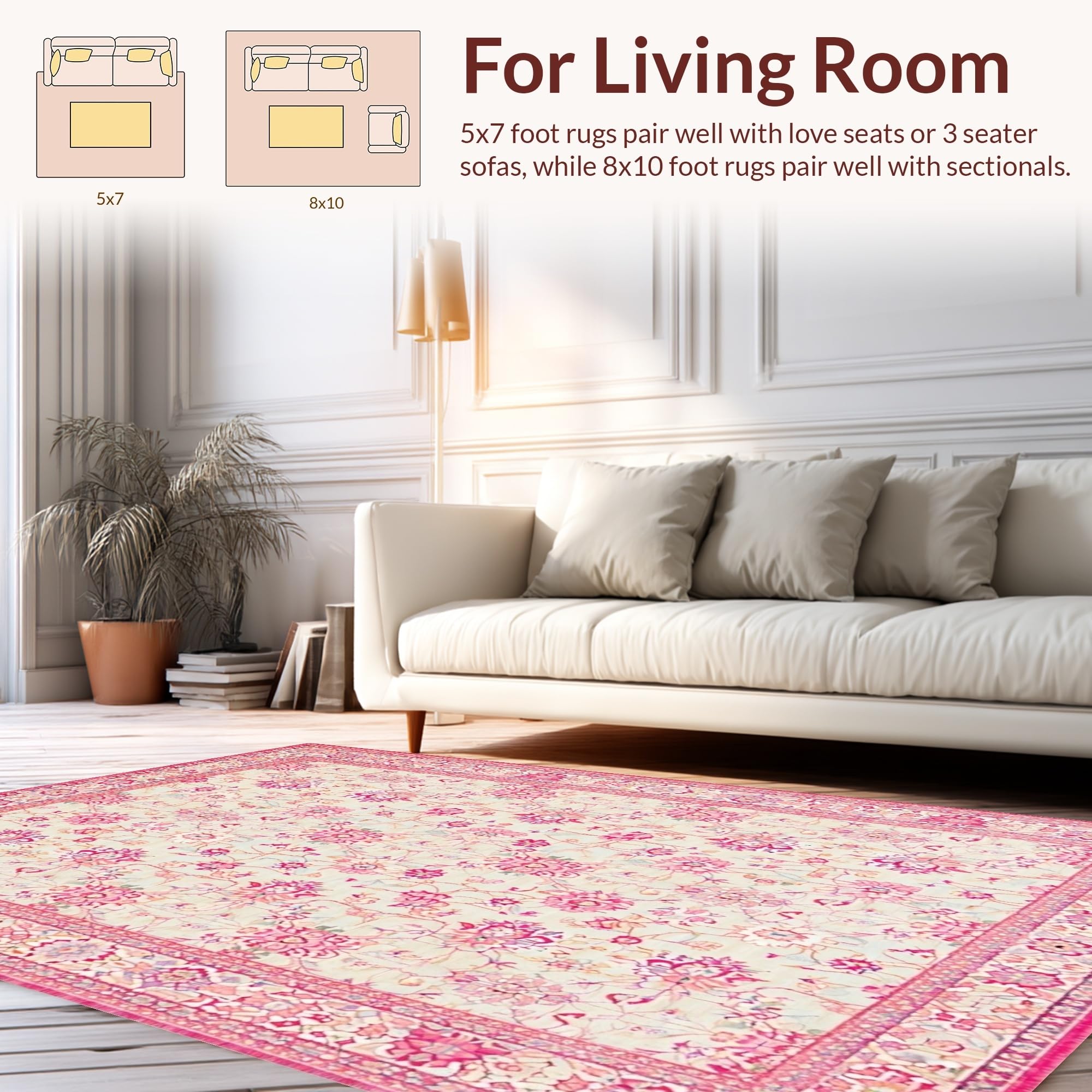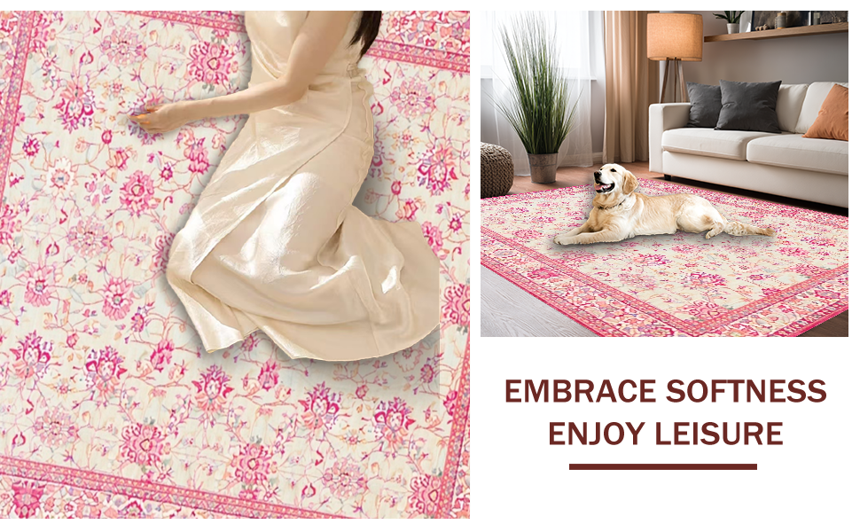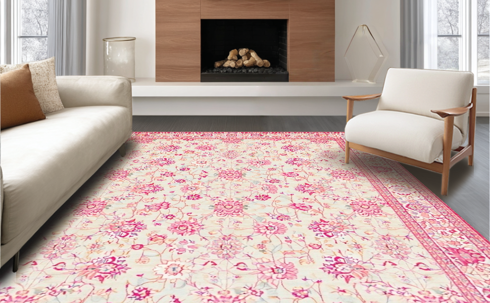 Ultra Soft Area Rug, Non Slip, Stain Resistant, Washable Area Rugs for Living Room, Bedroom, Lush Nature-Inspired Design(Ivory) Overview: