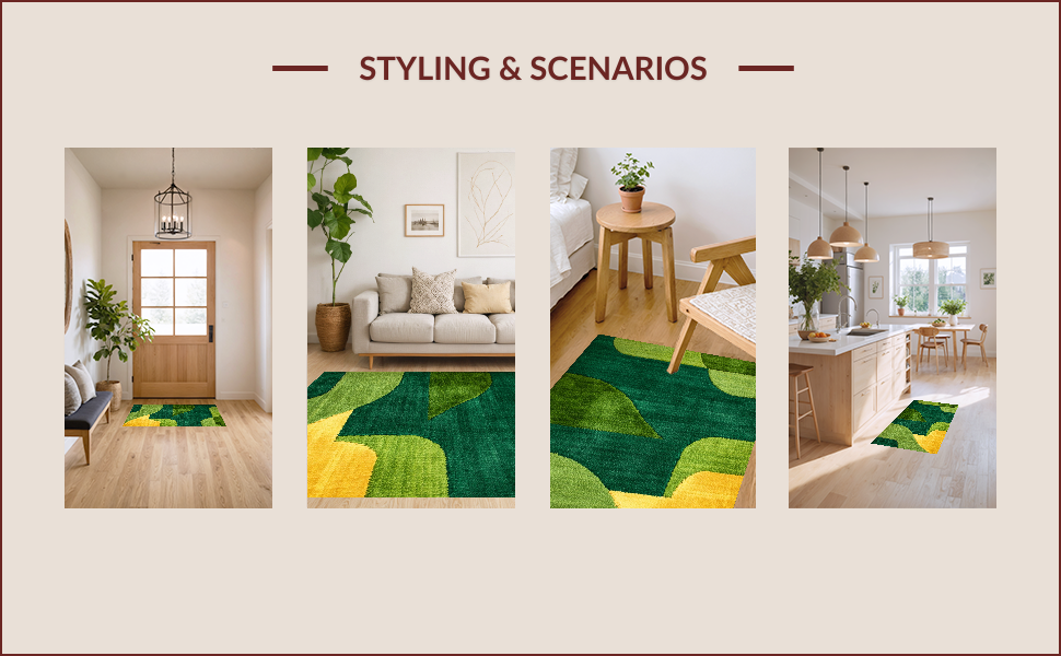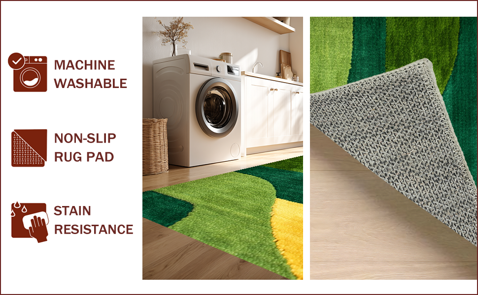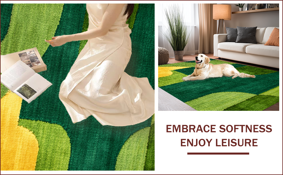 Ultra Soft Area Rug, Non Slip, Stain Resistant, Washable Area Rugs for Living Room, Bedroom, Lush Nature-Inspired Foliage Pattern(Green) Overview: