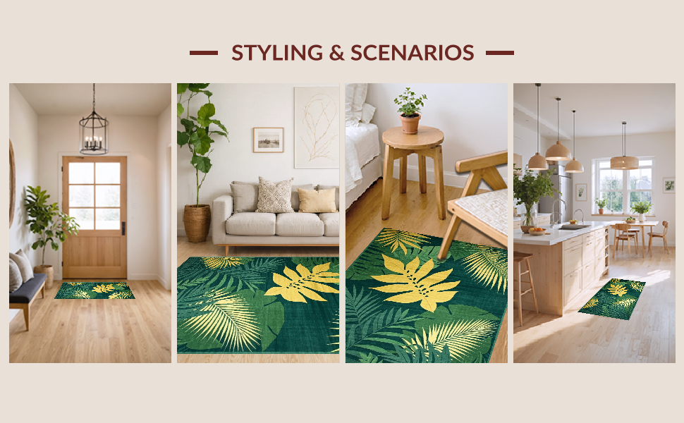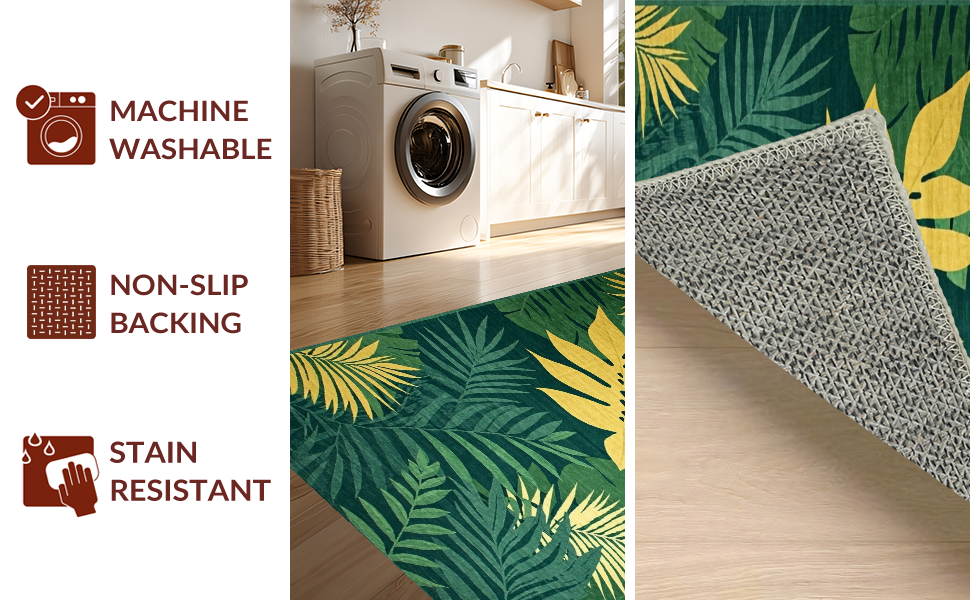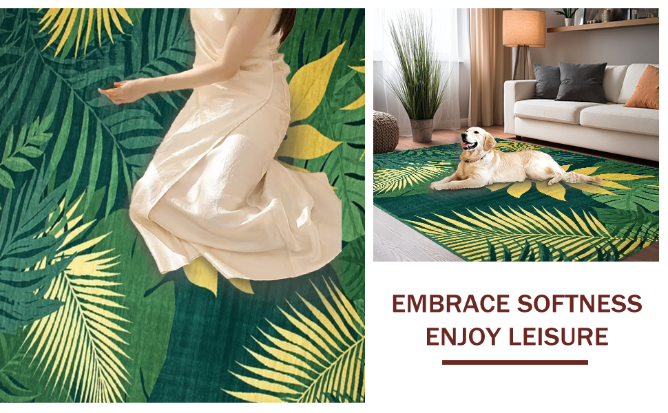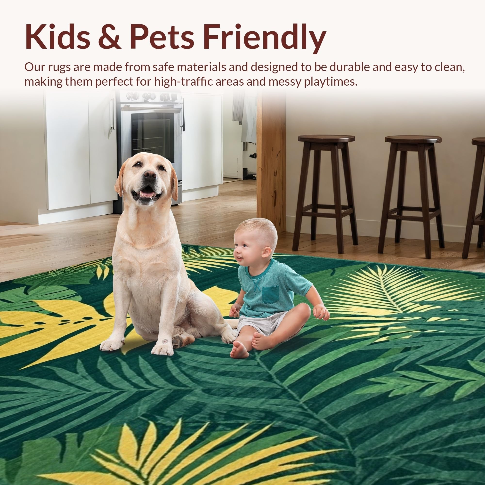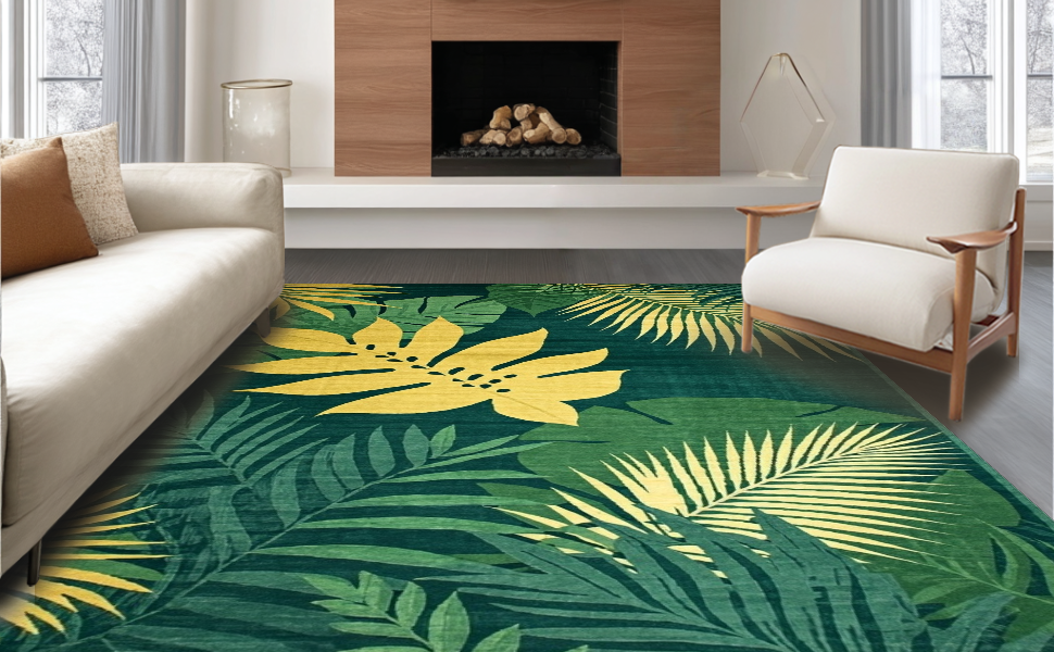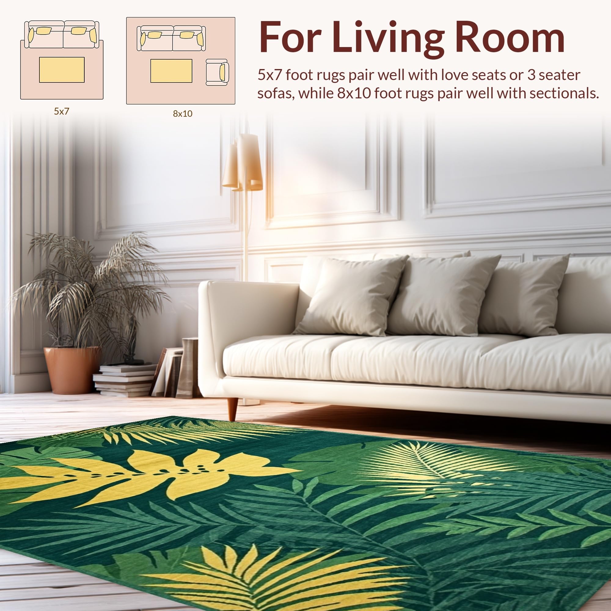 Ultra Soft Area Rug, Non Slip, Stain Resistant, Washable Area Rugs for Living Room, Bedroom, Lush Nature-Inspired Print(Green) Overview: