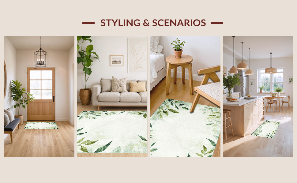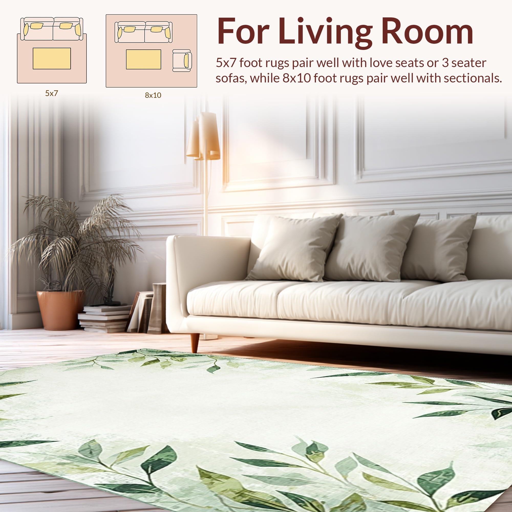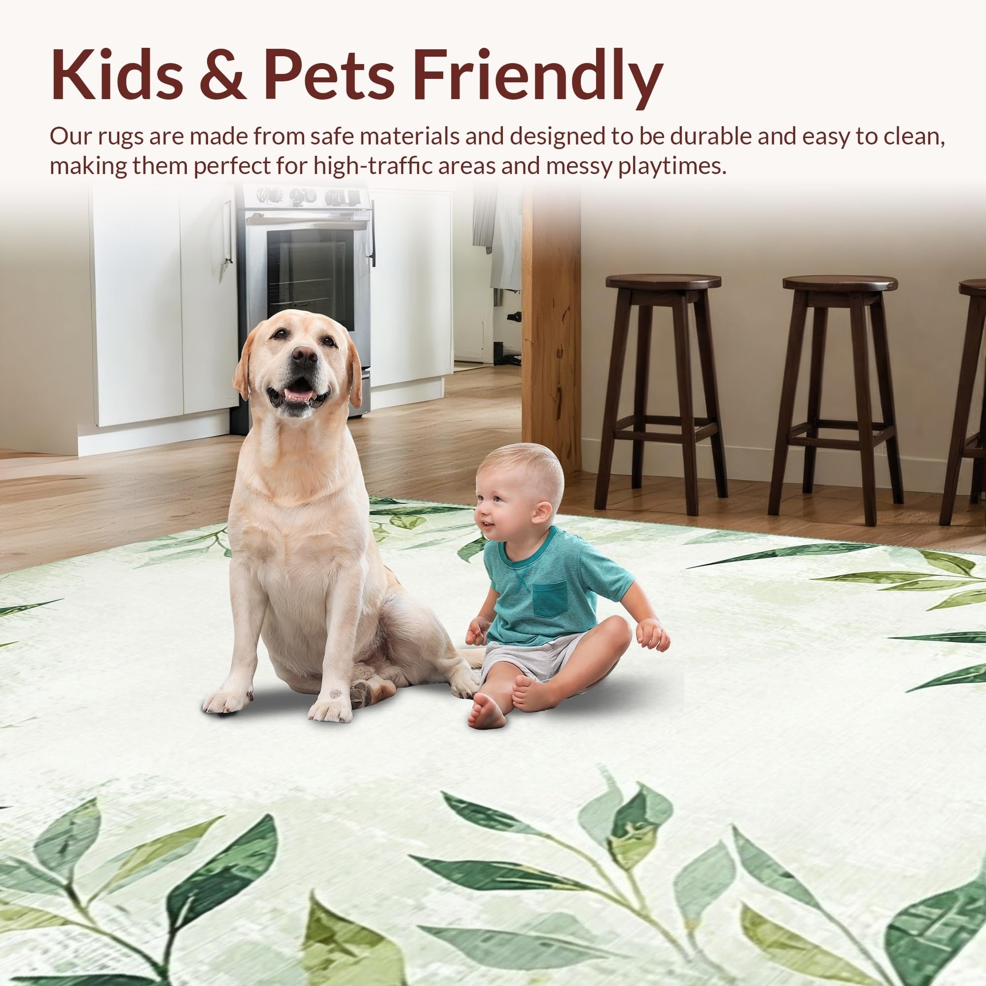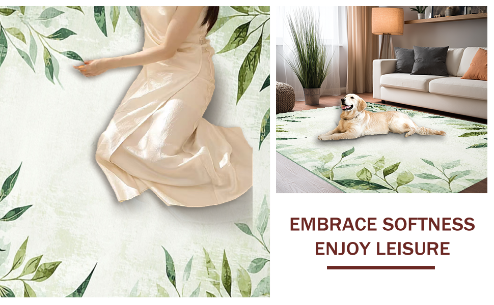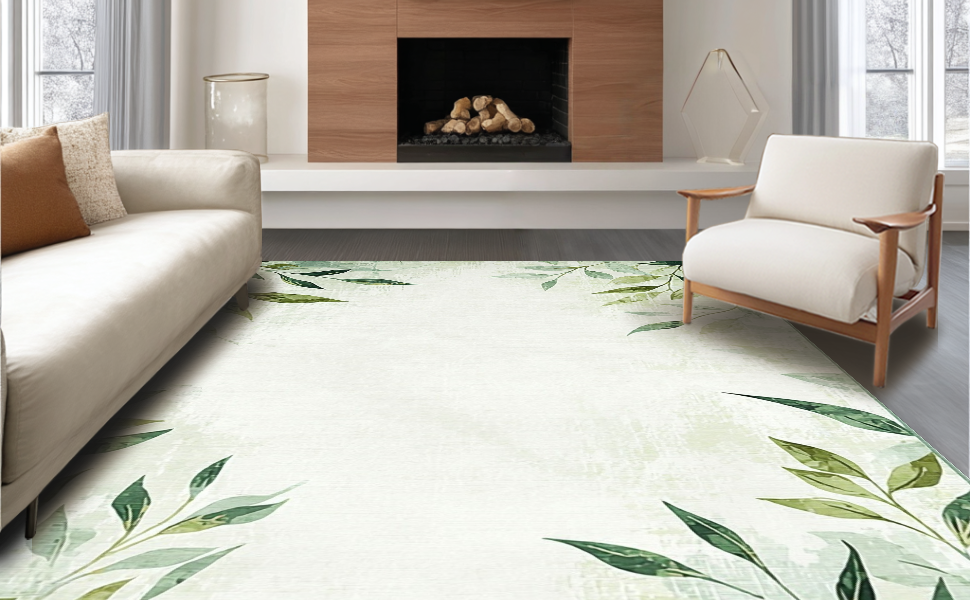 Ultra Soft Area Rug, Non Slip, Stain Resistant, Washable Area Rugs for Living Room, Bedroom, Lush Organic Geometric Artwork(Green) Overview: