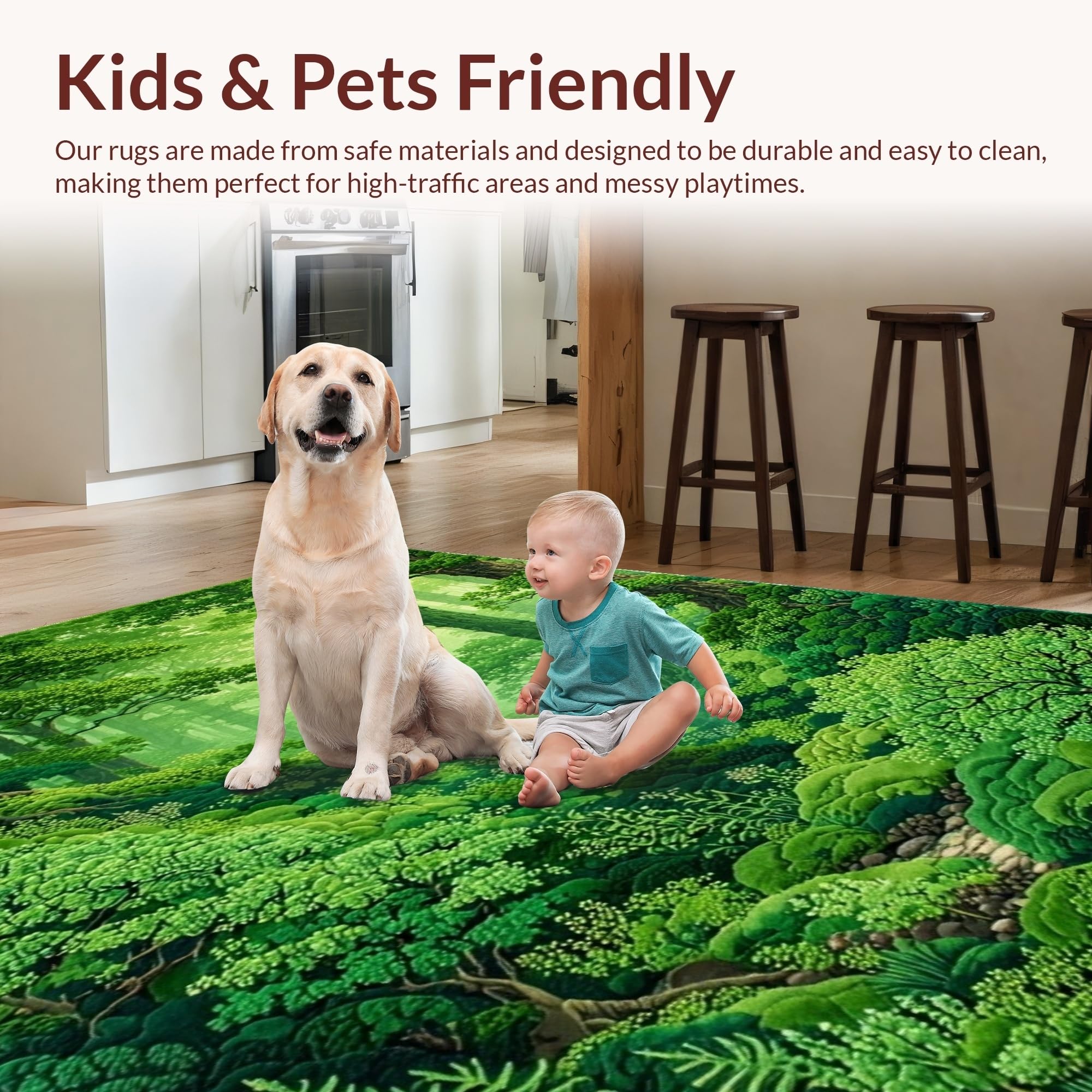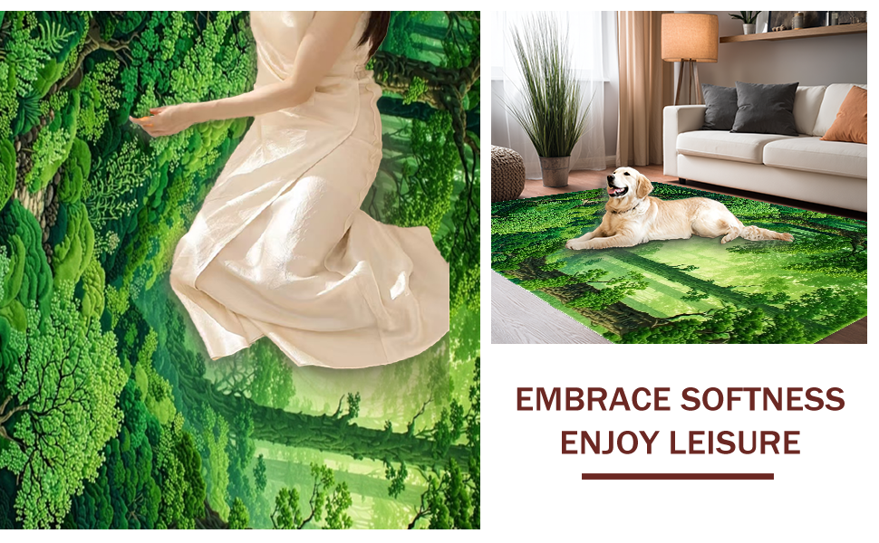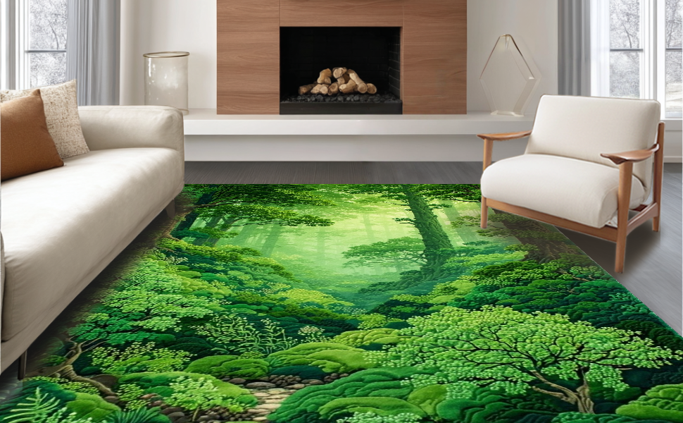 Ultra Soft Area Rug, Non Slip, Stain Resistant, Washable Area Rugs for Living Room, Bedroom, Lush Organic Moss Texture(Green) Overview:
