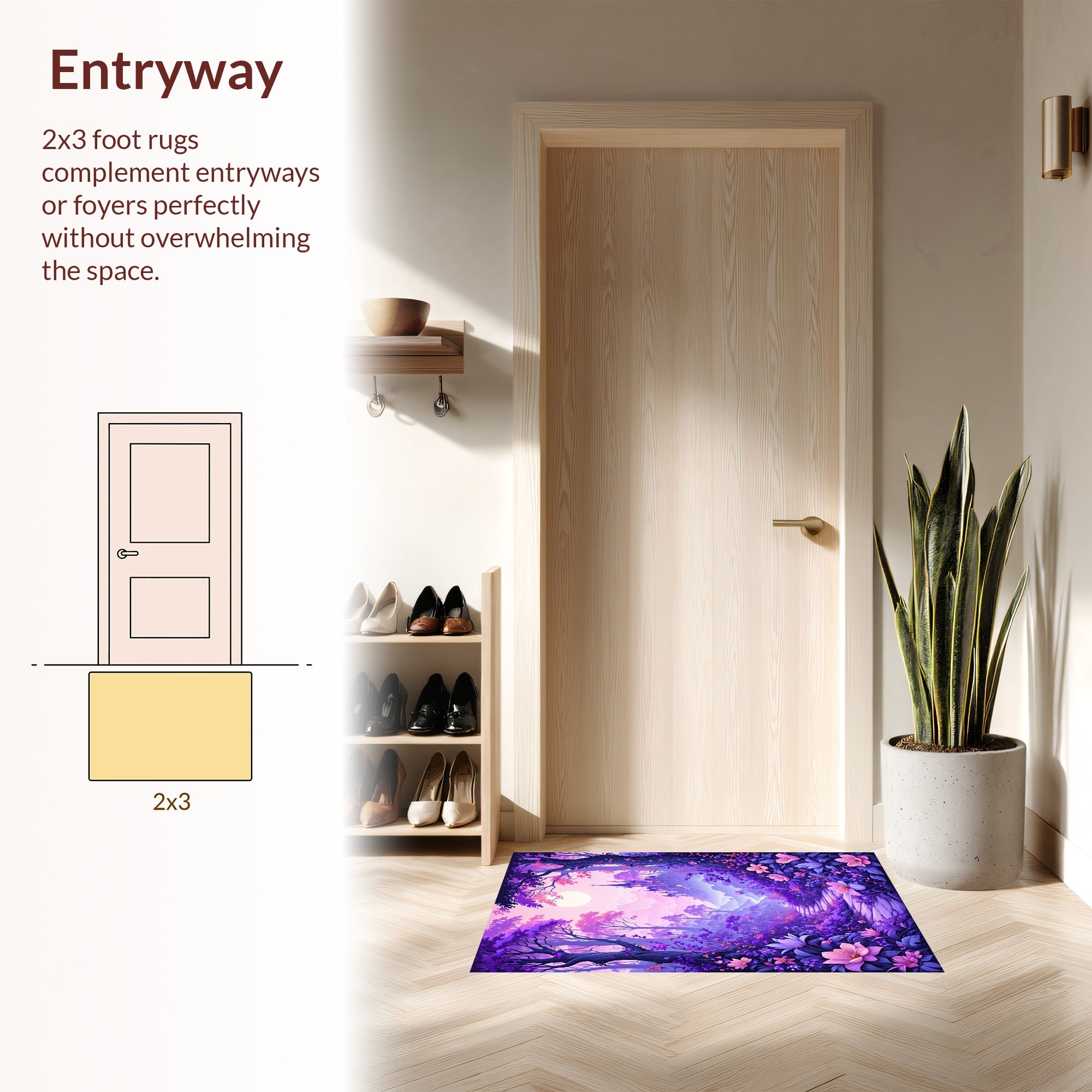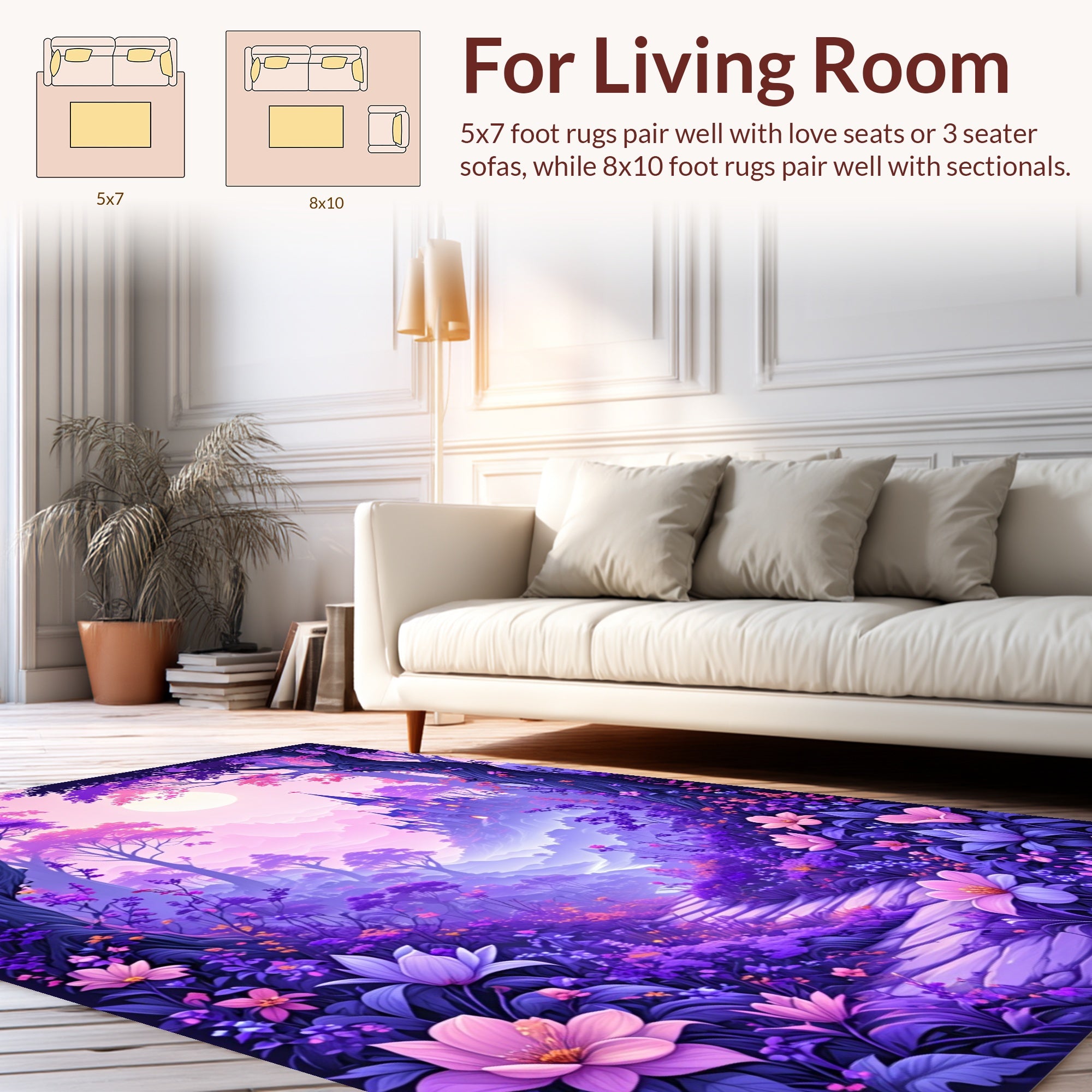 Flatwoven High Traffic Area Rug, Lush Peony Blossom Arrangement, Non Slip, Stain Resistant, Washable Area Rugs for Living Room, Bedroom (Purple) Overview: