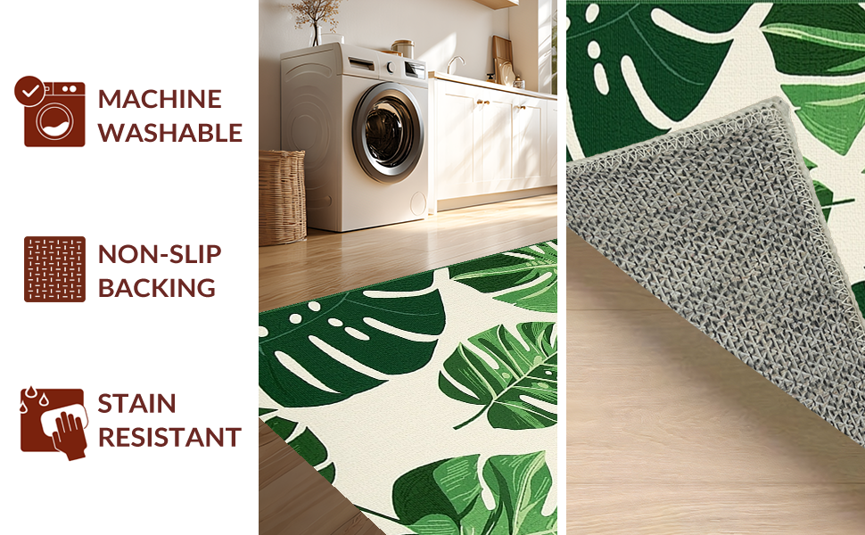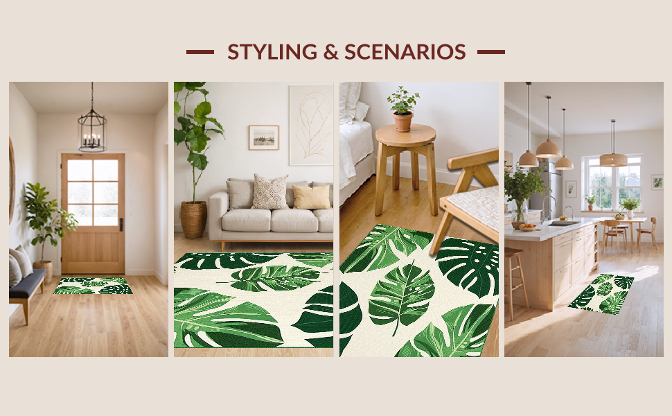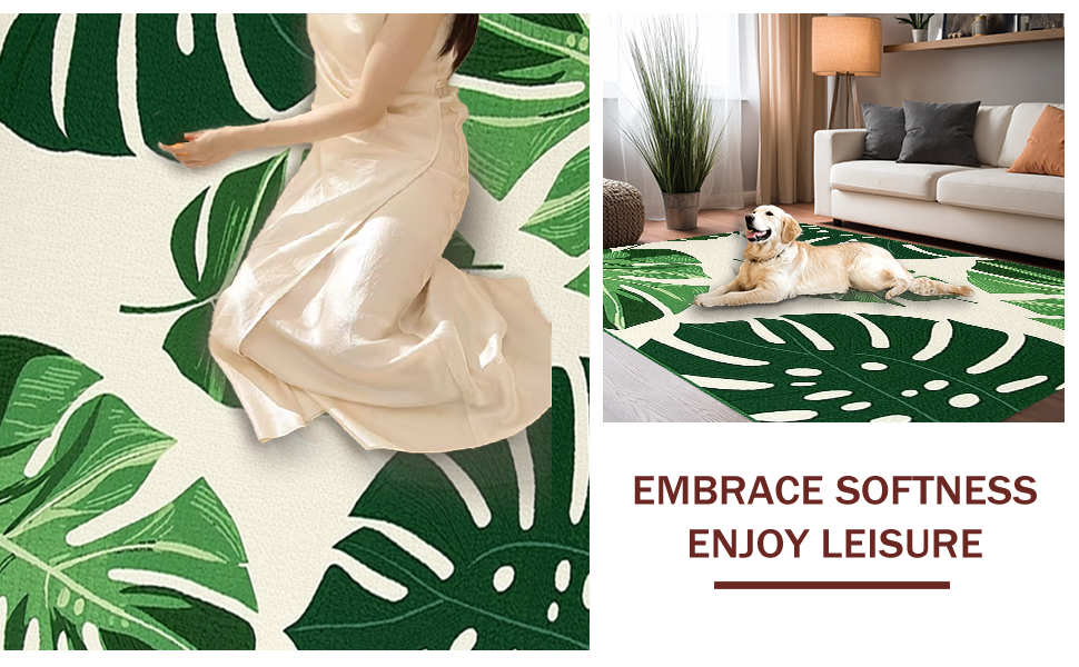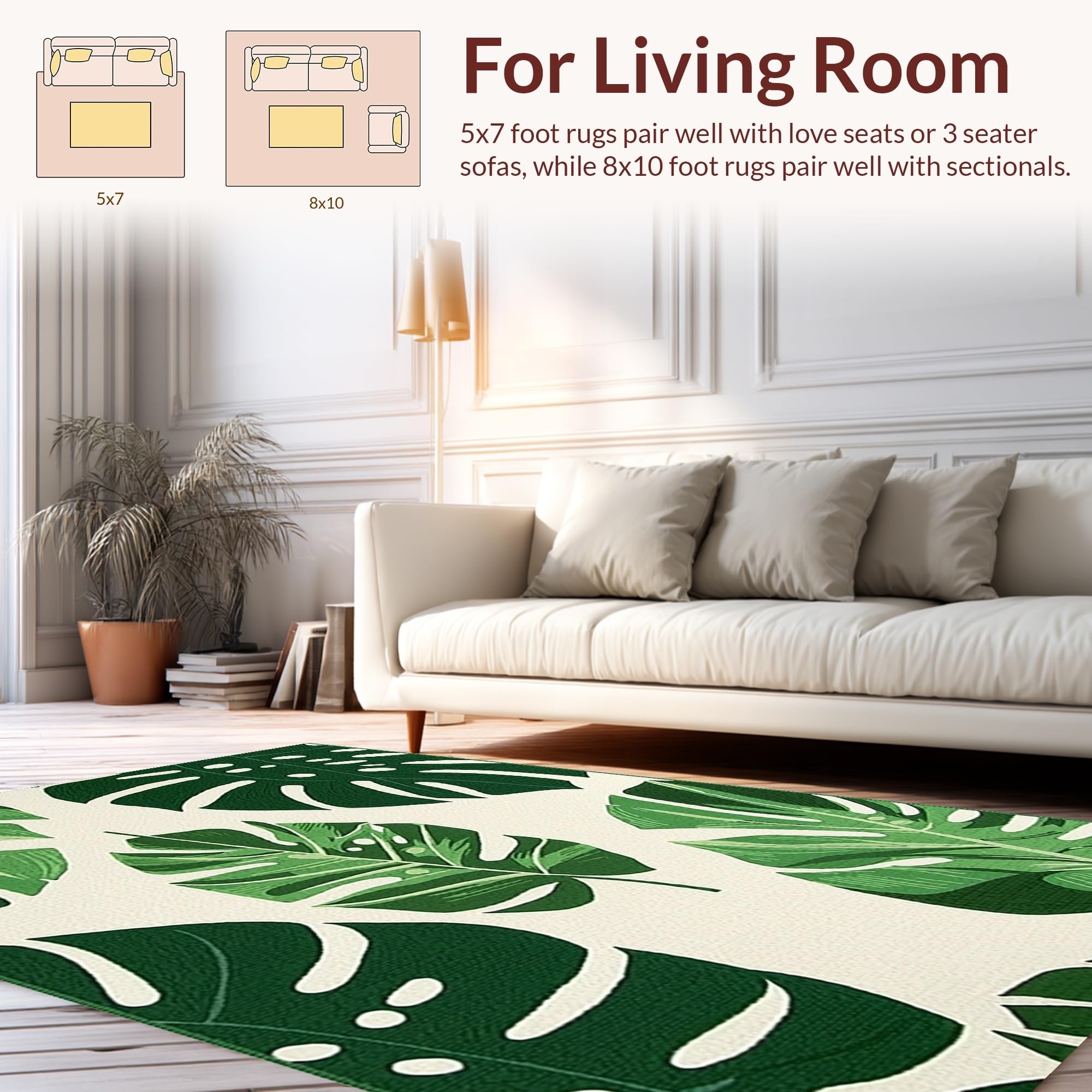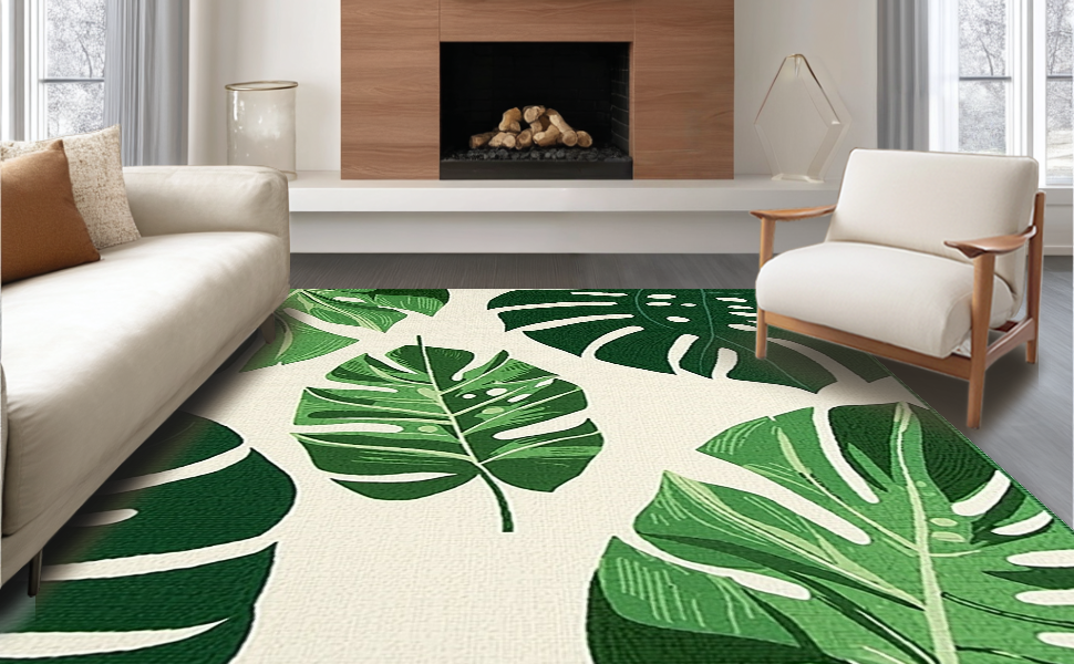 Ultra Soft Area Rug, Non Slip, Stain Resistant, Washable Area Rugs for Living Room, Bedroom, Lush Plant Print Elegance(Green) Overview: