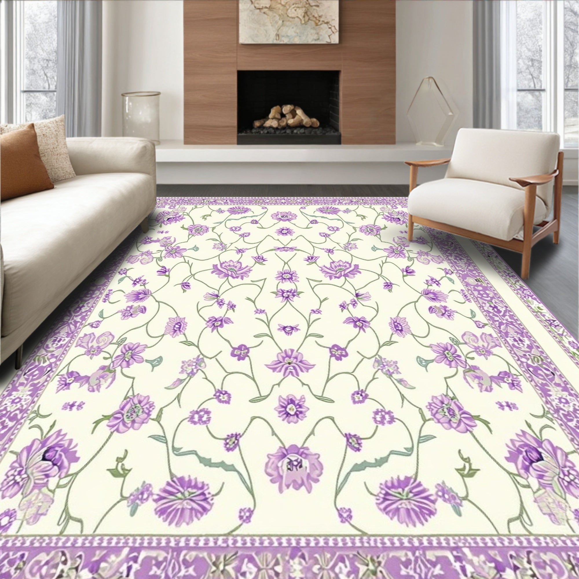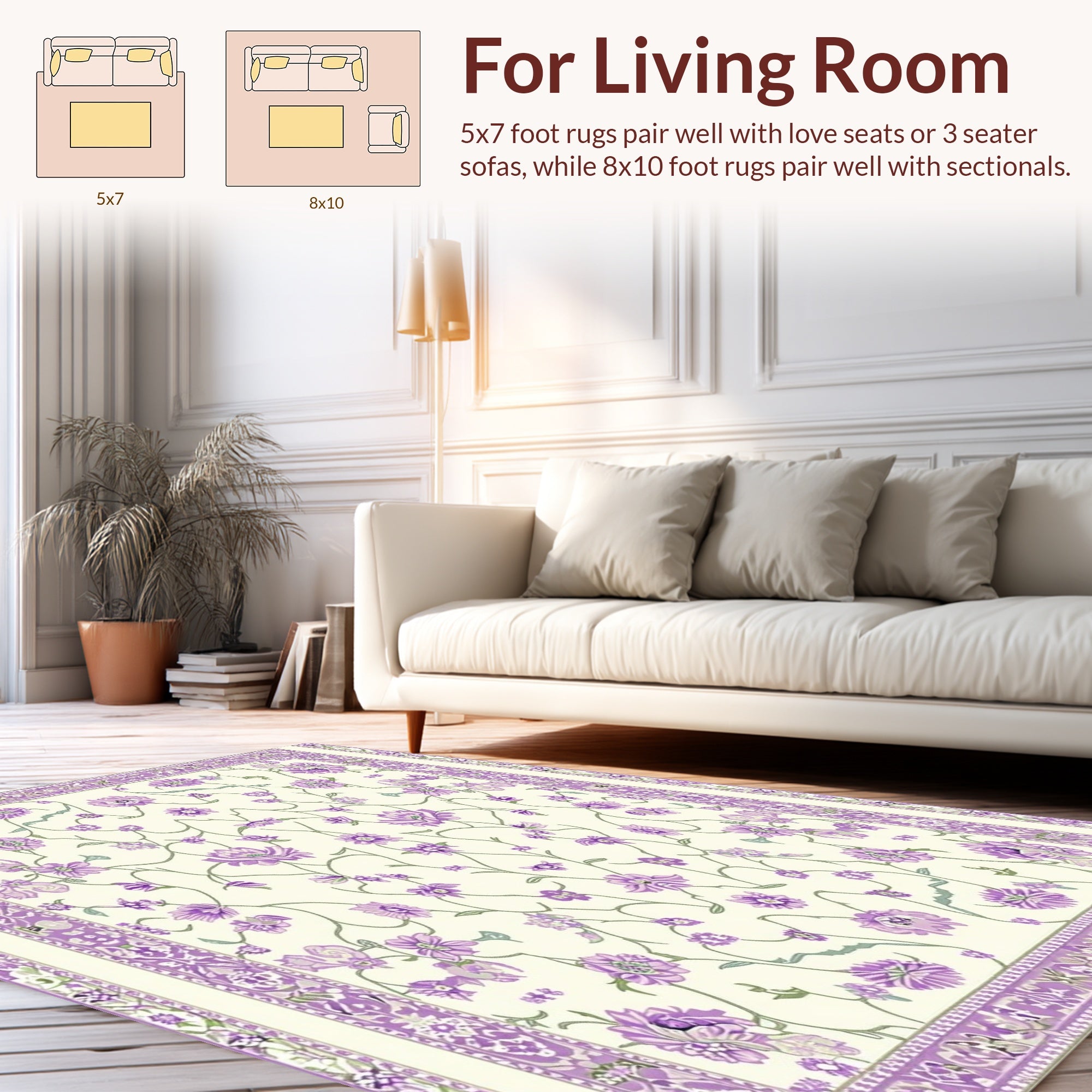 Flatwoven High Traffic Area Rug, Lush Springtime Blossom Appeal, Non Slip, Stain Resistant, Washable Area Rugs for Living Room, Bedroom (White) Overview: