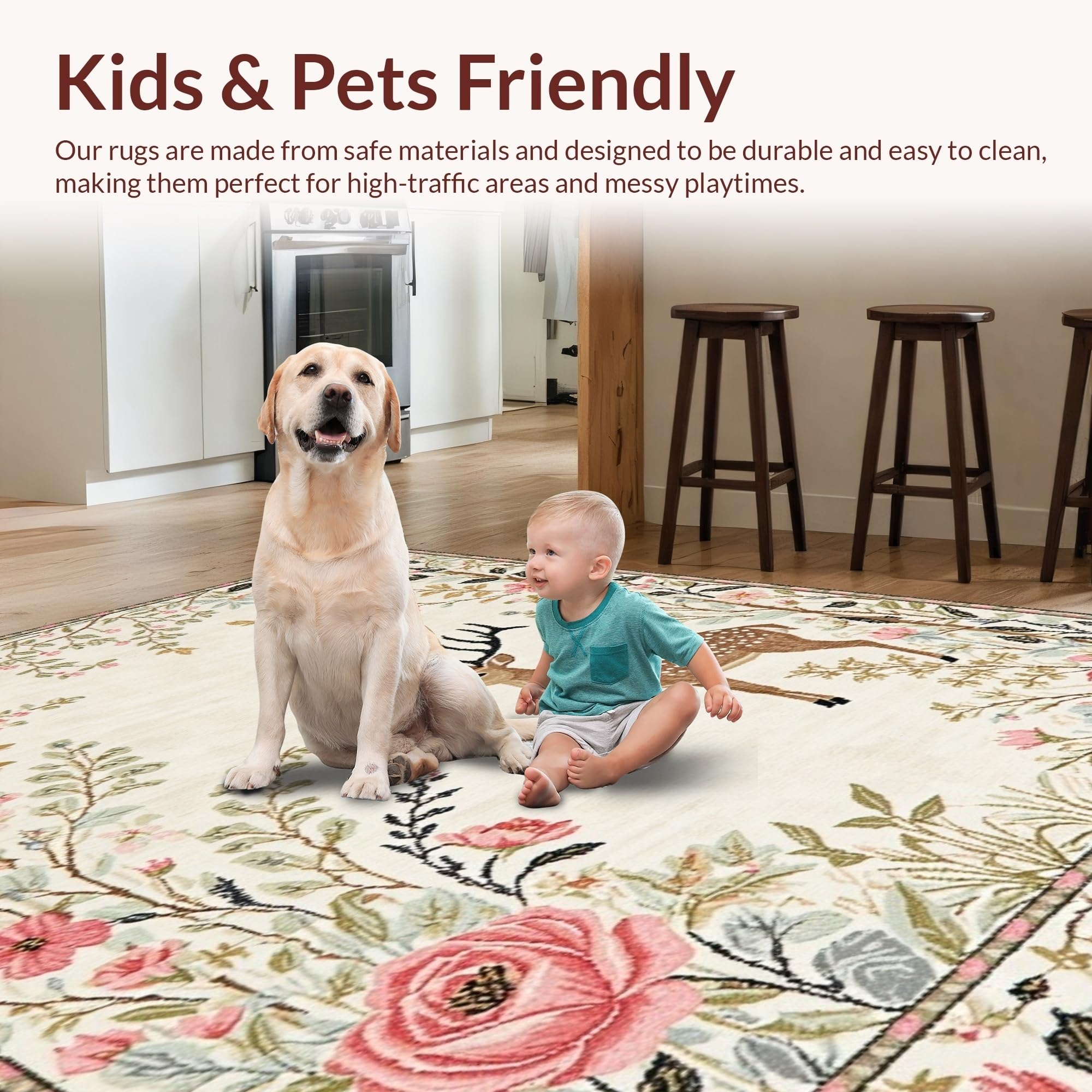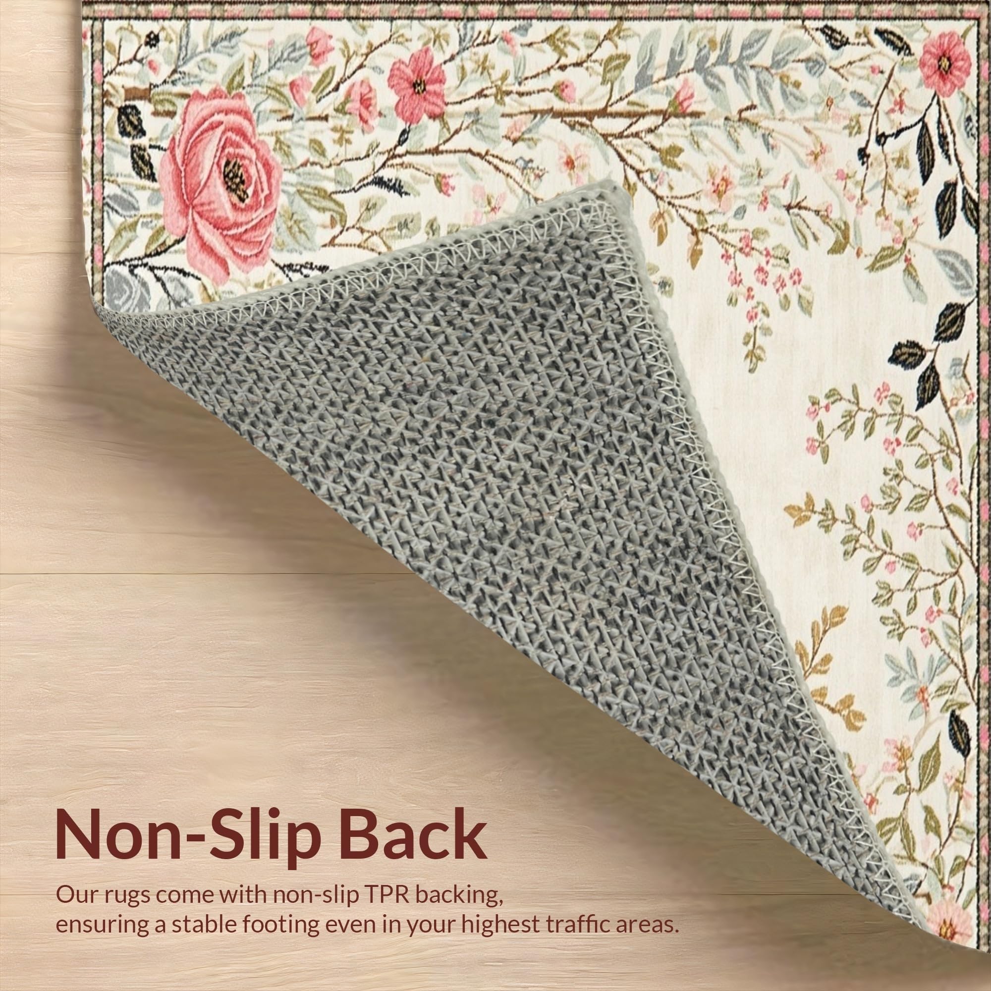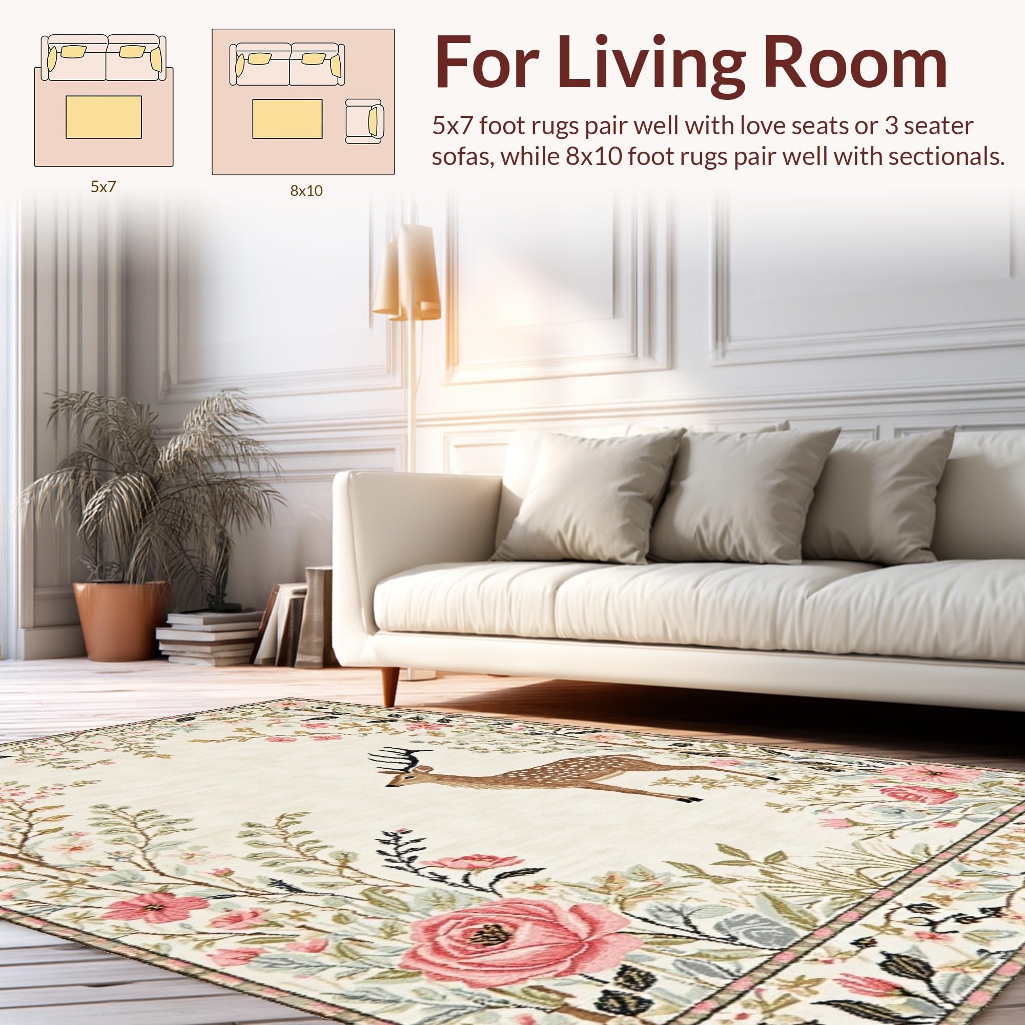 Ultra Soft Area Rug, Non Slip, Stain Resistant, Washable Area Rugs for Living Room, Bedroom, Lush Springtime Floral Aesthetic(Beige) Overview: