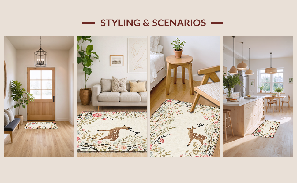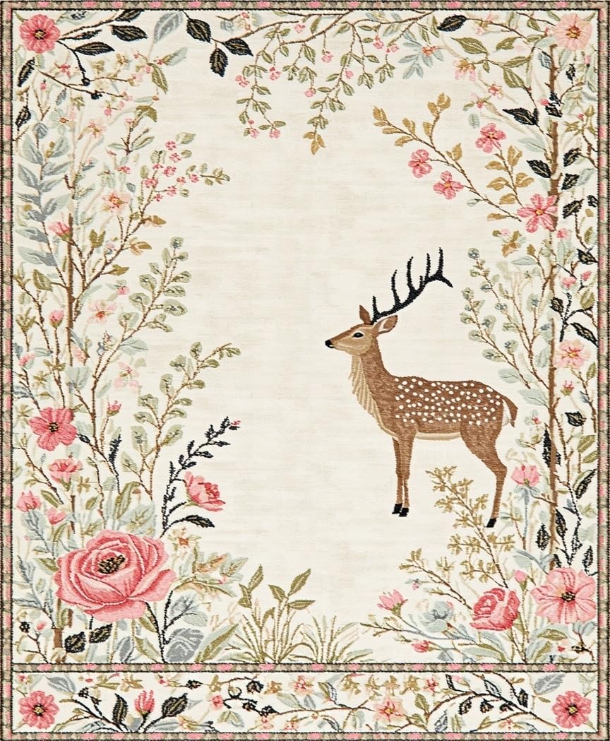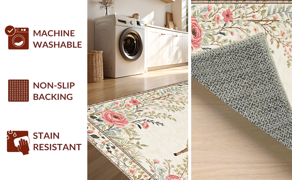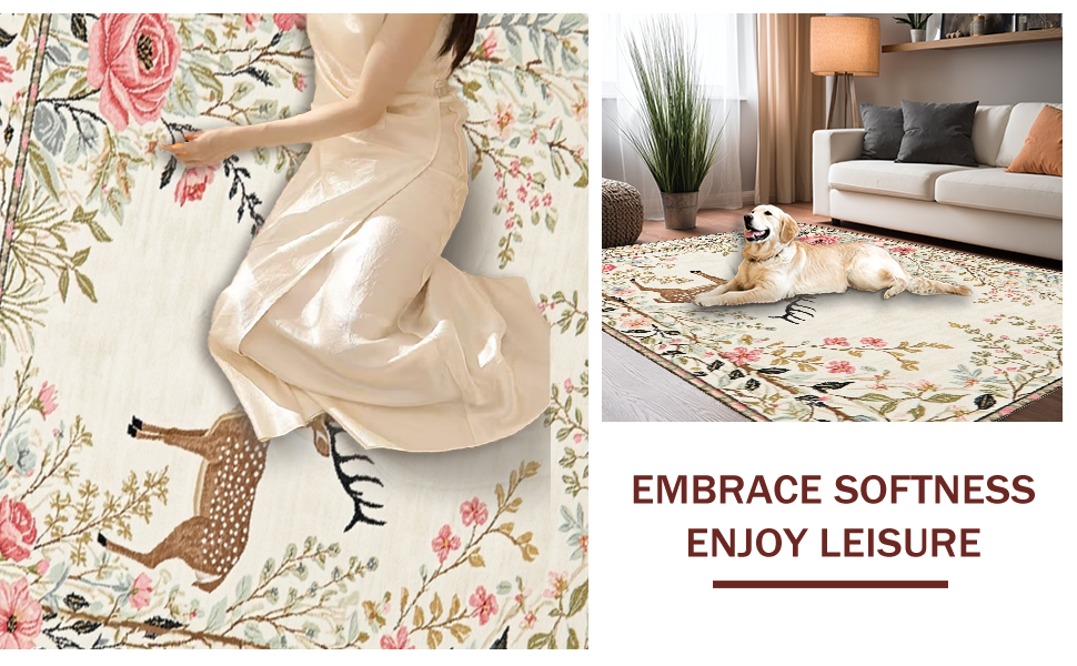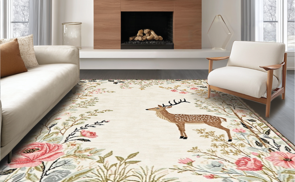 Ultra Soft Area Rug, Non Slip, Stain Resistant, Washable Area Rugs for Living Room, Bedroom, Lush Springtime Floral Aesthetic(Beige) Overview: