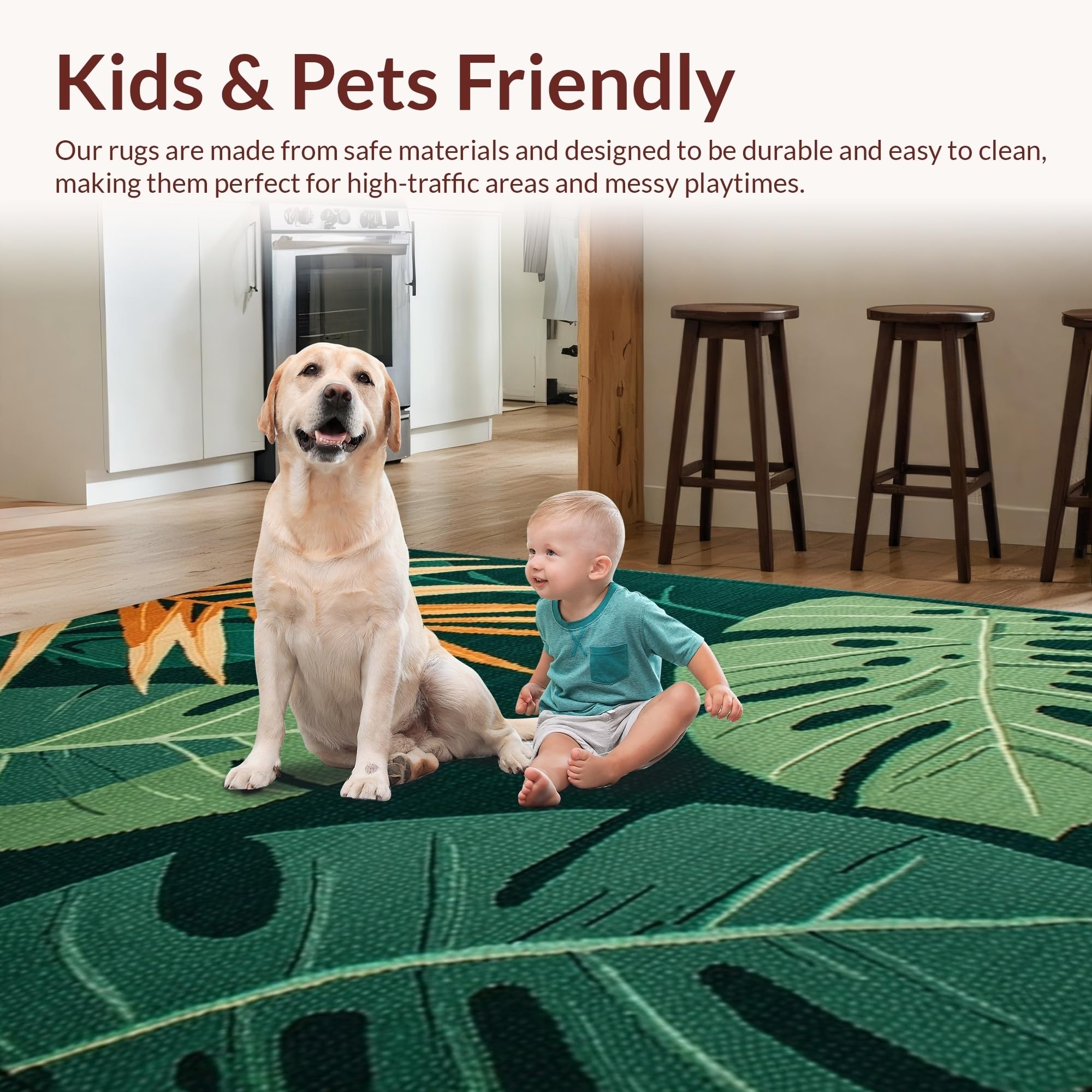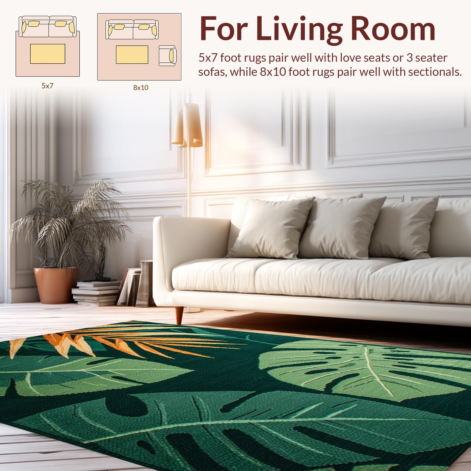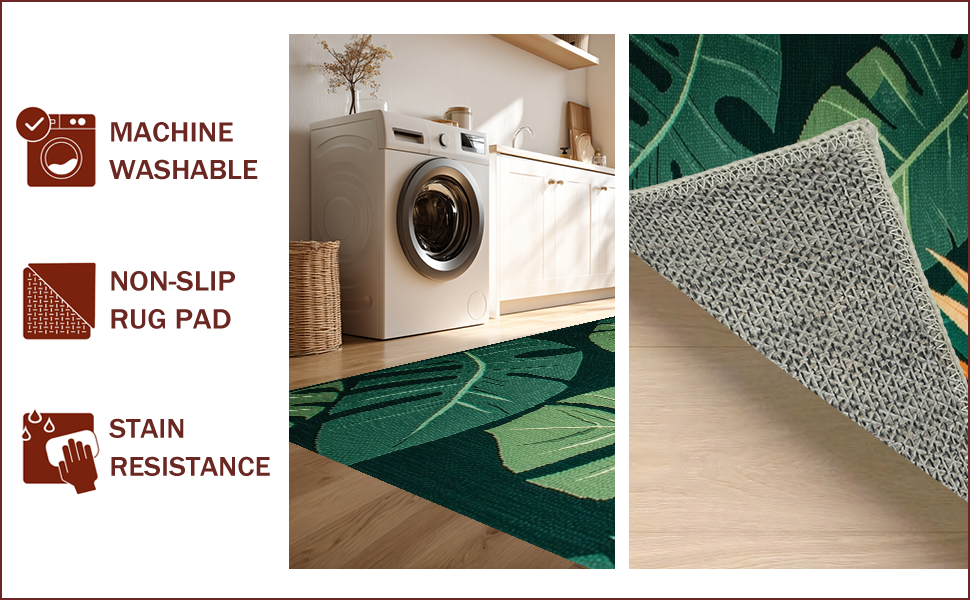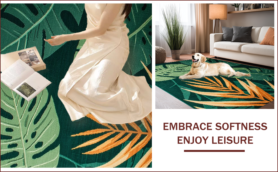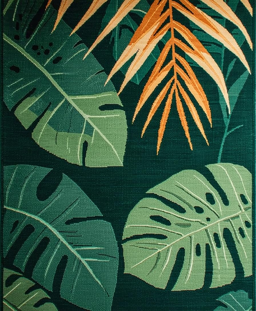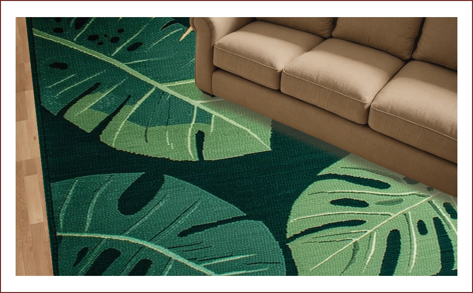 Ultra Soft Area Rug, Non Slip, Stain Resistant, Washable Area Rugs for Living Room, Bedroom, Lush Tropical Botanical Aesthetic(Green) Overview: