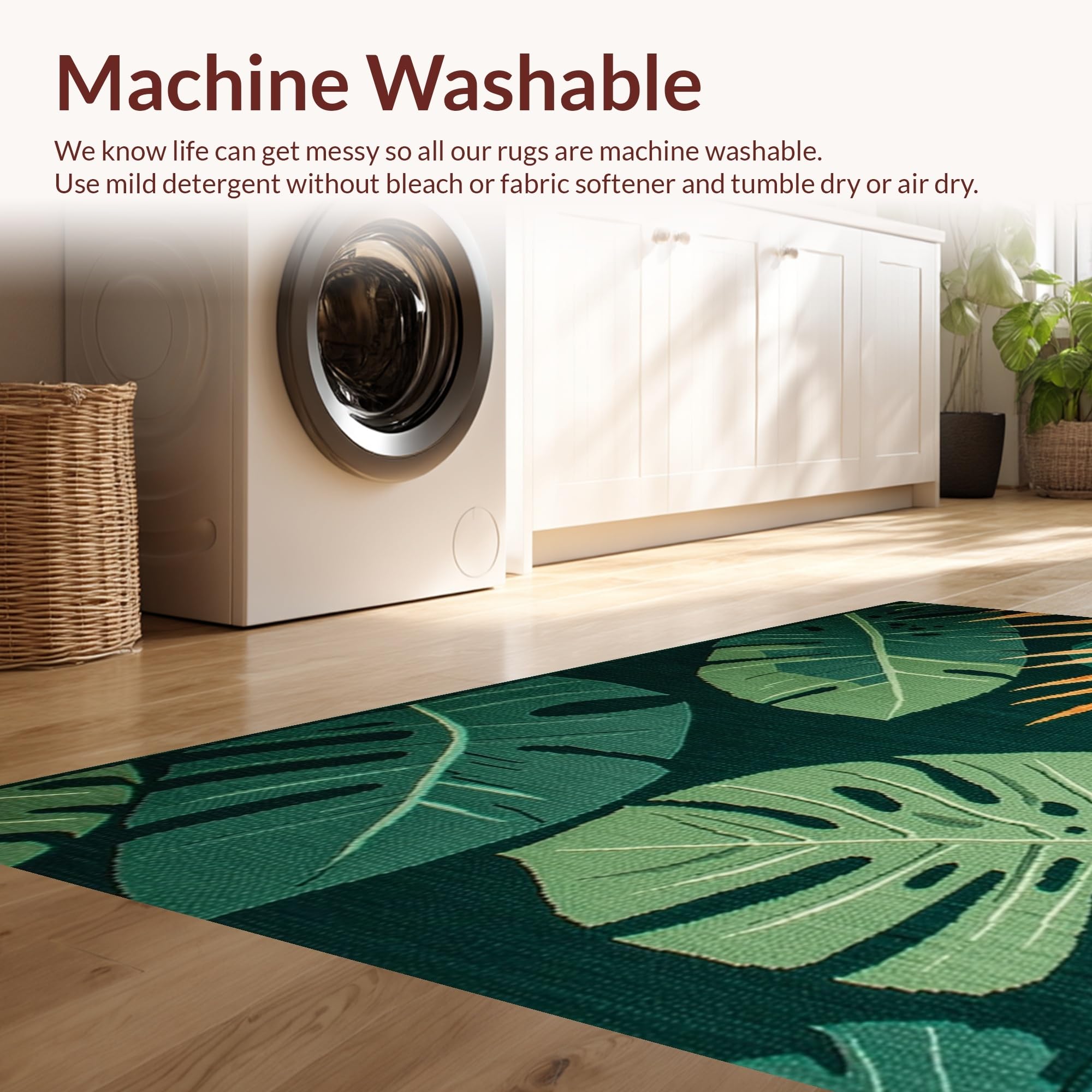 - Machine Washable: Our rugs can be easily thrown in the wash machine.