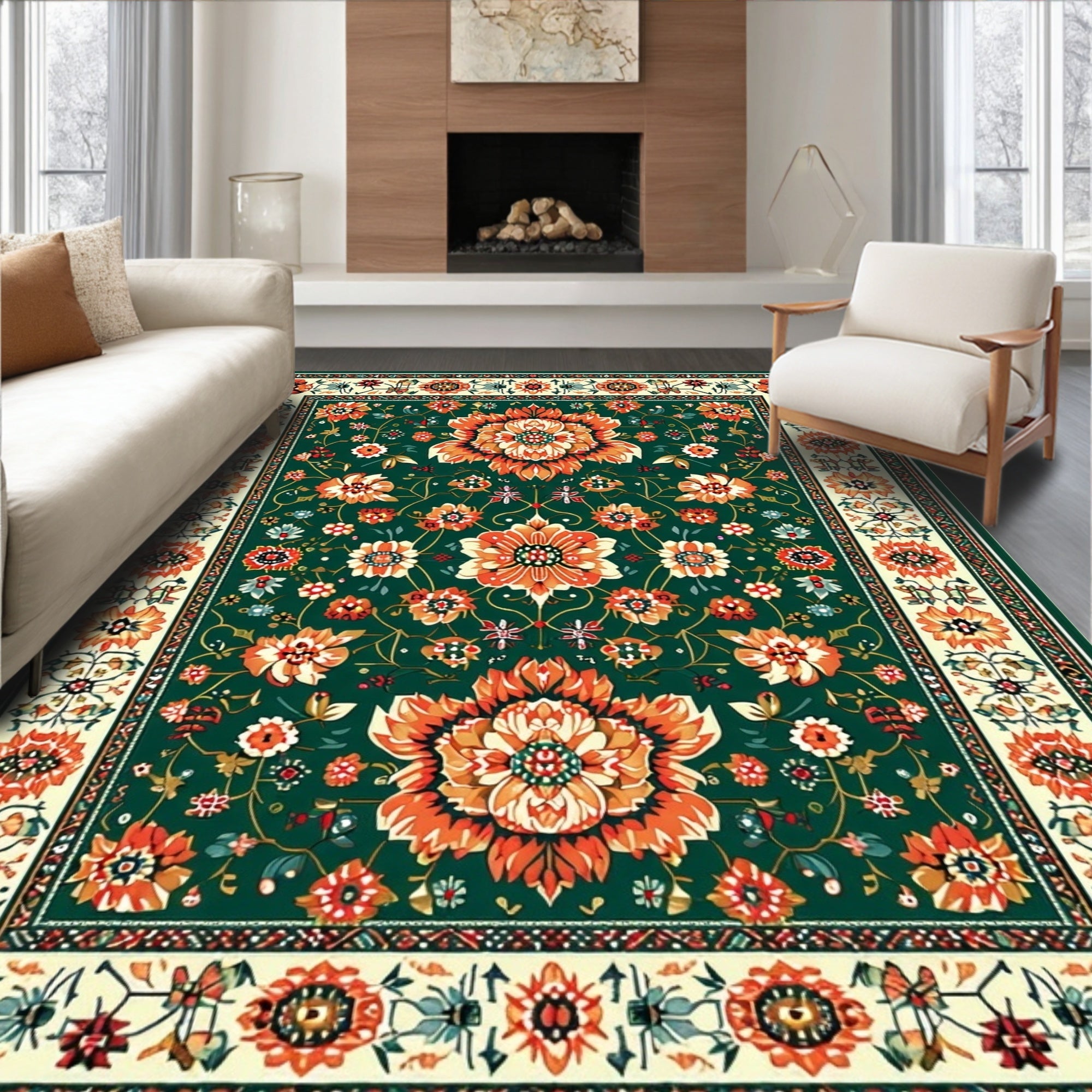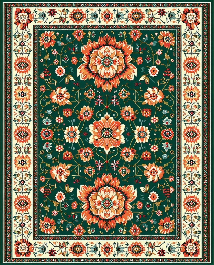 Flatwoven High Traffic Area Rug, Lush Tropical Floral Arrangement, Non Slip, Stain Resistant, Washable Area Rugs for Living Room, Bedroom (Green) Overview: