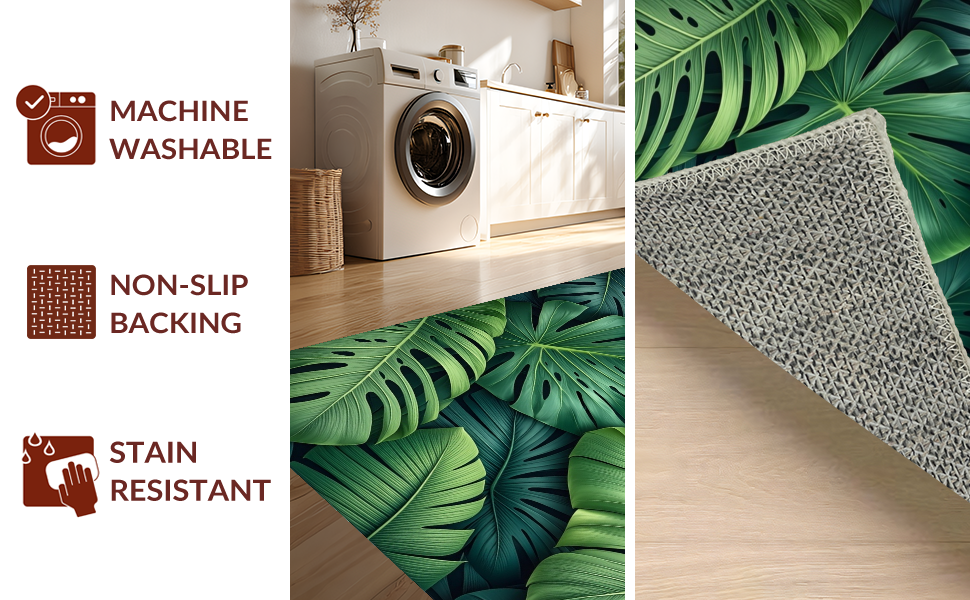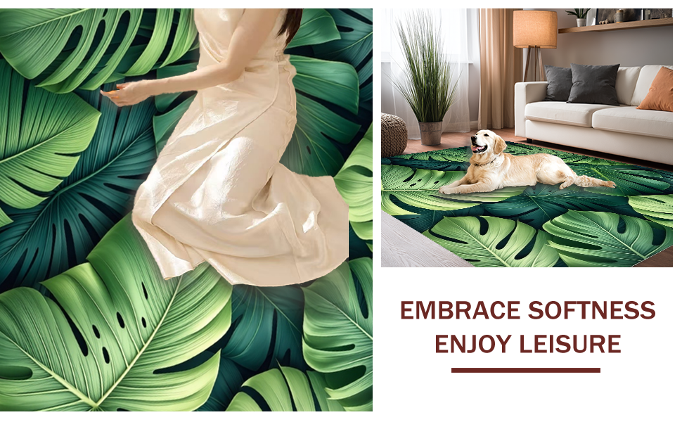 Ultra Soft Area Rug, Non Slip, Stain Resistant, Washable Area Rugs for Living Room, Bedroom, Lush Tropical Leaf Aesthetic(Green) Overview: