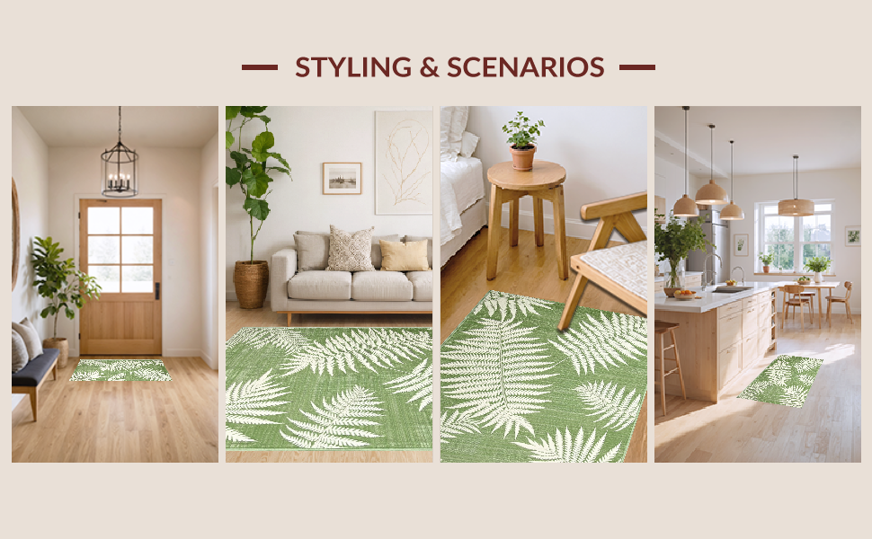 Ultra Soft Area Rug, Non Slip, Stain Resistant, Washable Area Rugs for Living Room, Bedroom, Lush Vibrant Trellis Style Accents(Green) Overview:
