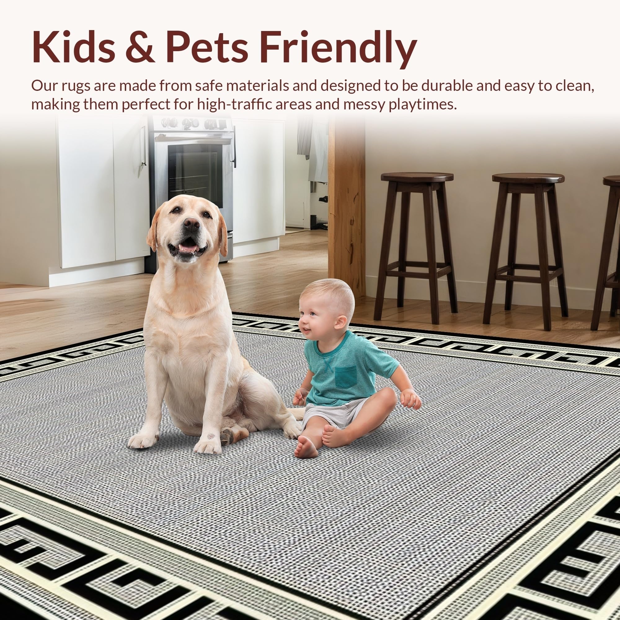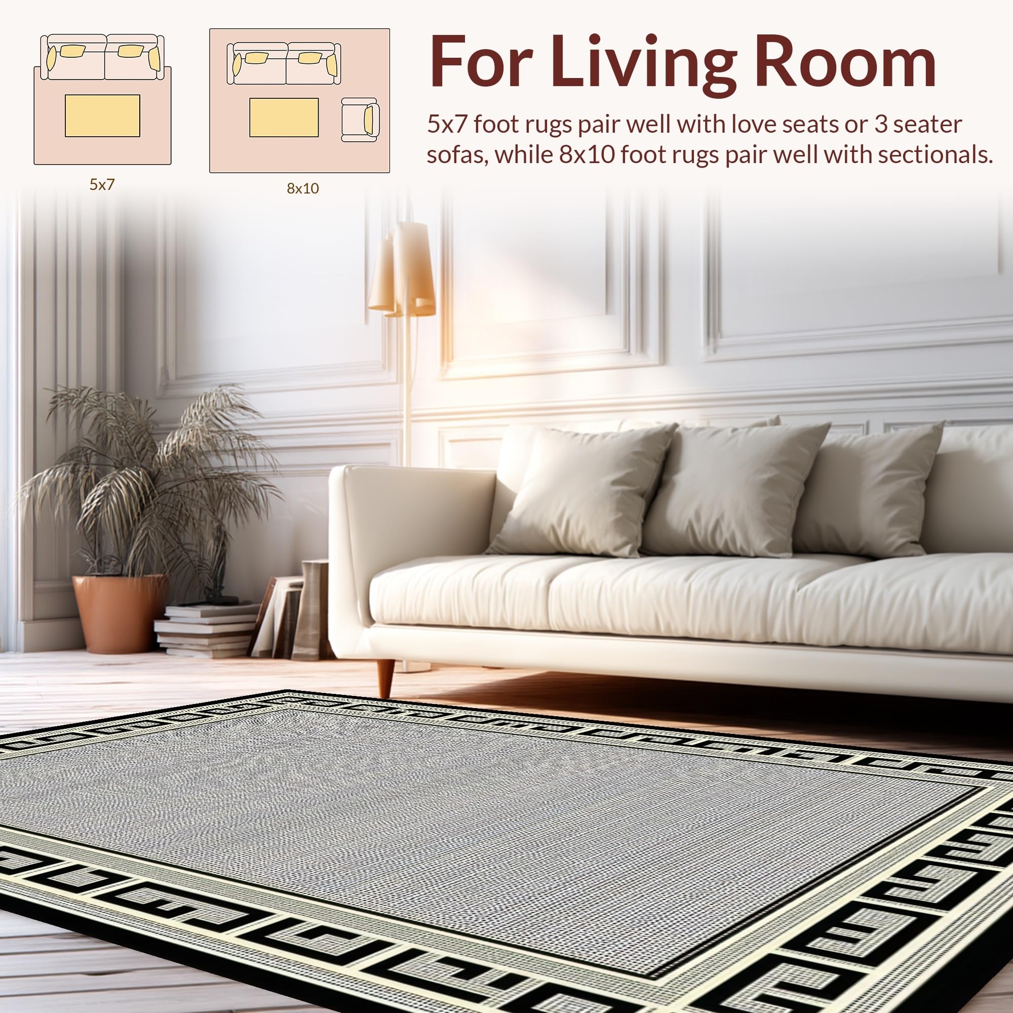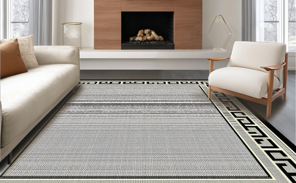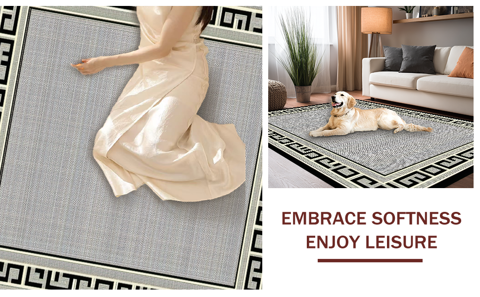 Ultra Soft Area Rug, Non Slip, Stain Resistant, Washable Area Rugs for Living Room, Bedroom, Luxe Abstract Symmetrical Arrangement(Gray) Overview: