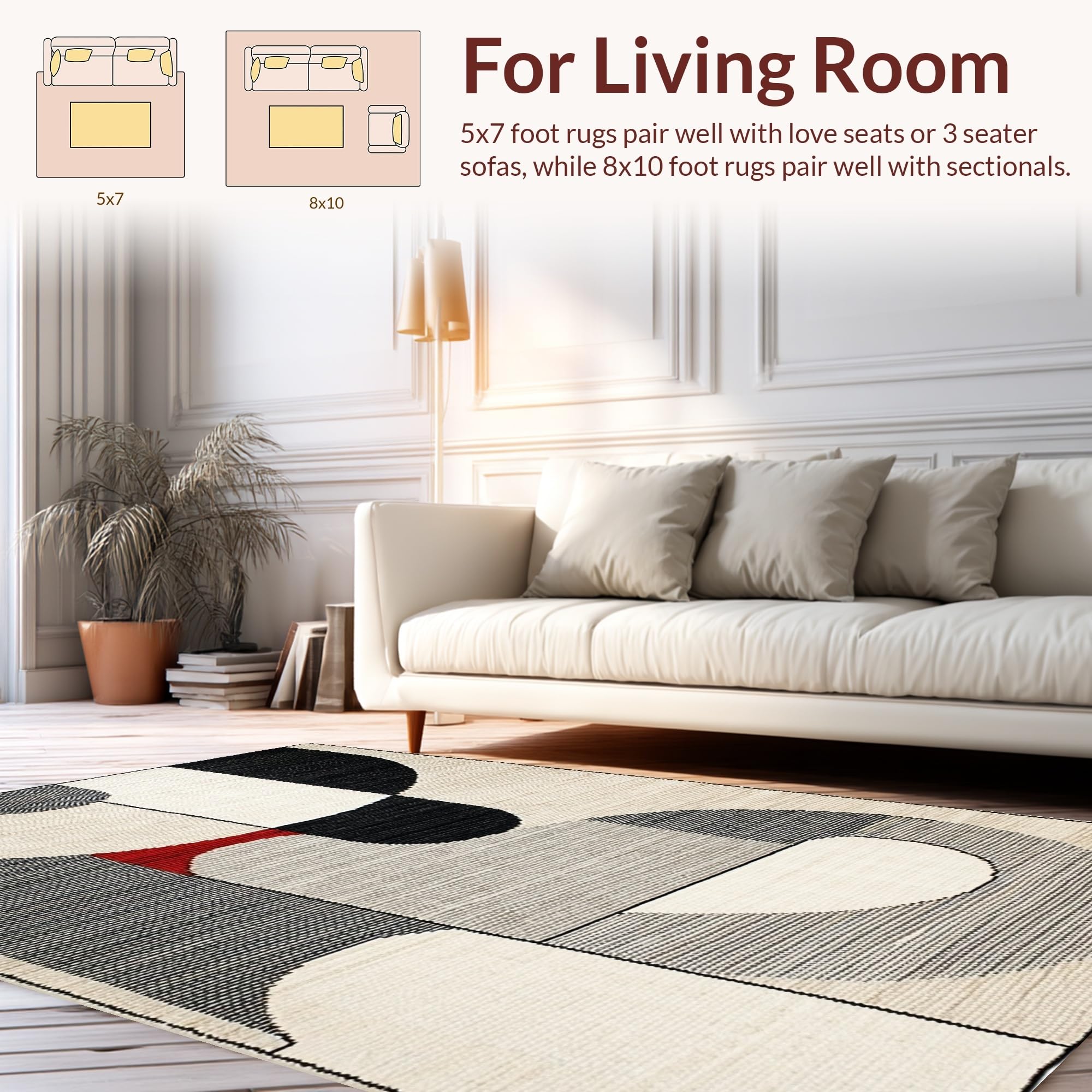Ultra Soft Area Rug, Non Slip, Stain Resistant, Washable Area Rugs for Living Room, Bedroom, Luxe Abstracted Linear Harmony(Beige) Overview: