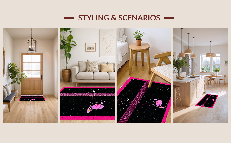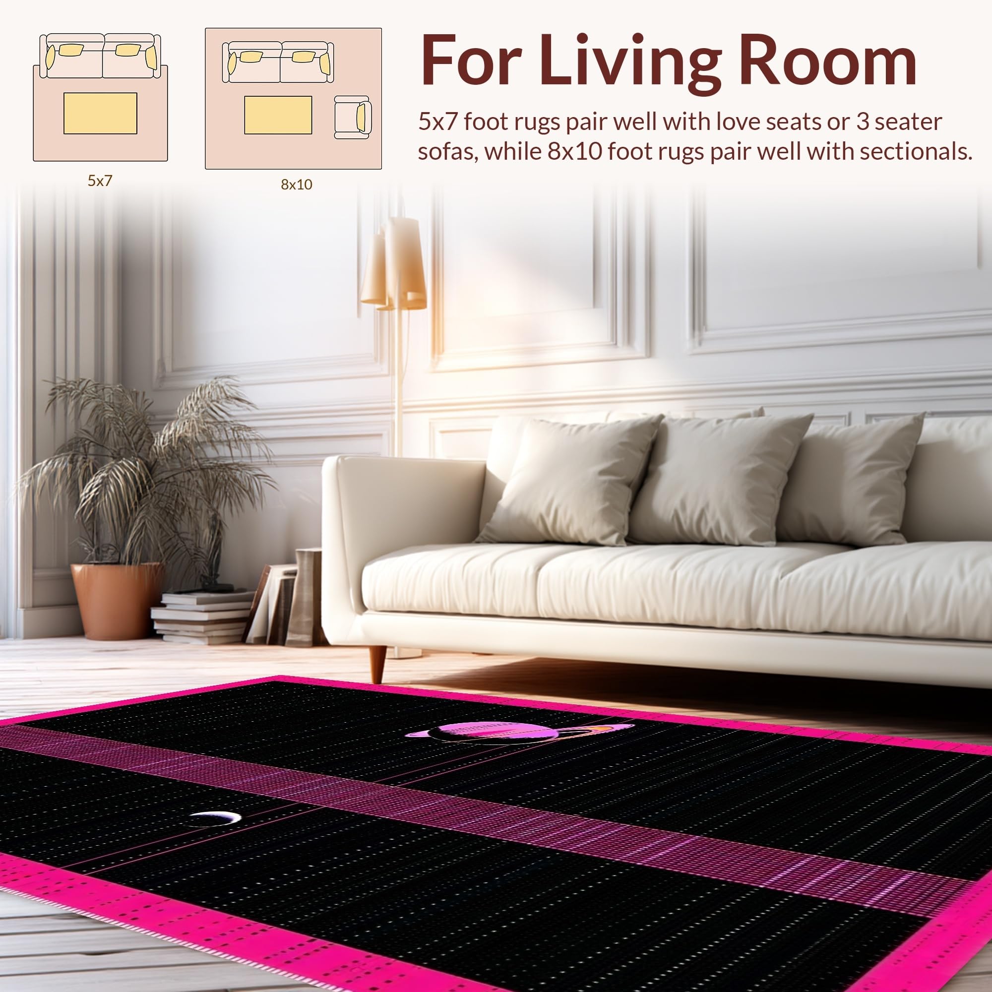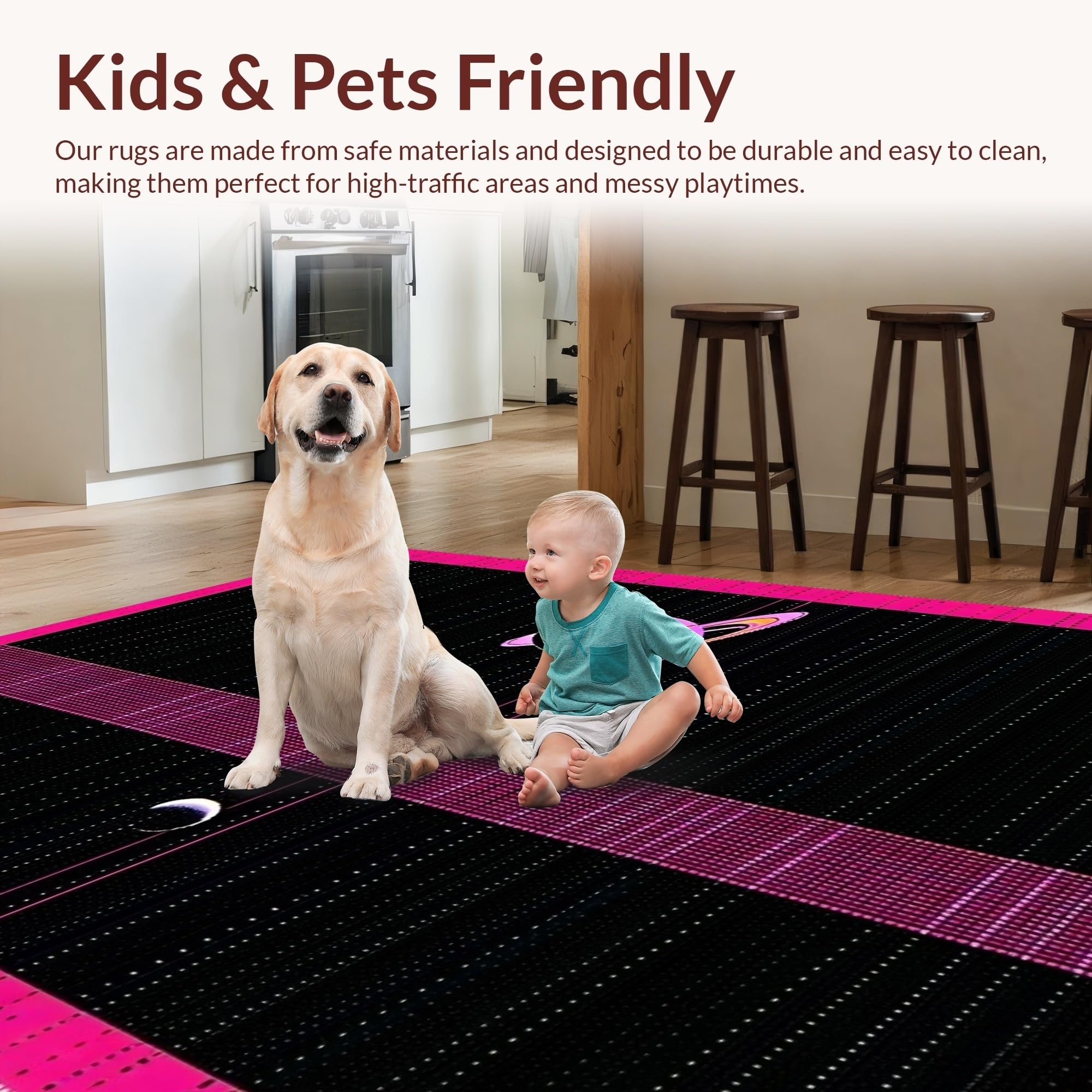 Ultra Soft Area Rug, Non Slip, Stain Resistant, Washable Area Rugs for Living Room, Bedroom, Luxe Artful Space Composition(Pink) Overview: