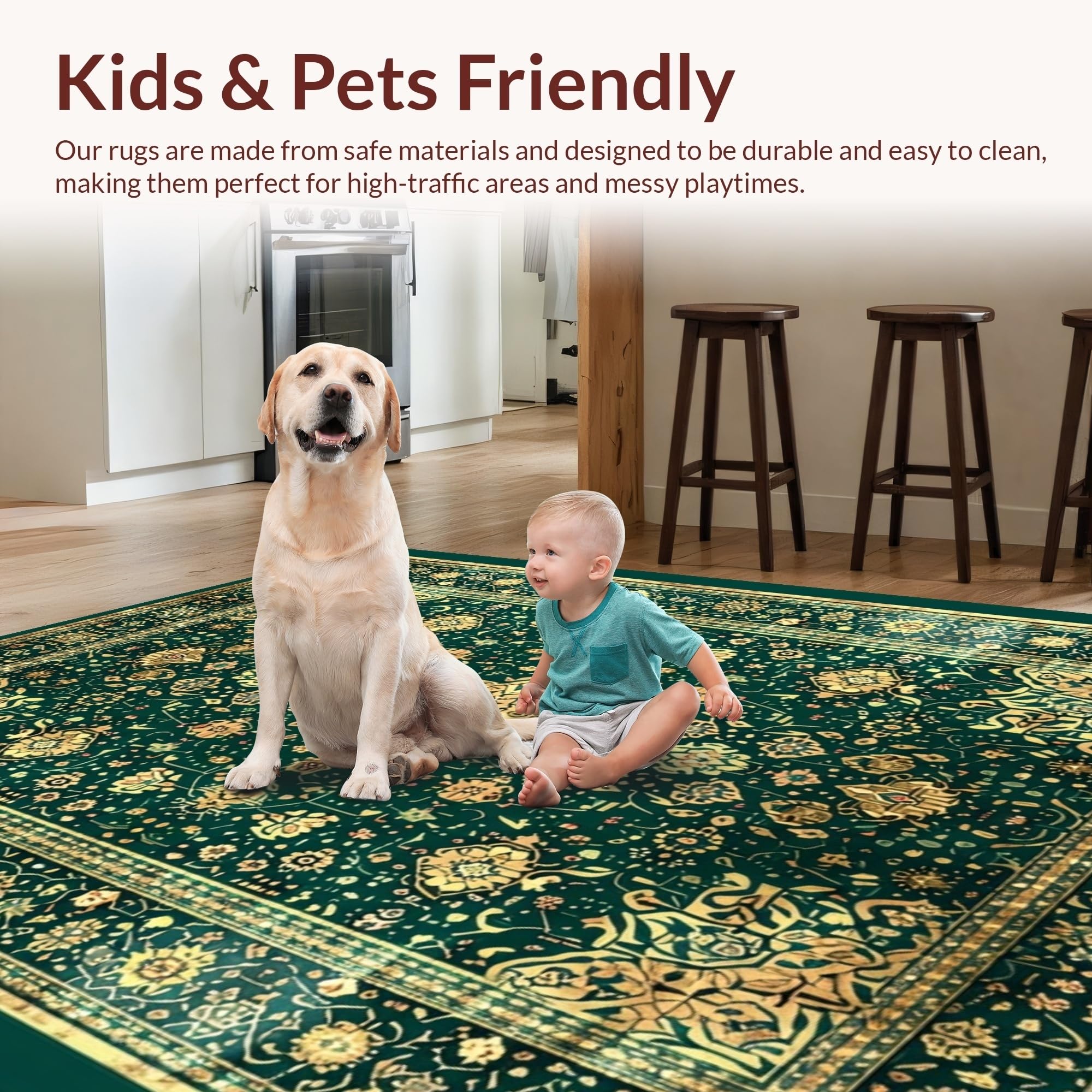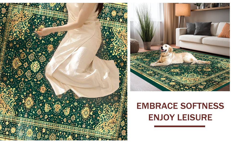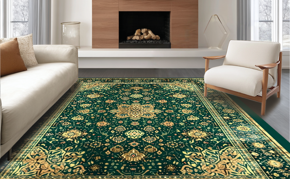 Ultra Soft Area Rug, Non Slip, Stain Resistant, Washable Area Rugs for Living Room, Bedroom, Luxe Distressed Geometric Visual Appeal(Green) Overview: