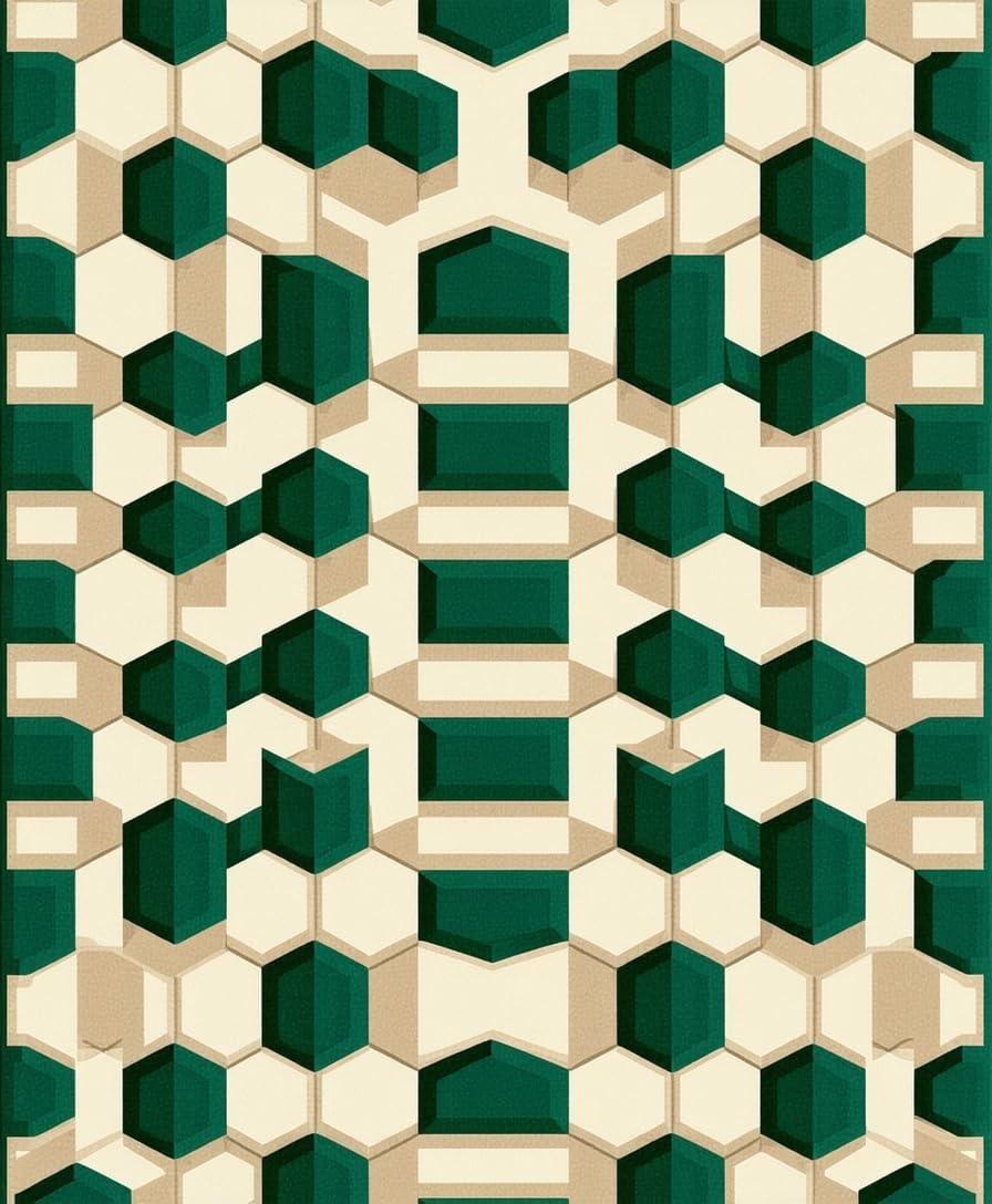 Luxe Geometric Green and Beige Area with Contemporary Flair(Beige)