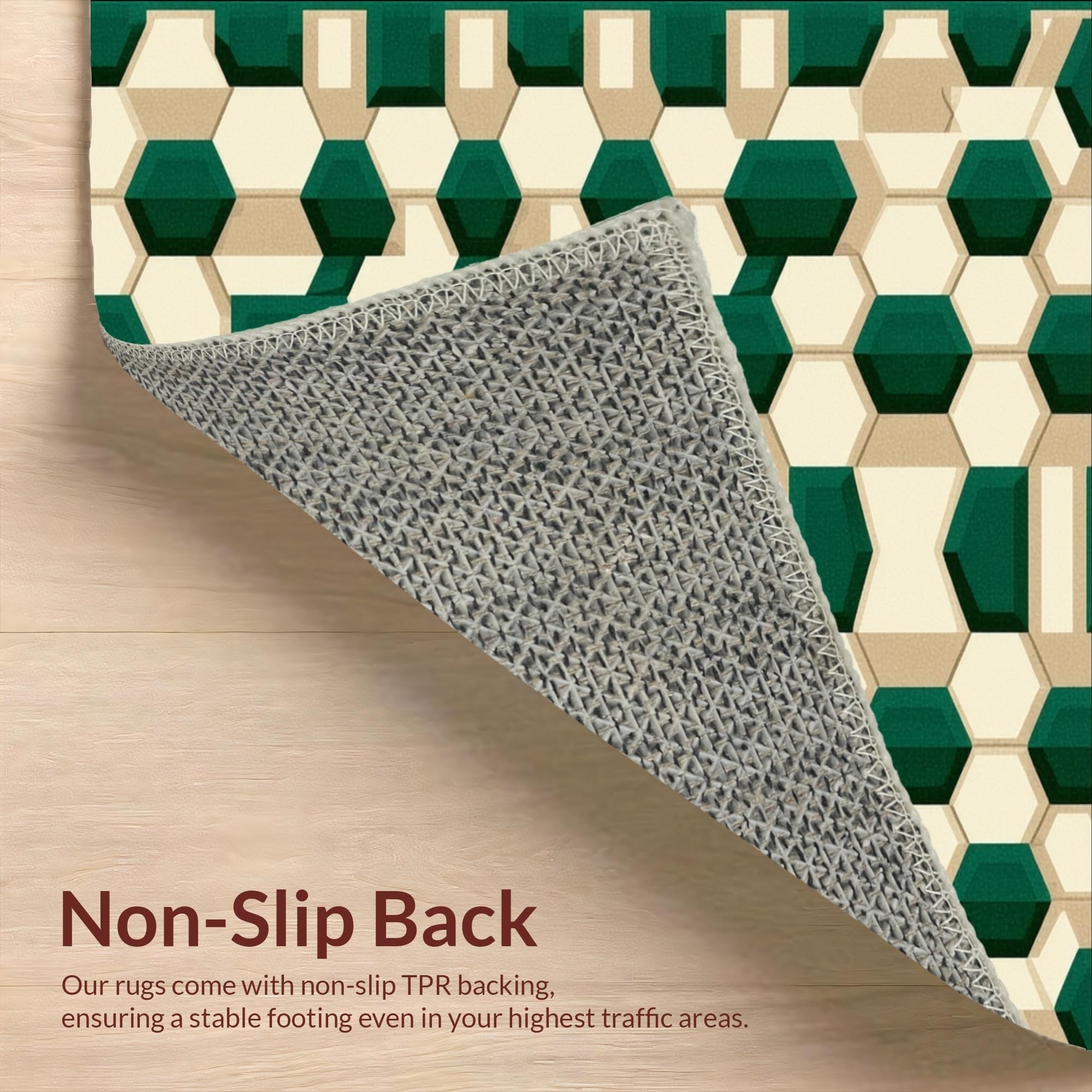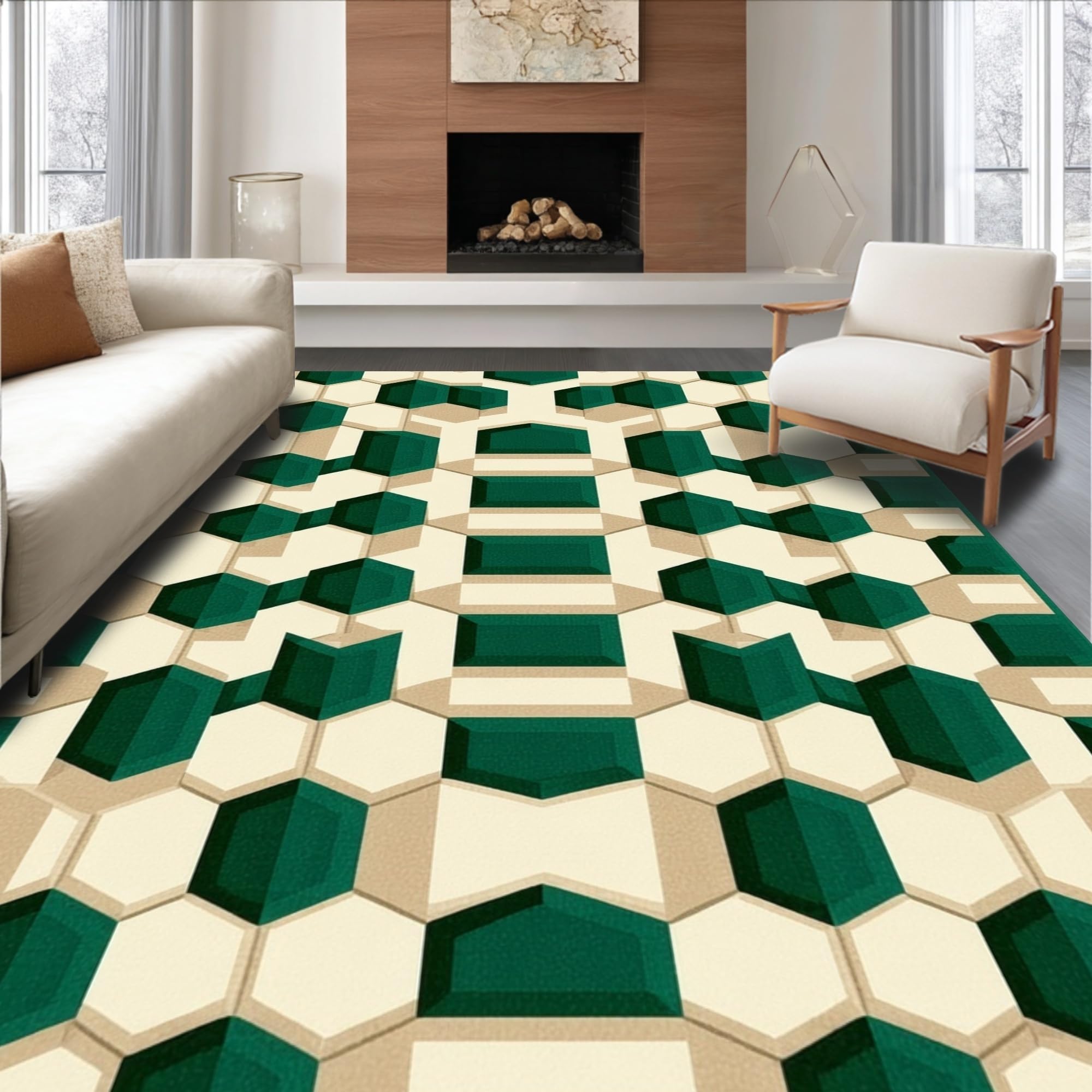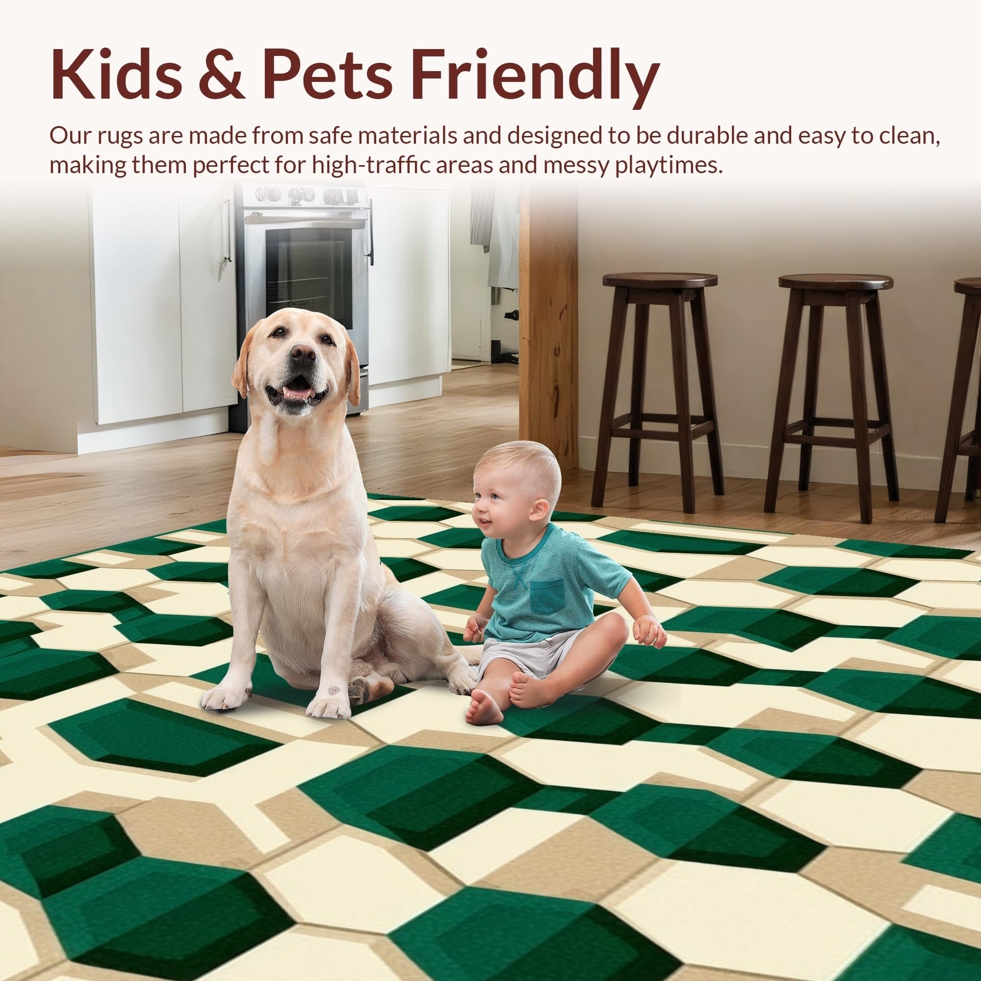 Ultra Soft Area Rug, Non Slip, Stain Resistant, Washable Area Rugs for Living Room, Bedroom, Luxe Geometric Green and Beige Area with Contemporary Flair(Beige) Overview: