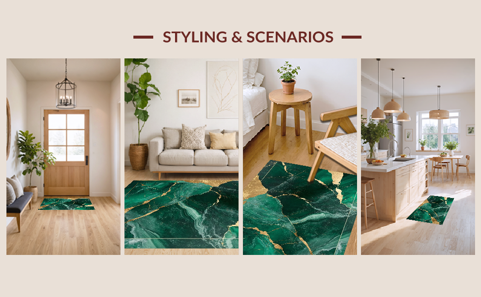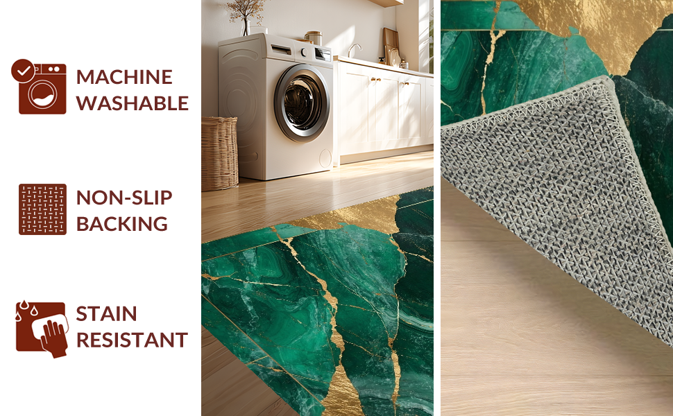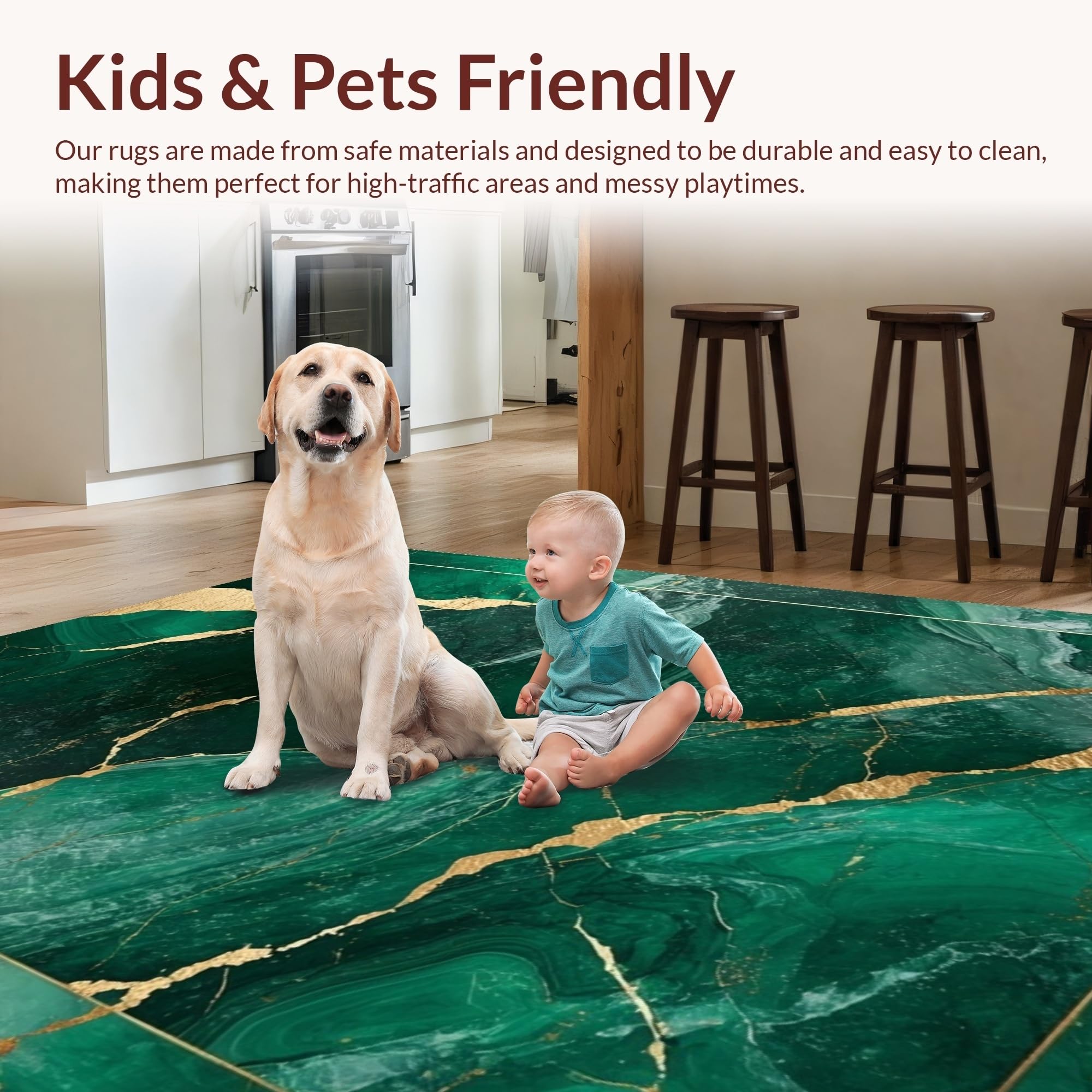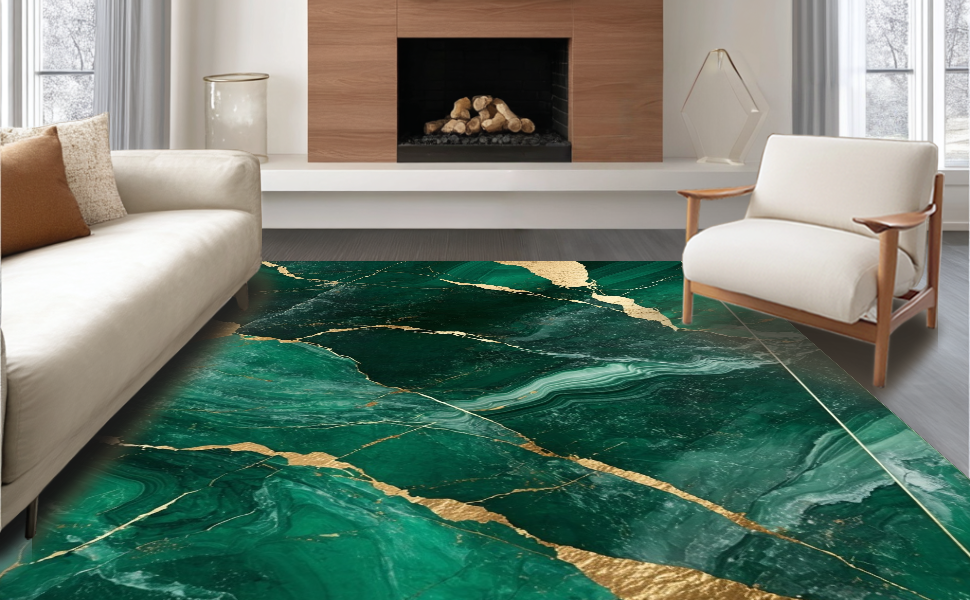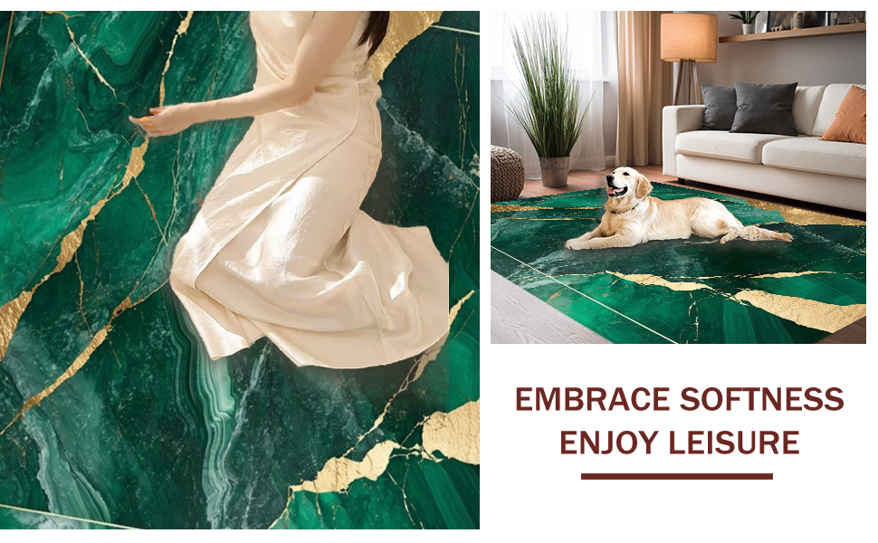 Ultra Soft Area Rug, Non Slip, Stain Resistant, Washable Area Rugs for Living Room, Bedroom, Luxe Golden Trimmed Art Piece(Green) Overview: