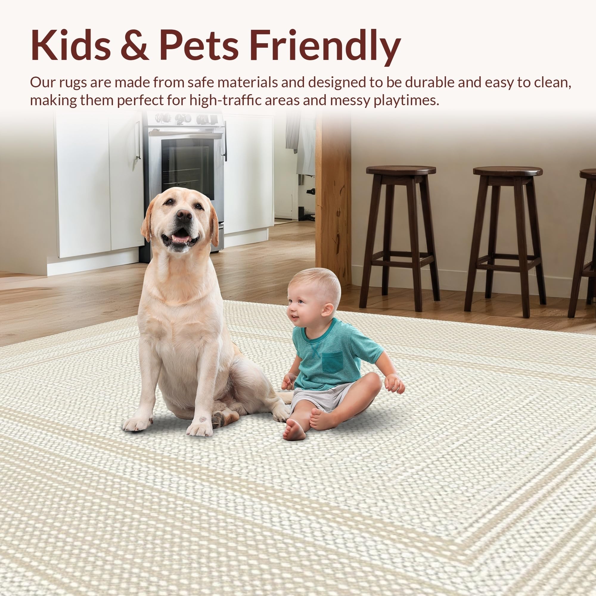 Ultra Soft Area Rug, Non Slip, Stain Resistant, Washable Area Rugs for Living Room, Bedroom, Luxe Minimalist Crochet Element(Beige) Overview: