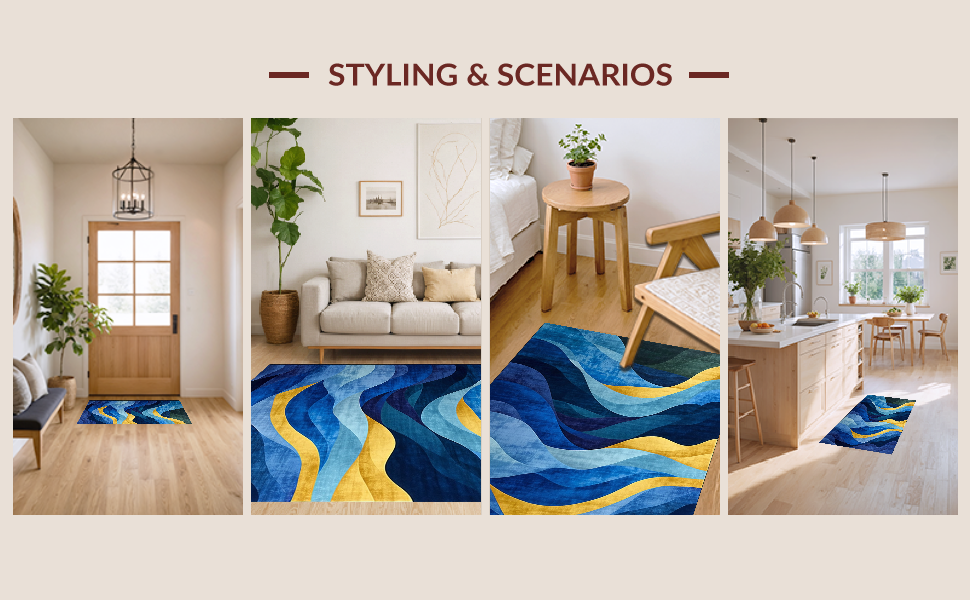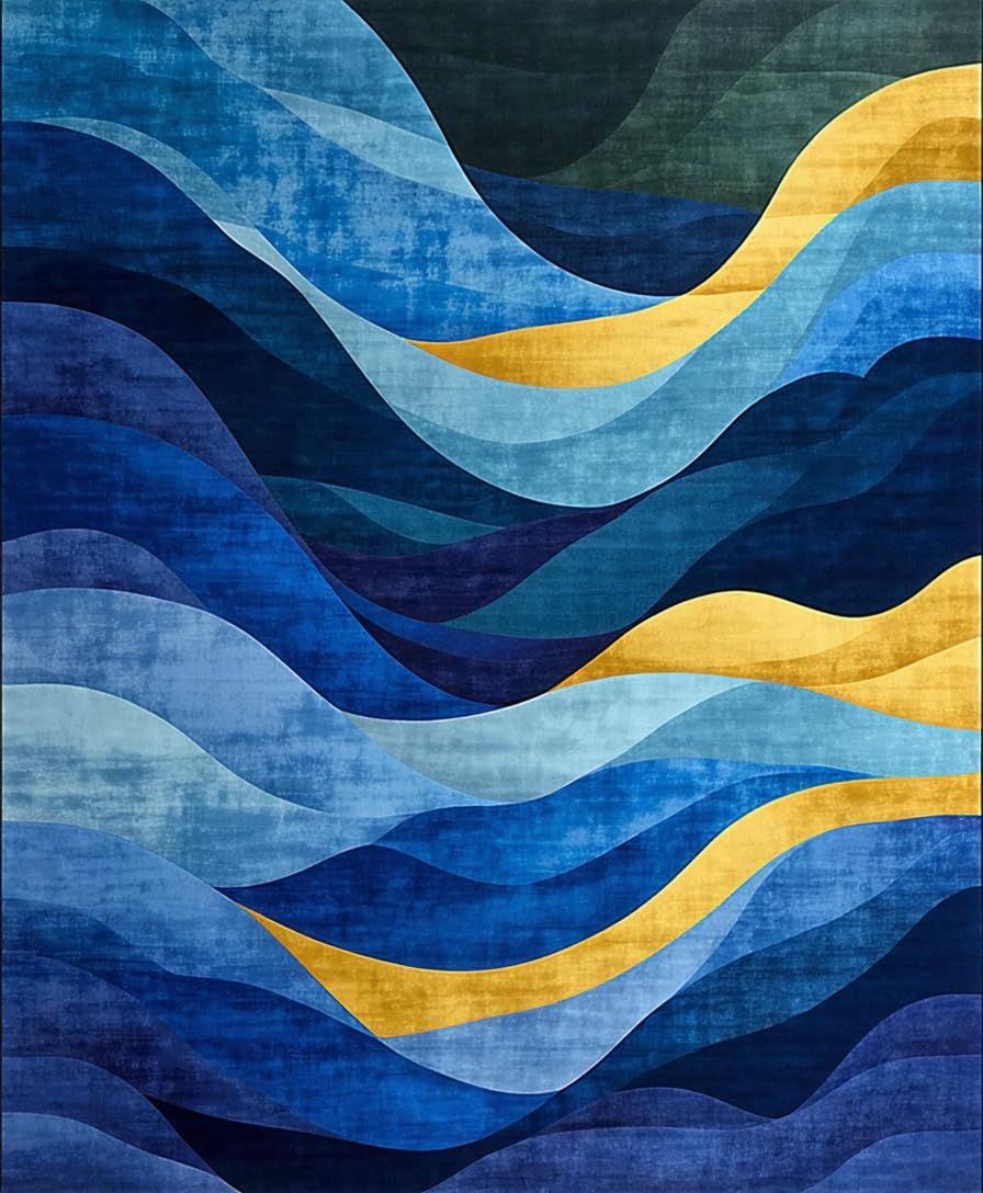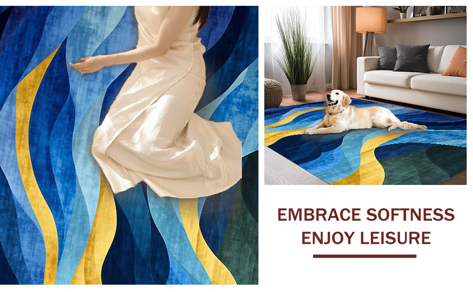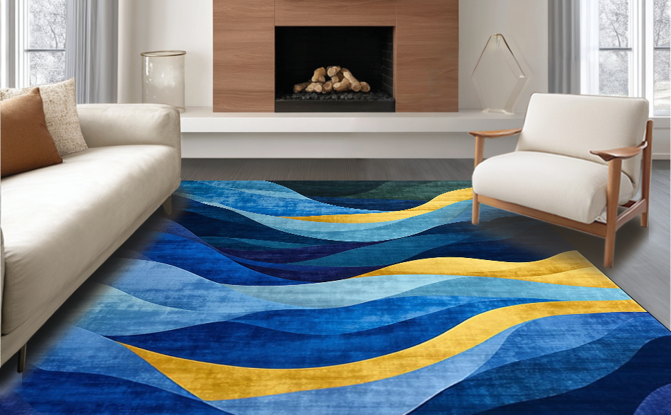 Ultra Soft Area Rug, Non Slip, Stain Resistant, Washable Area Rugs for Living Room, Bedroom, Luxe Modern Geometric Arrangement(Blue) Overview: