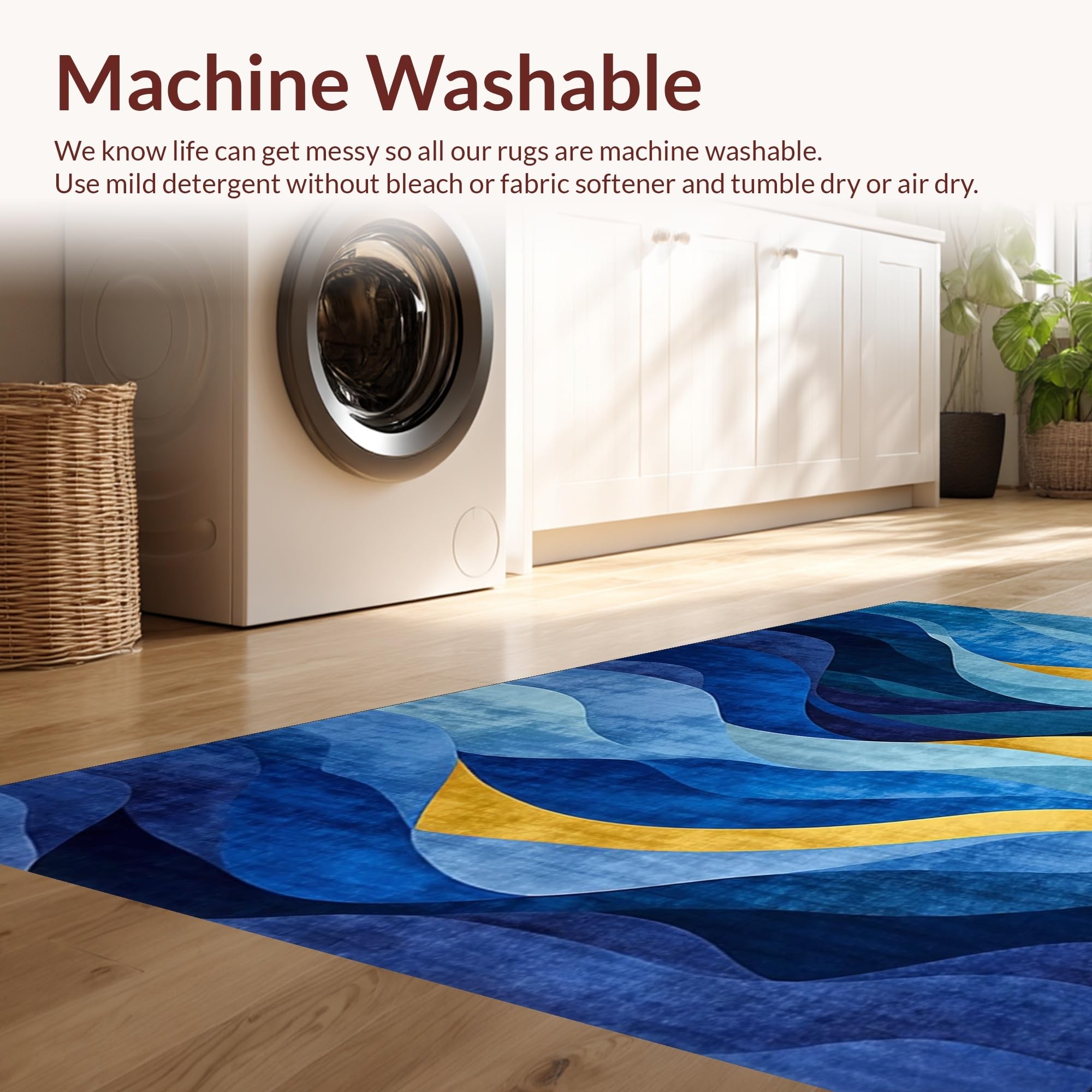 - Machine Washable: Our rugs can be easily thrown in the wash machine.