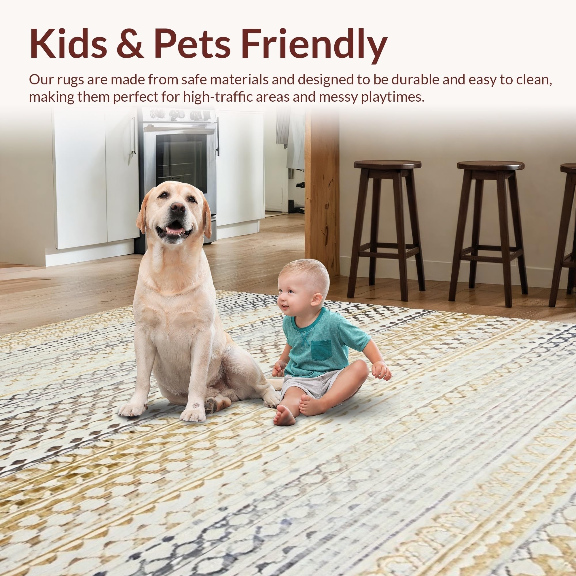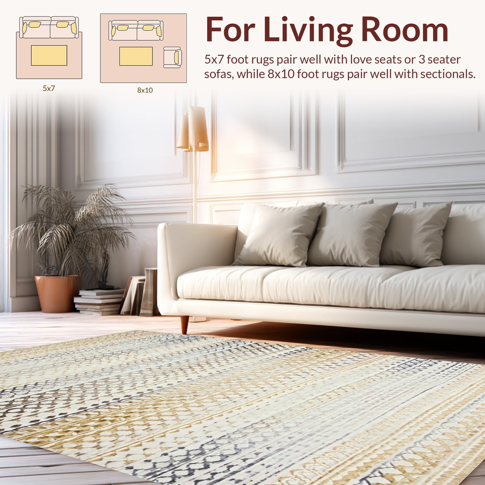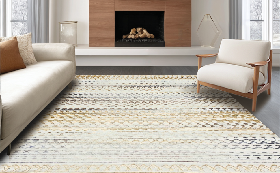 Ultra Soft Area Rug, Non Slip, Stain Resistant, Washable Area Rugs for Living Room, Bedroom, Luxe Natural Fiber Scallop Motif(Beige) Overview: