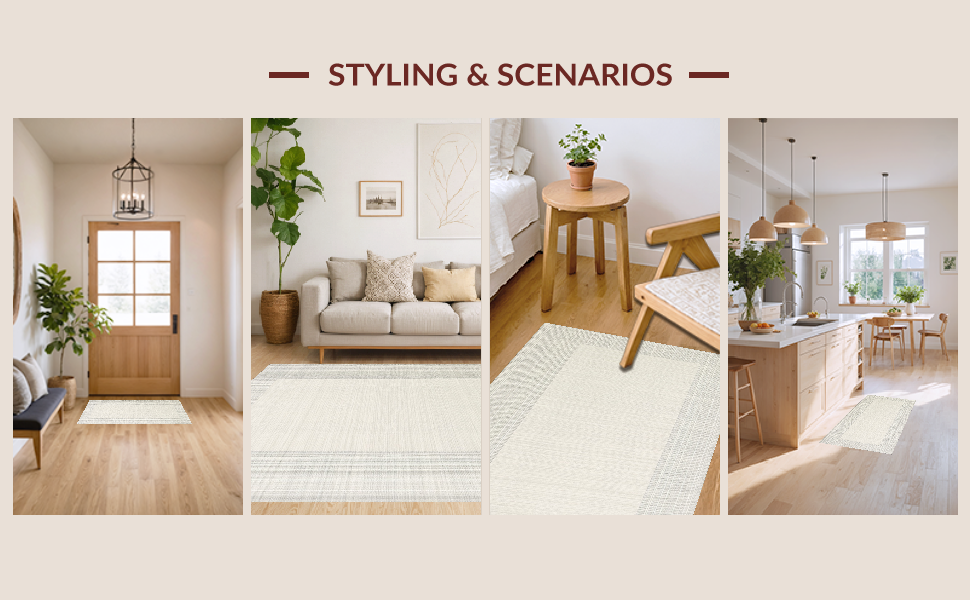 Ultra Soft Area Rug, Non Slip, Stain Resistant, Washable Area Rugs for Living Room, Bedroom, Luxe Neutral Braided Appeal(Beige) Overview:
