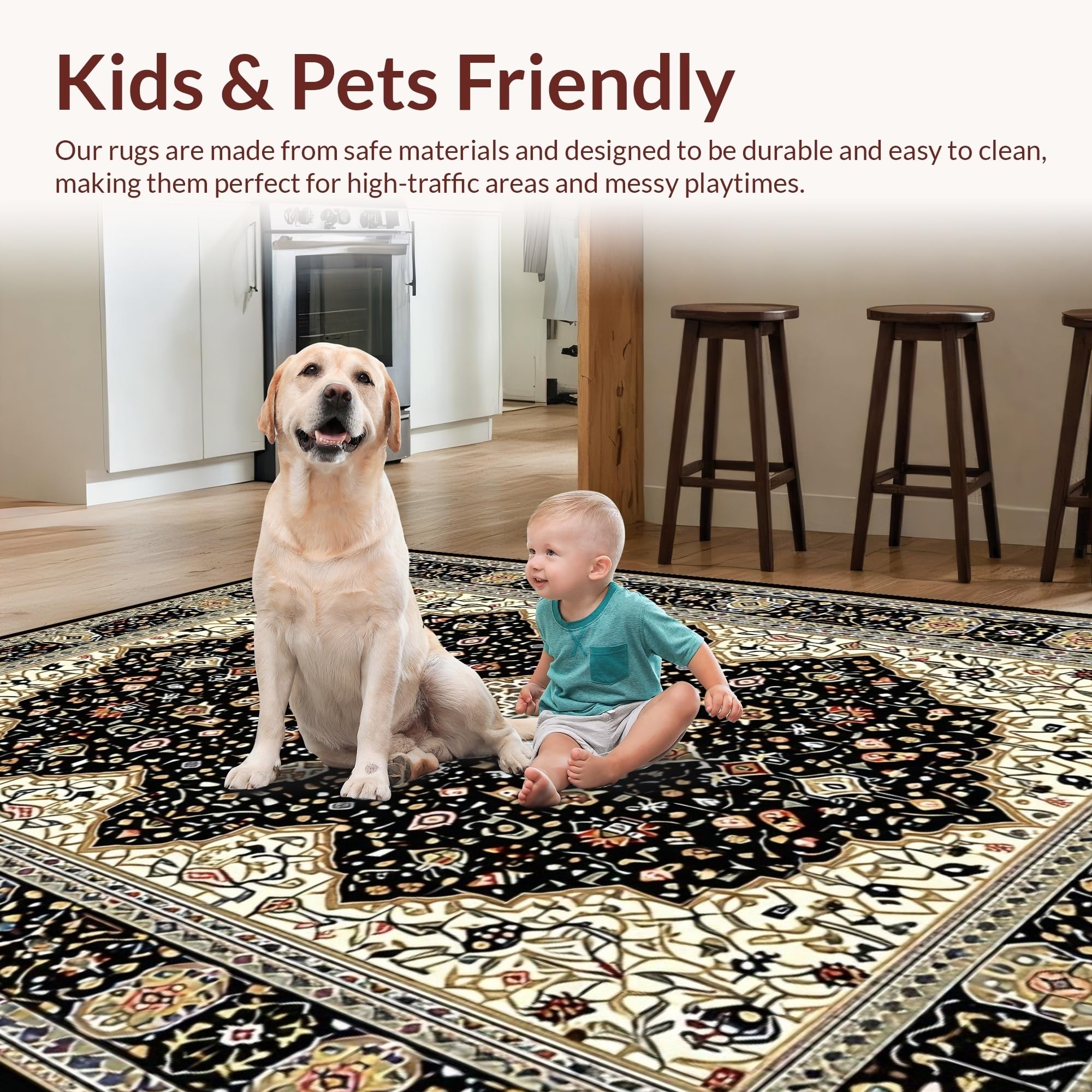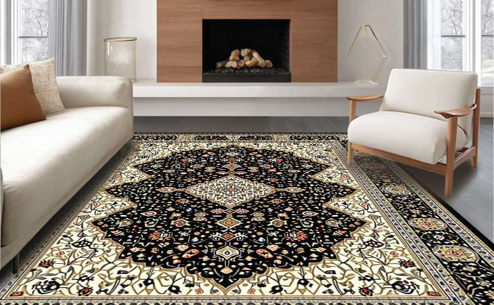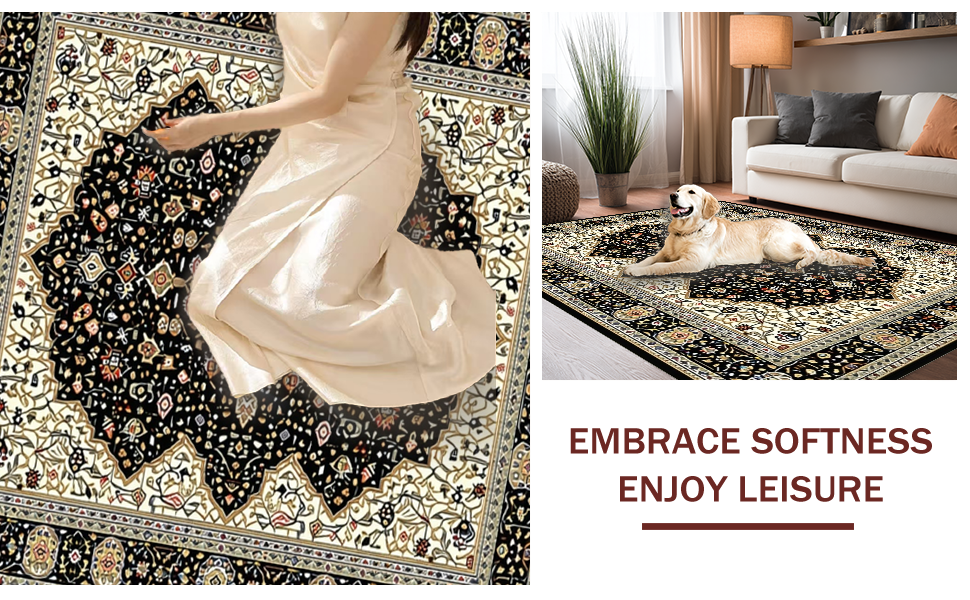 Ultra Soft Area Rug, Non Slip, Stain Resistant, Washable Area Rugs for Living Room, Bedroom, Luxe Neutral Trellis Inspired Decor(Black) Overview: