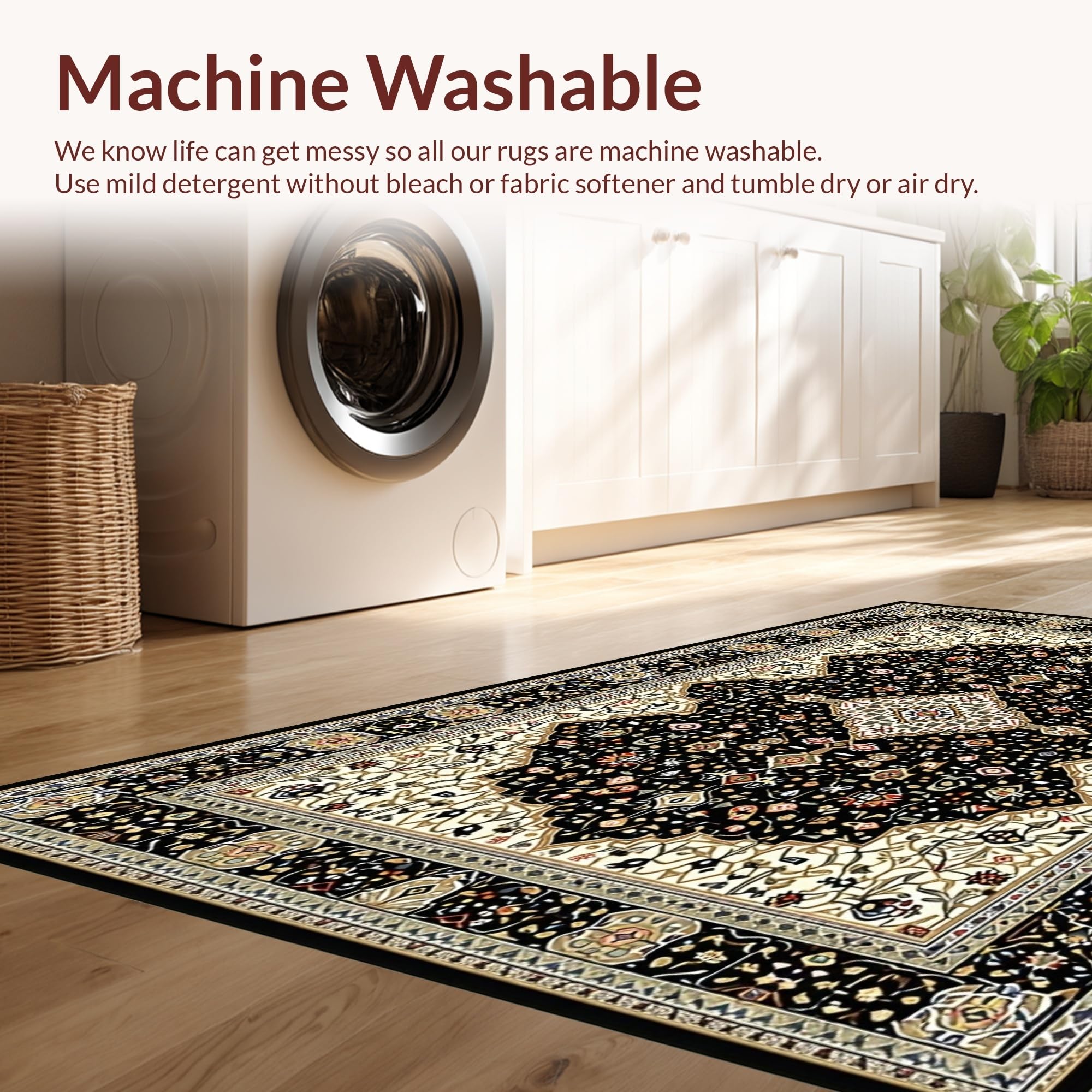 - Machine Washable: Our rugs can be easily thrown in the wash machine.