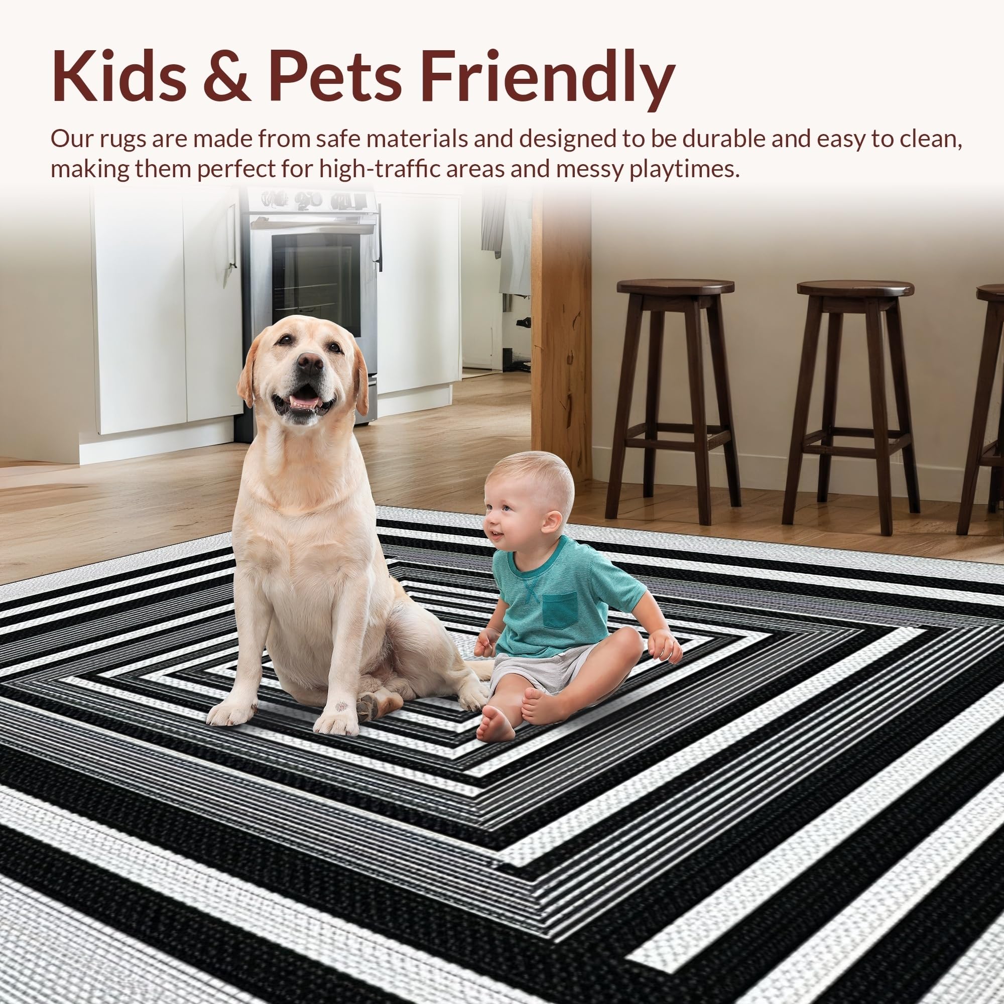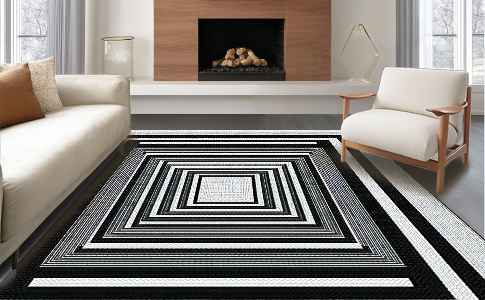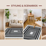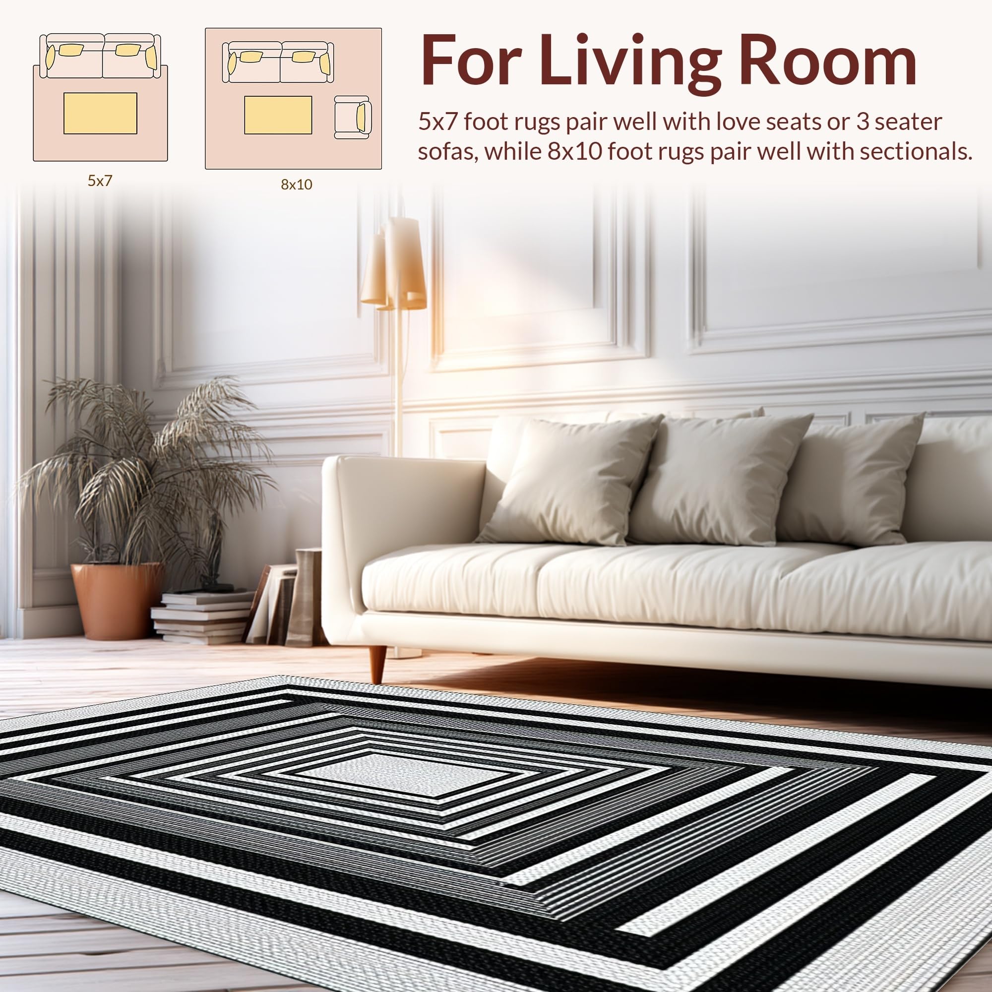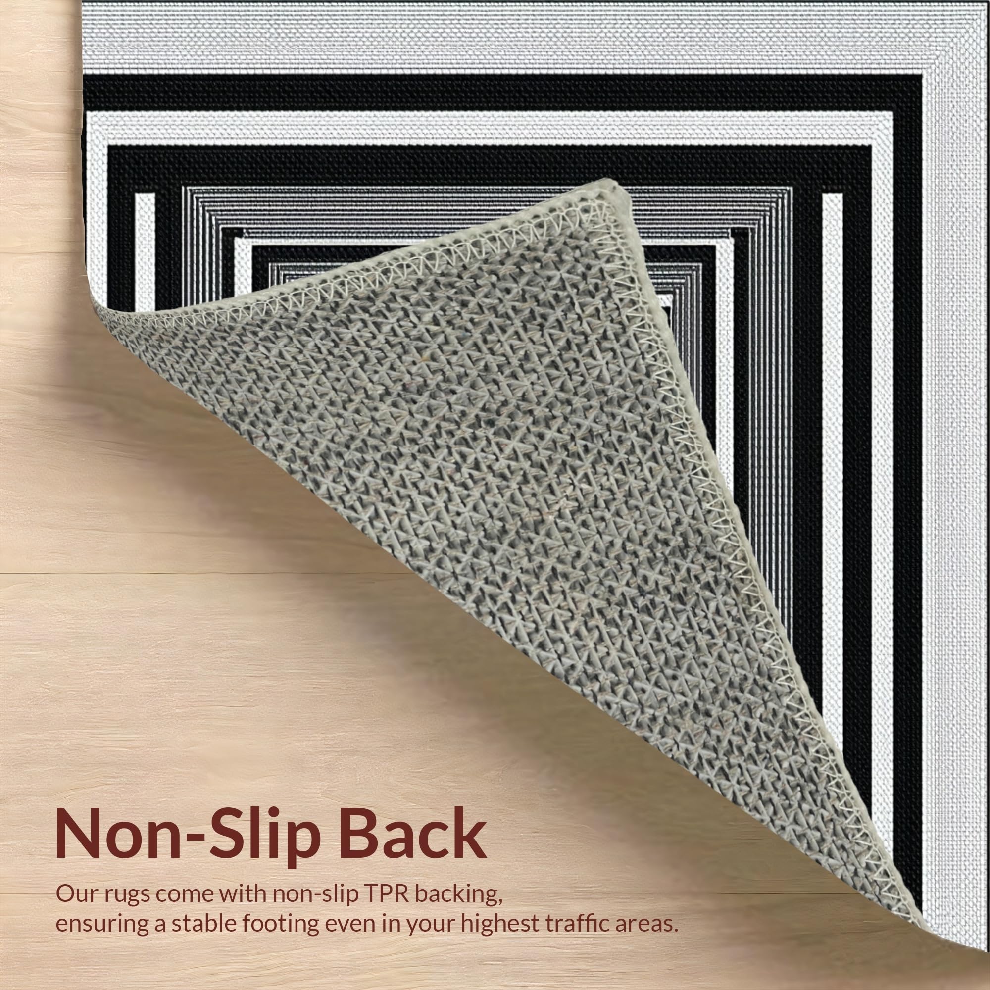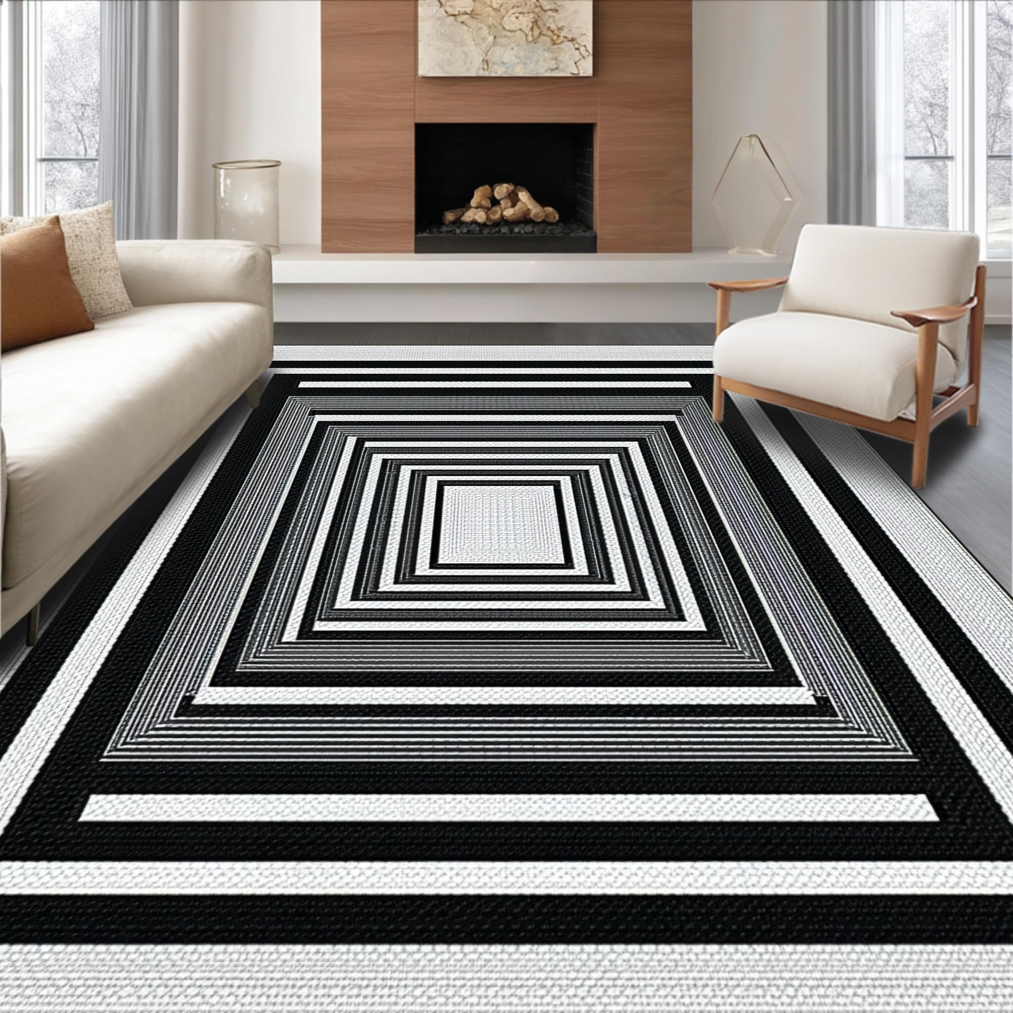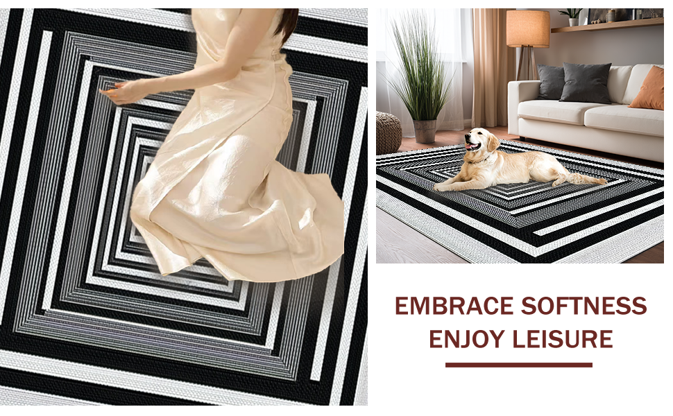 Ultra Soft Area Rug, Non Slip, Stain Resistant, Washable Area Rugs for Living Room, Bedroom, Luxe Optical Depth Illusion Motif(Black) Overview: