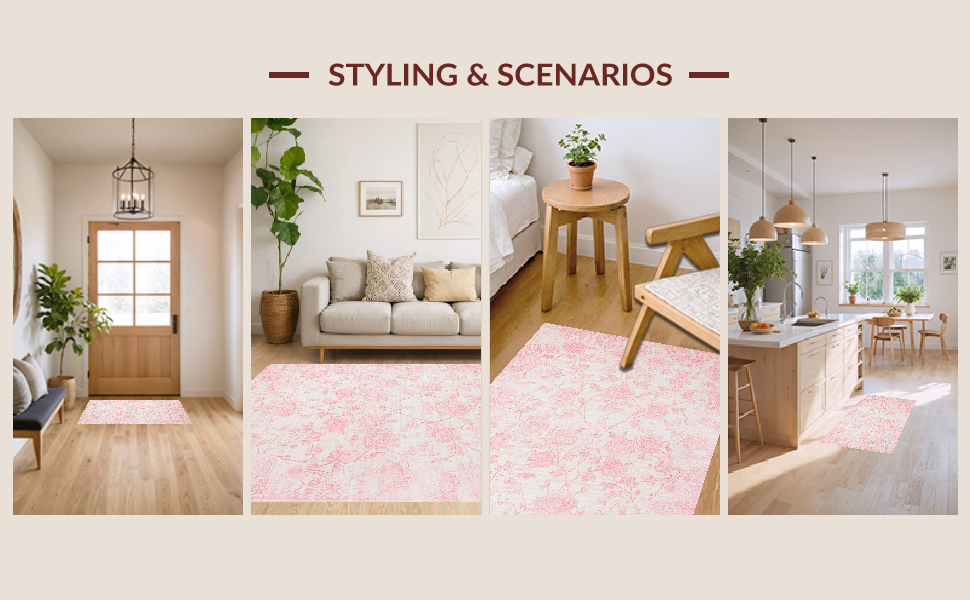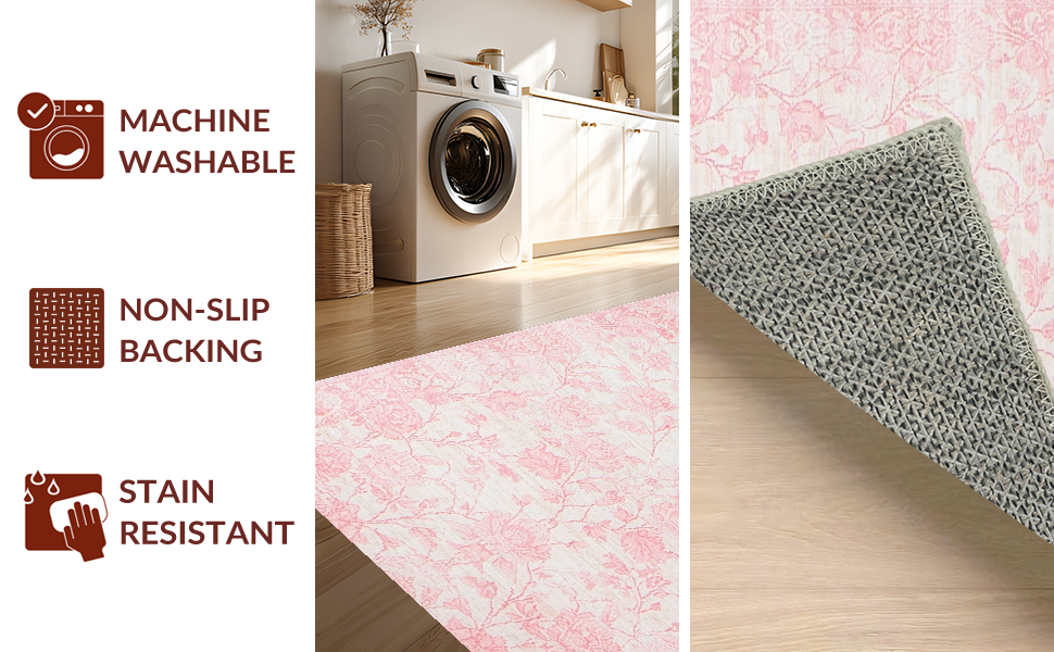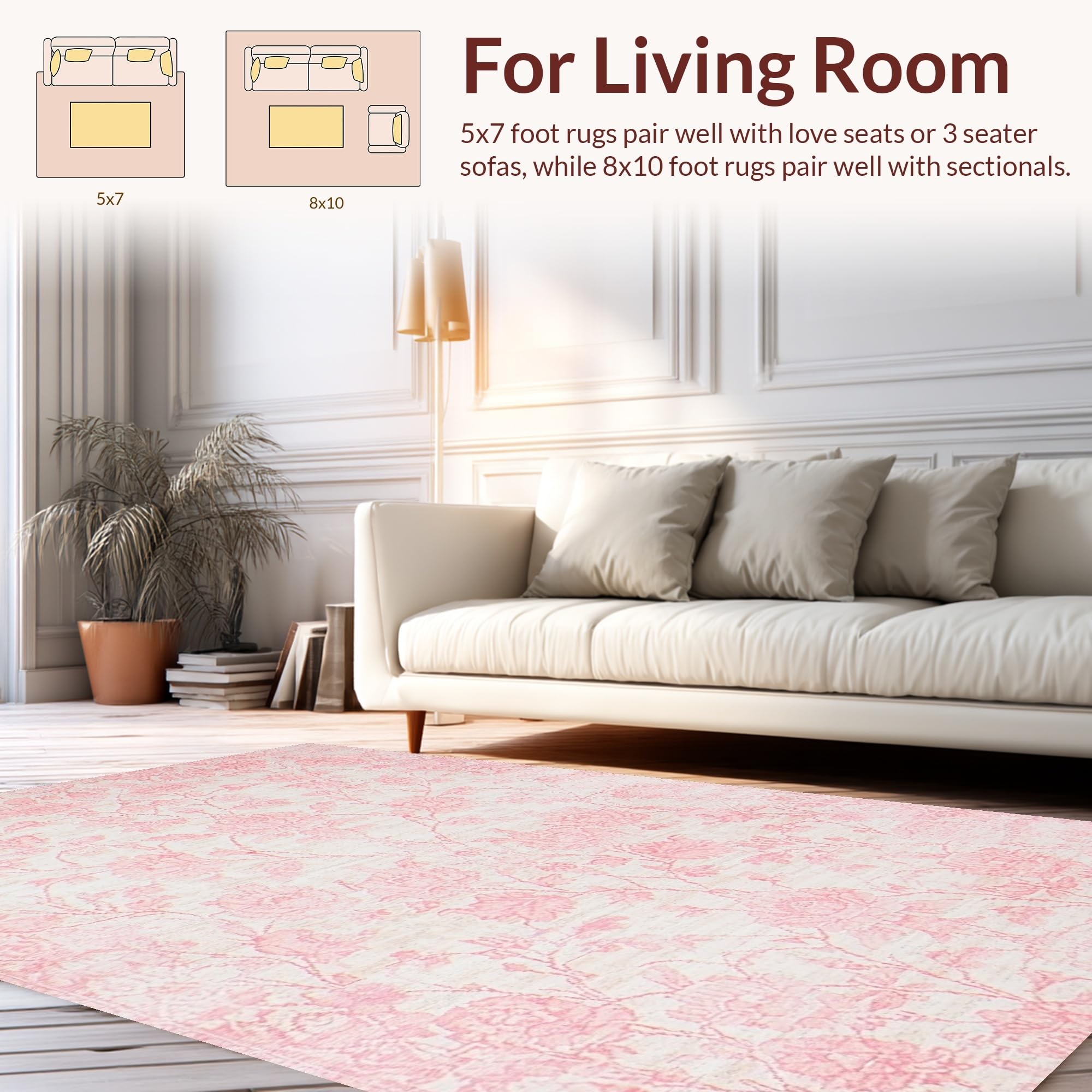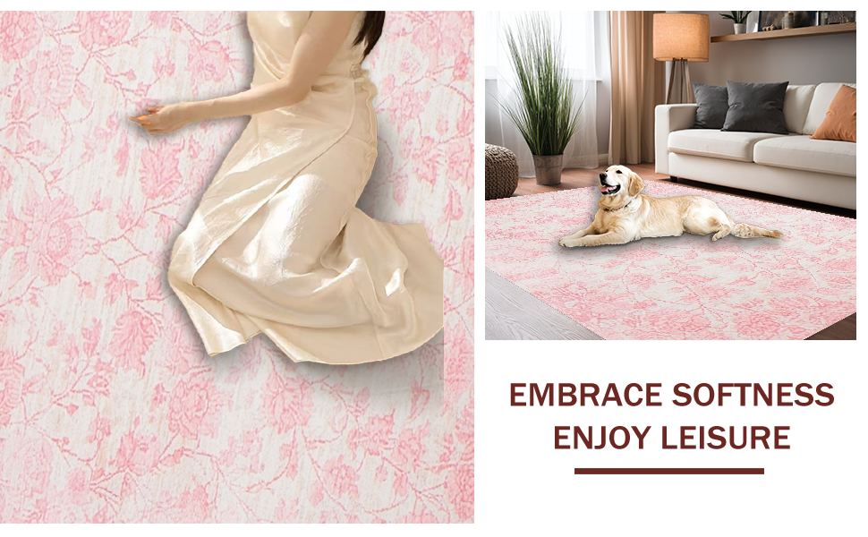 Ultra Soft Area Rug, Non Slip, Stain Resistant, Washable Area Rugs for Living Room, Bedroom, Luxe Soft Textured Elegance(Pink) Overview: