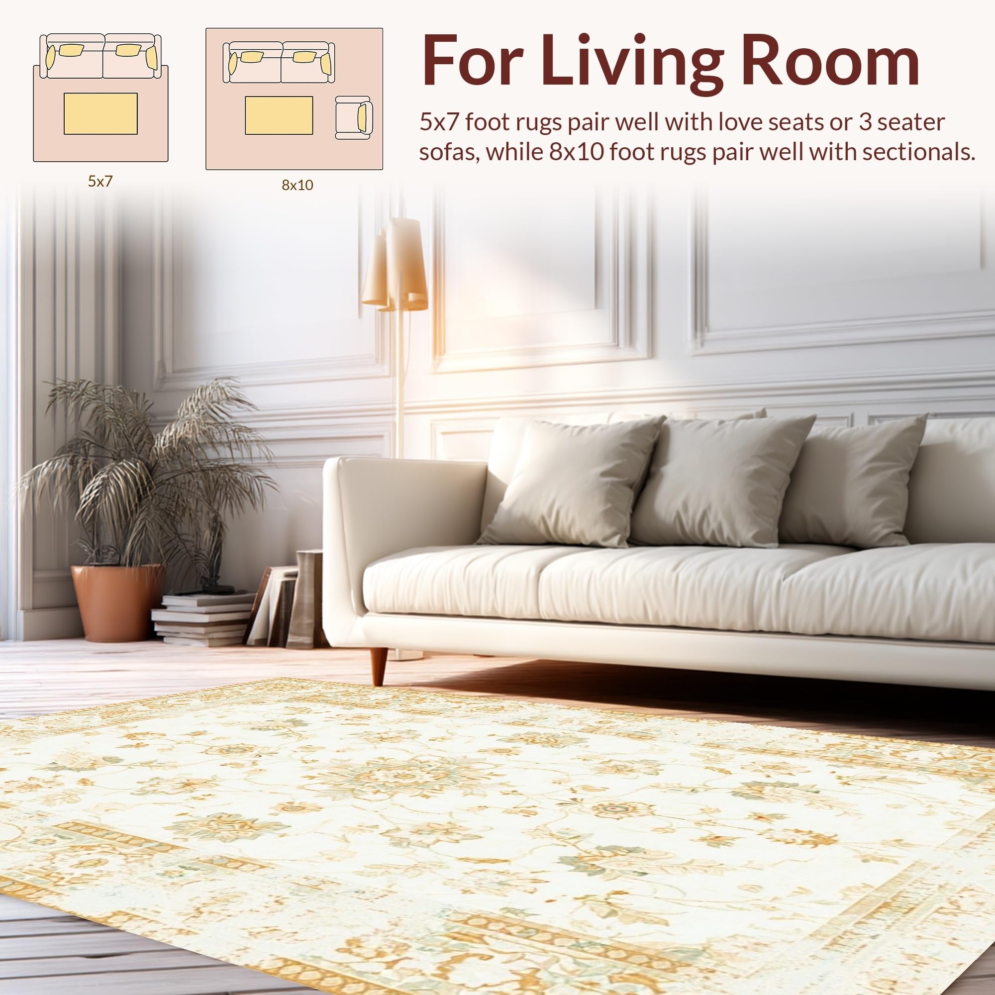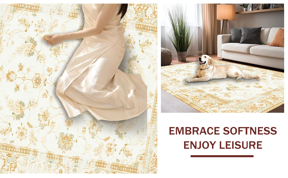 Ultra Soft Area Rug, Non Slip, Stain Resistant, Washable Area Rugs for Living Room, Bedroom, Luxe Subtle Creamy Aesthetic(Beige) Overview: