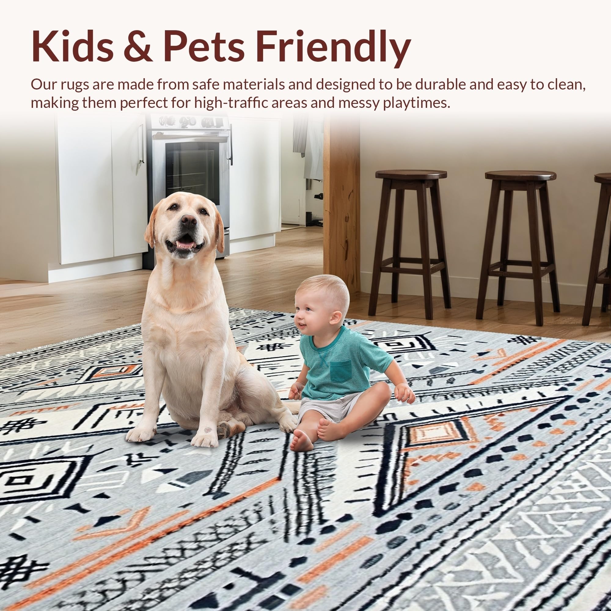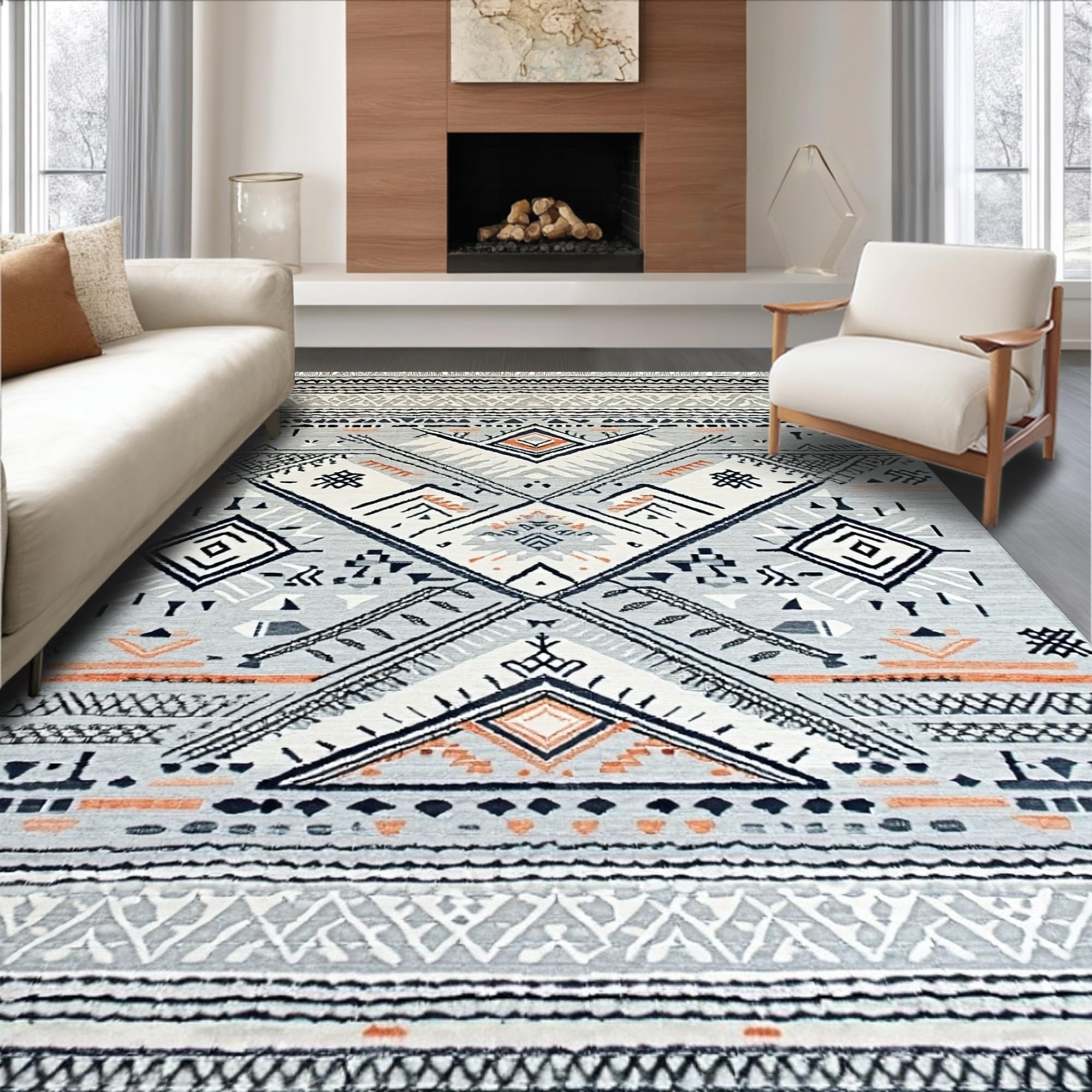 Ultra Soft Area Rug, Non Slip, Stain Resistant, Washable Area Rugs for Living Room, Bedroom, Luxe Symmetrical Medallion Style(Gray) Overview: